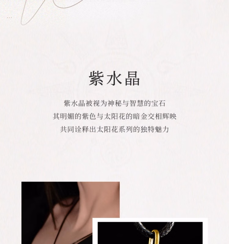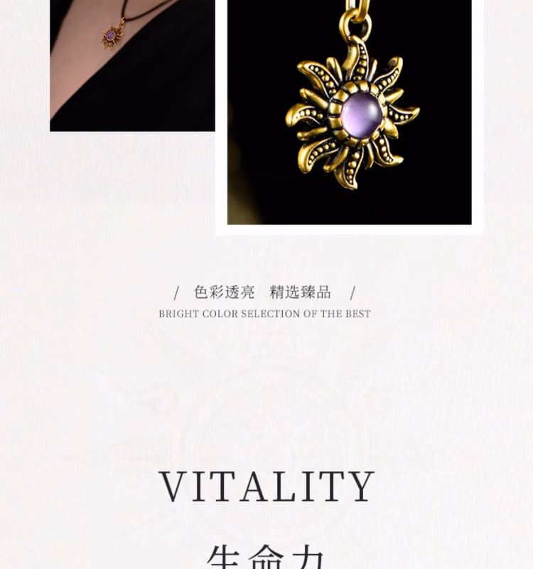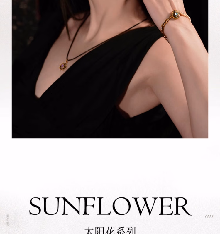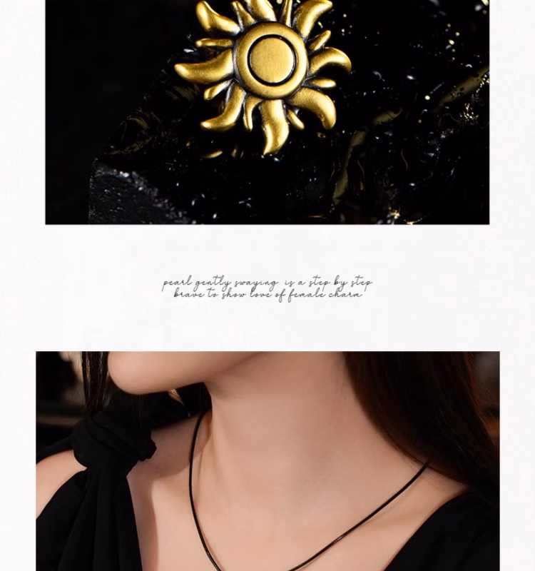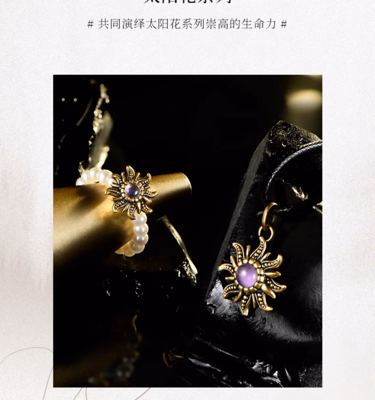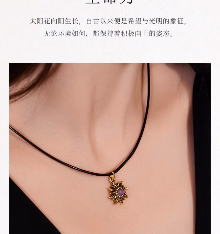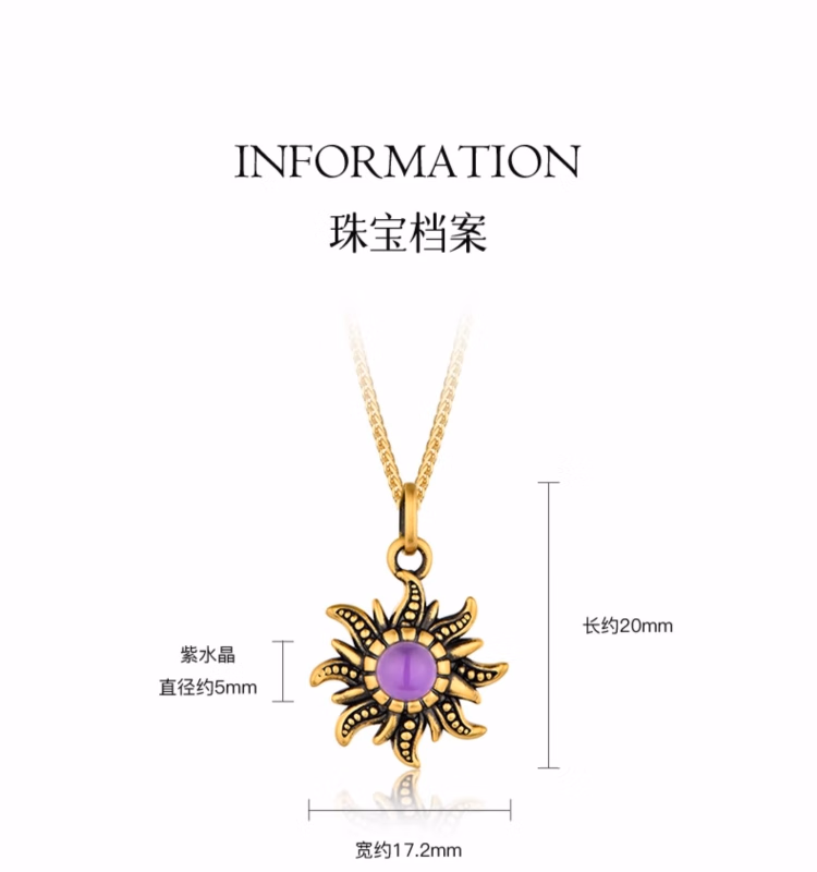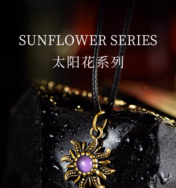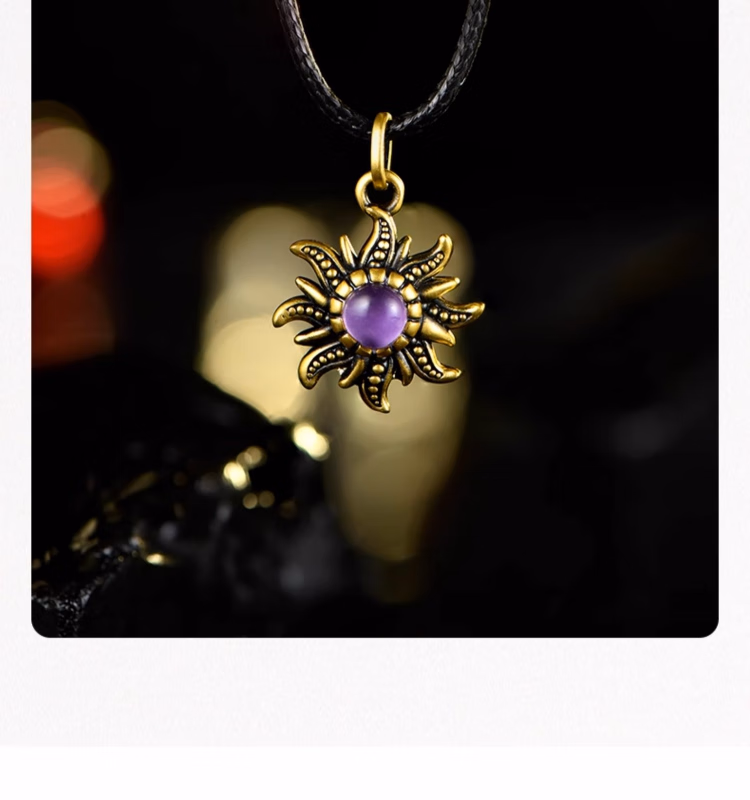 PINKBOXPINKBOX/娉饰珠宝黑金吊坠镶嵌紫水晶黄金太阳花复古电黑花朵 太阳花吊坠现货 收藏