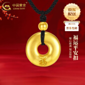 • 中国黄金(CHINA GOLD)黄金项链足金福字平安扣吊坠编绳母亲节生日礼物送女友 福字平安扣吊坠(重版-黑绳)约2.8g【京速达】