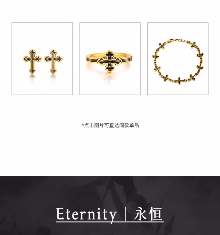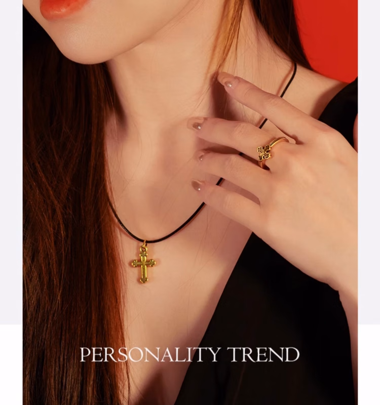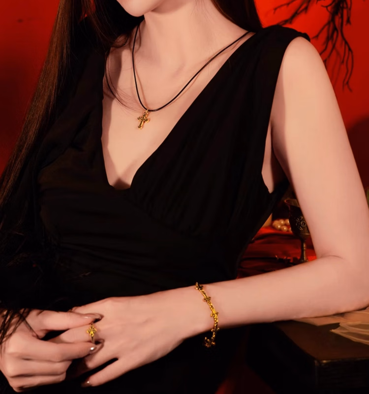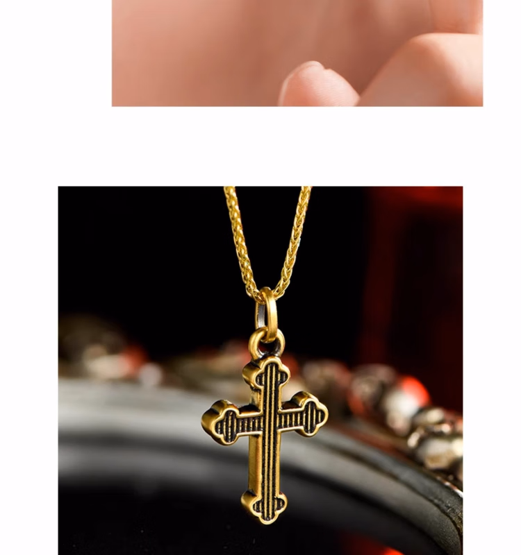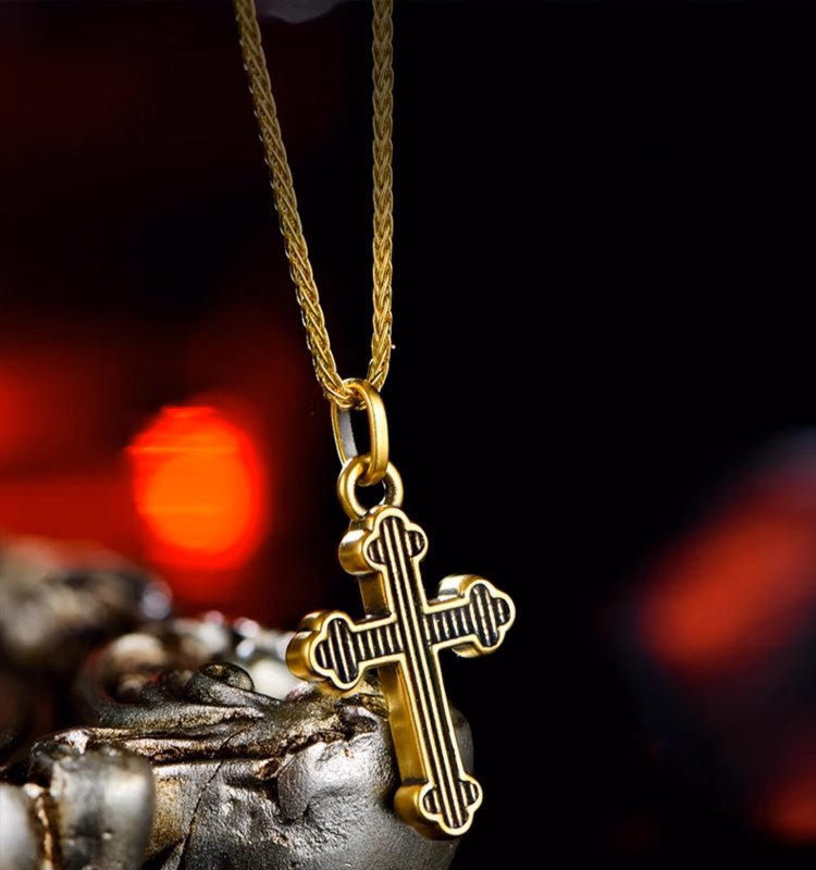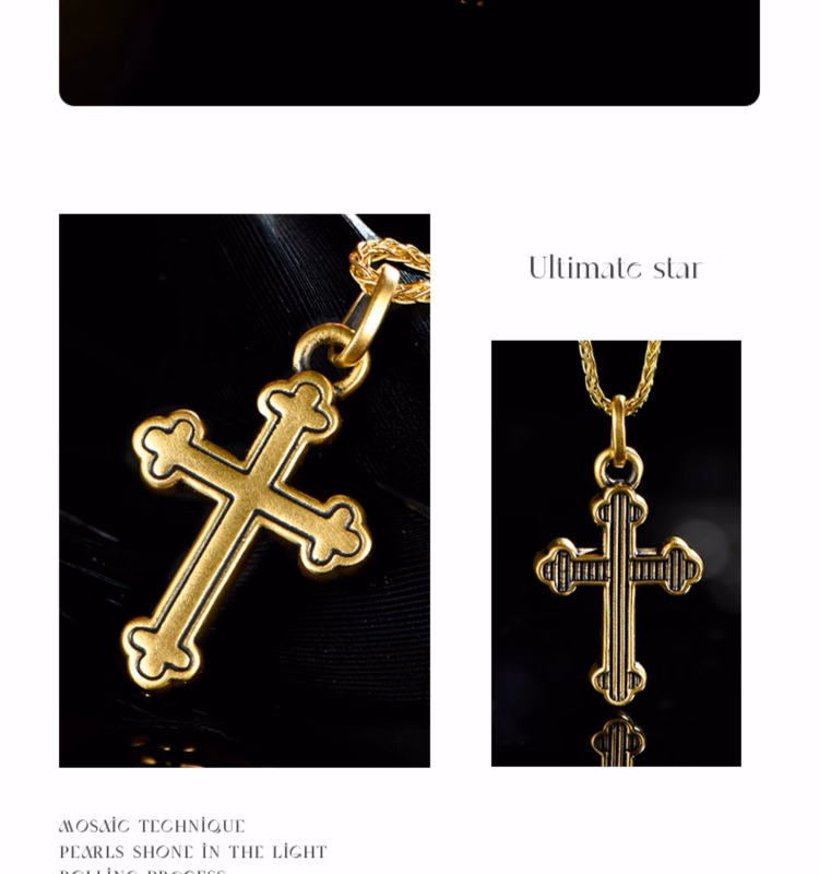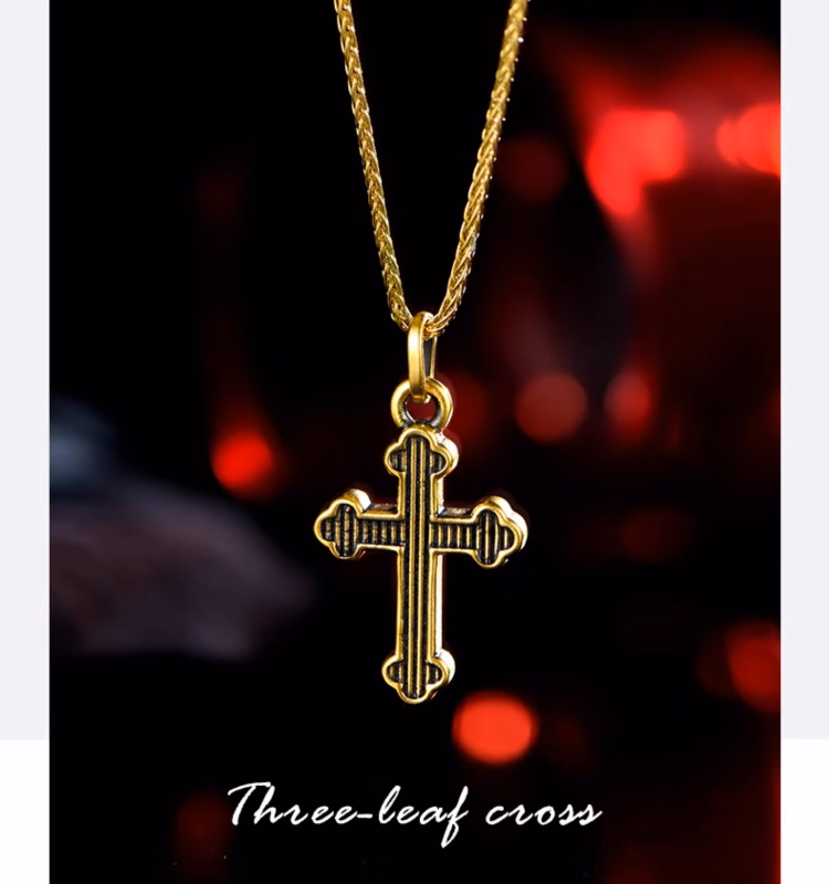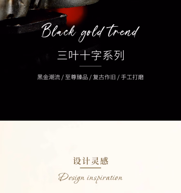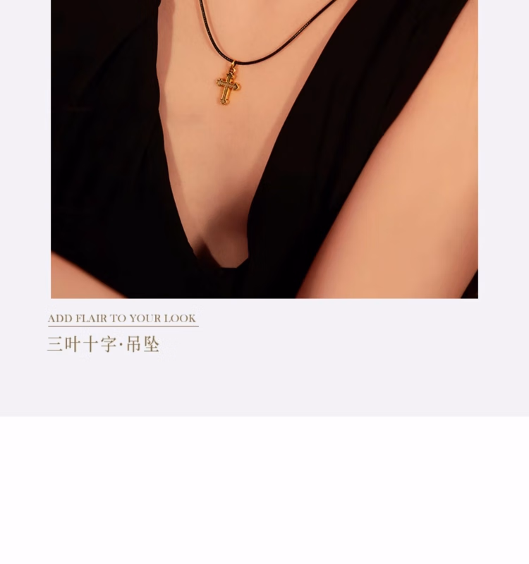 PINKBOXPINKBOX/娉饰珠宝吊坠黑金三叶十字架潮流风尚电黑黄金工艺挂坠 十字架吊坠现货 收藏
