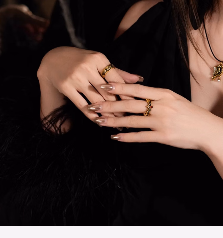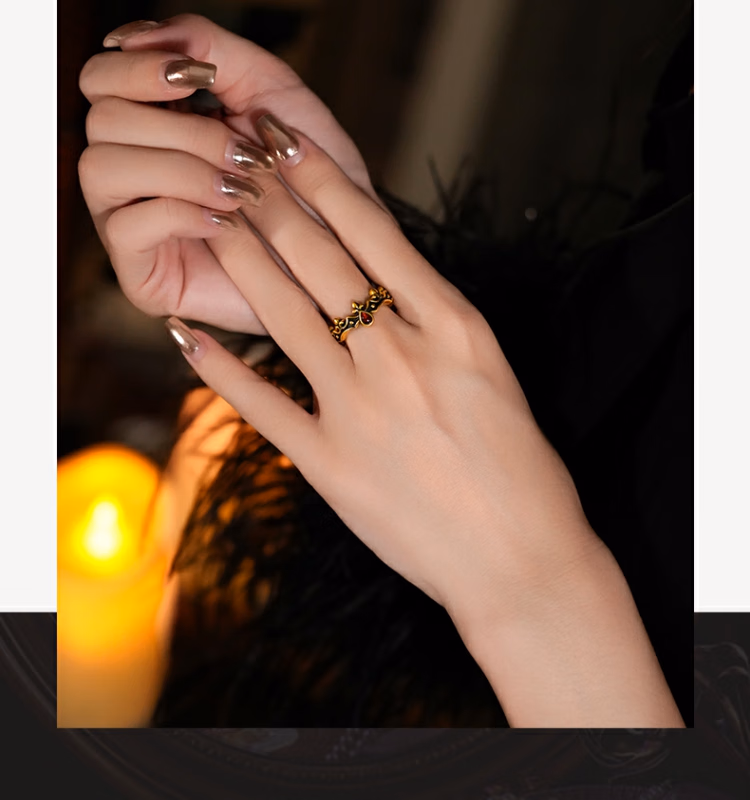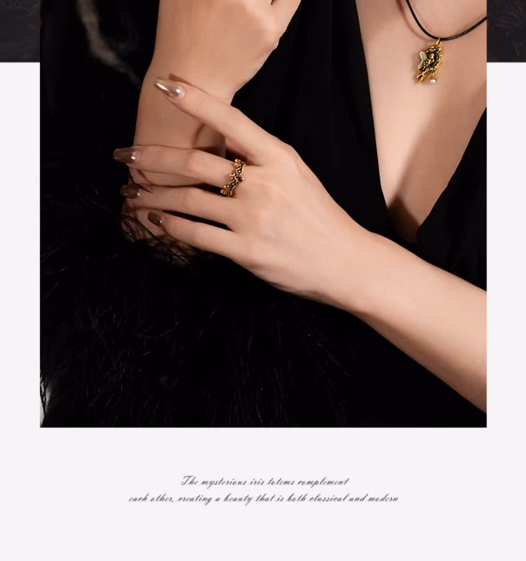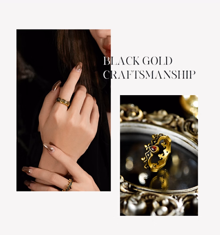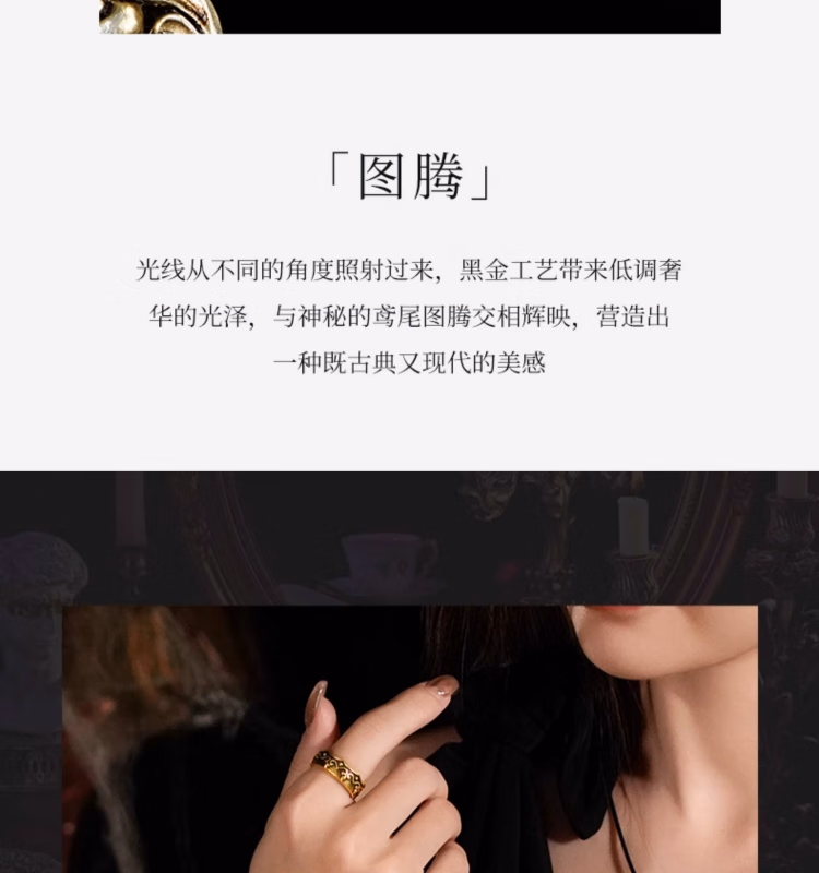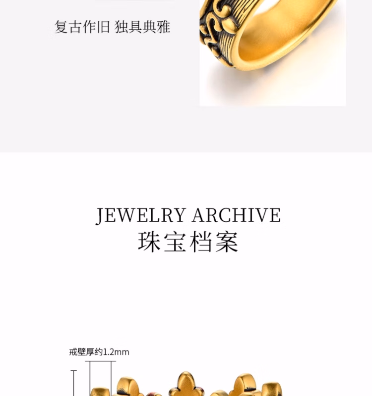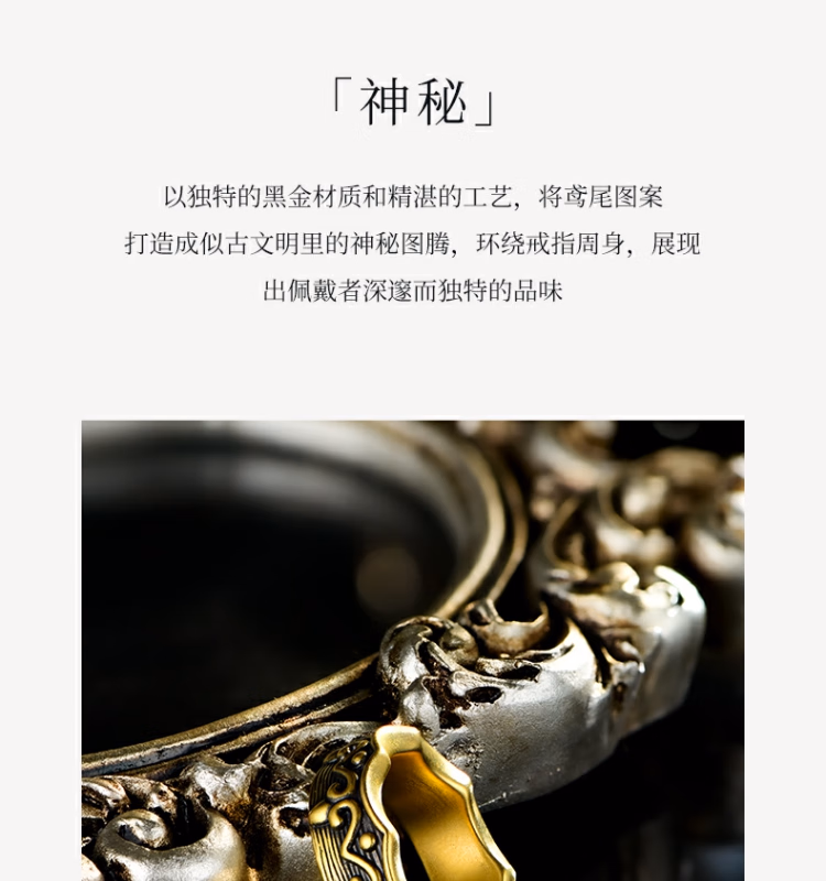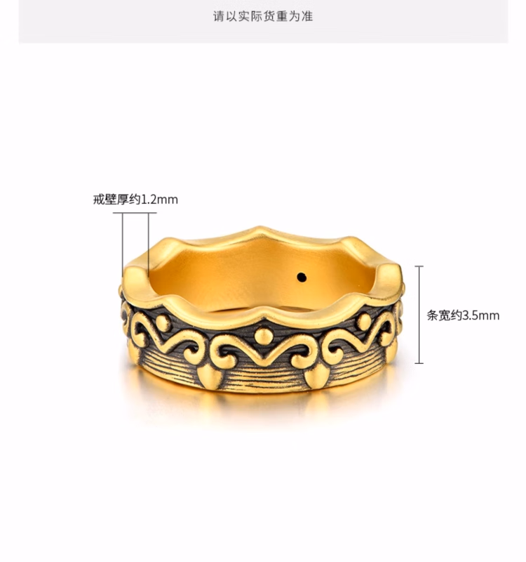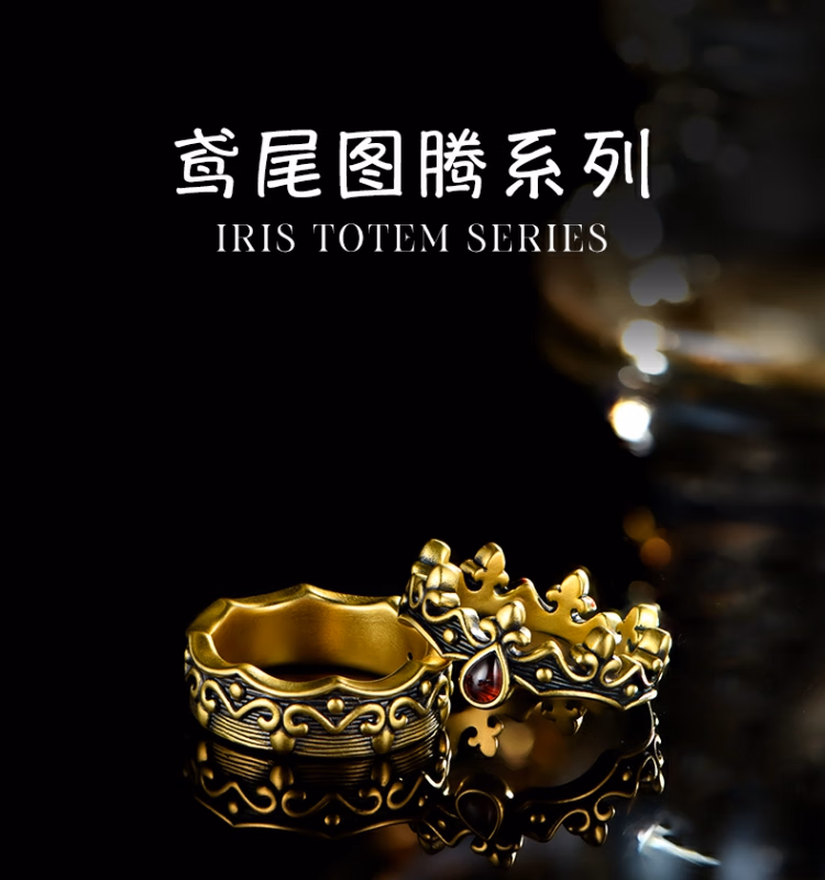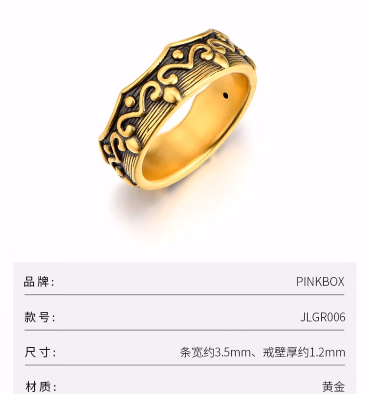PINKBOXPINKBOX/黑金戒指鸢尾图腾电黑黄金神秘指环5D硬金对戒 男戒预定金(回货约30天 详情咨询 收藏