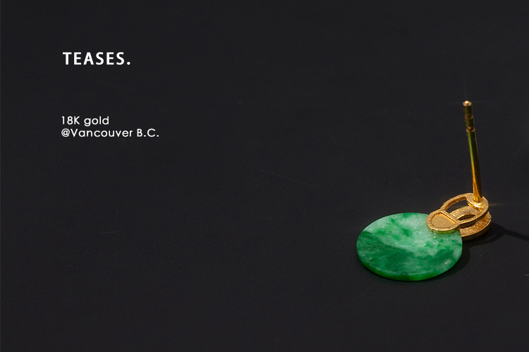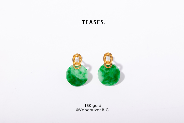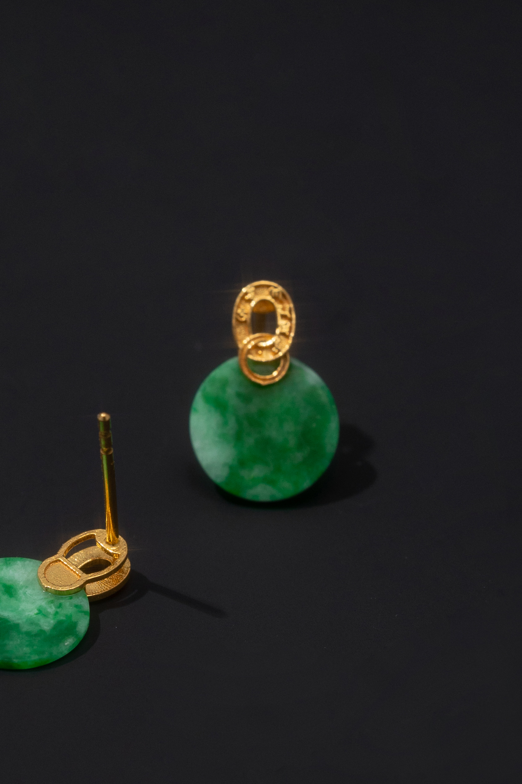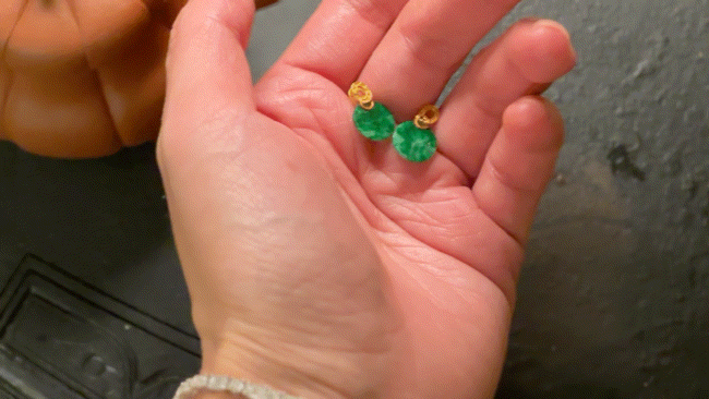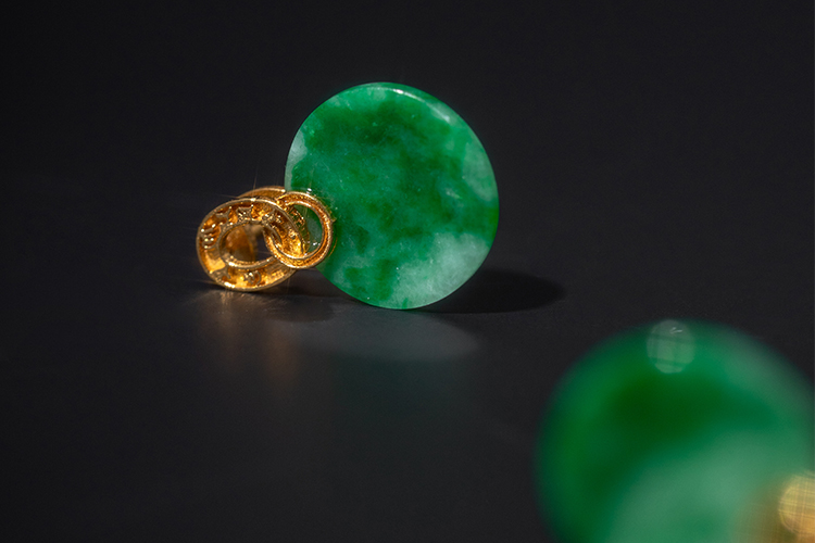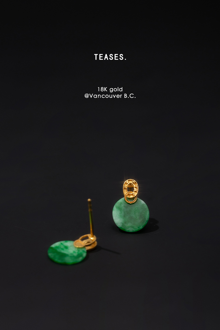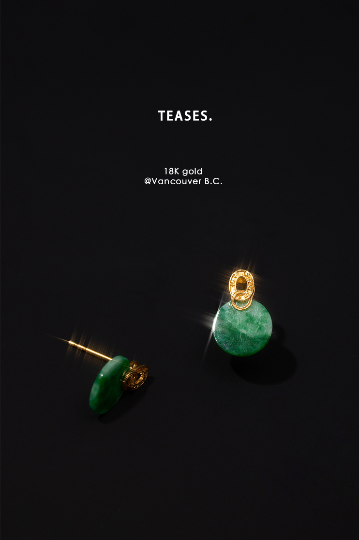 若奈珠宝新年黄金翡翠/平安无事牌18K金镶玉“戏玲珑”新中式耳钉