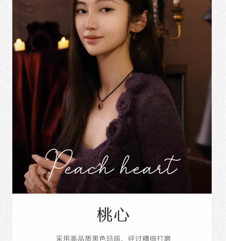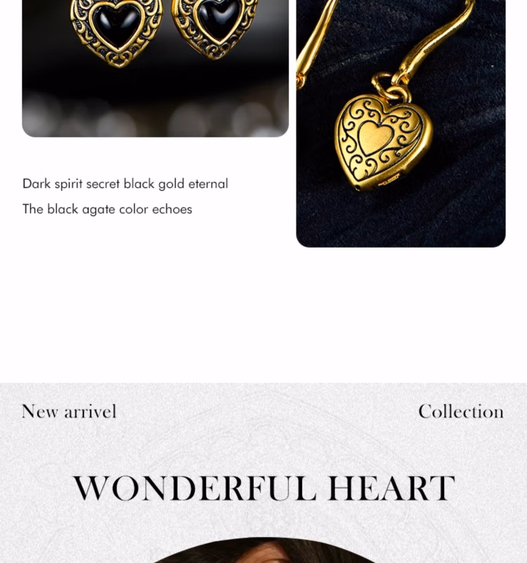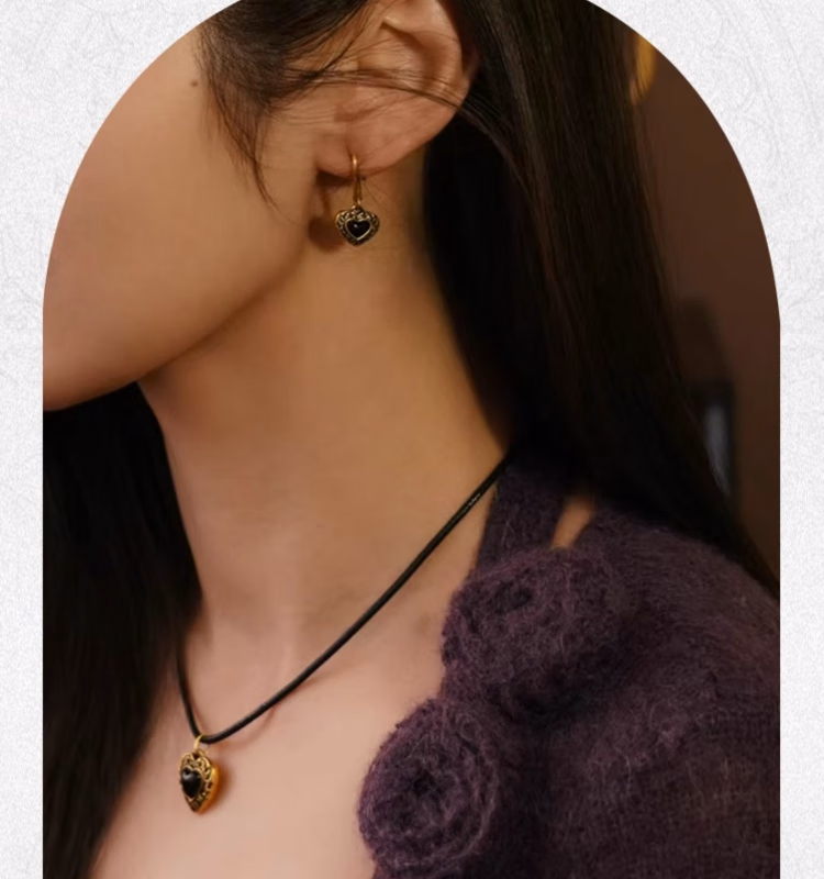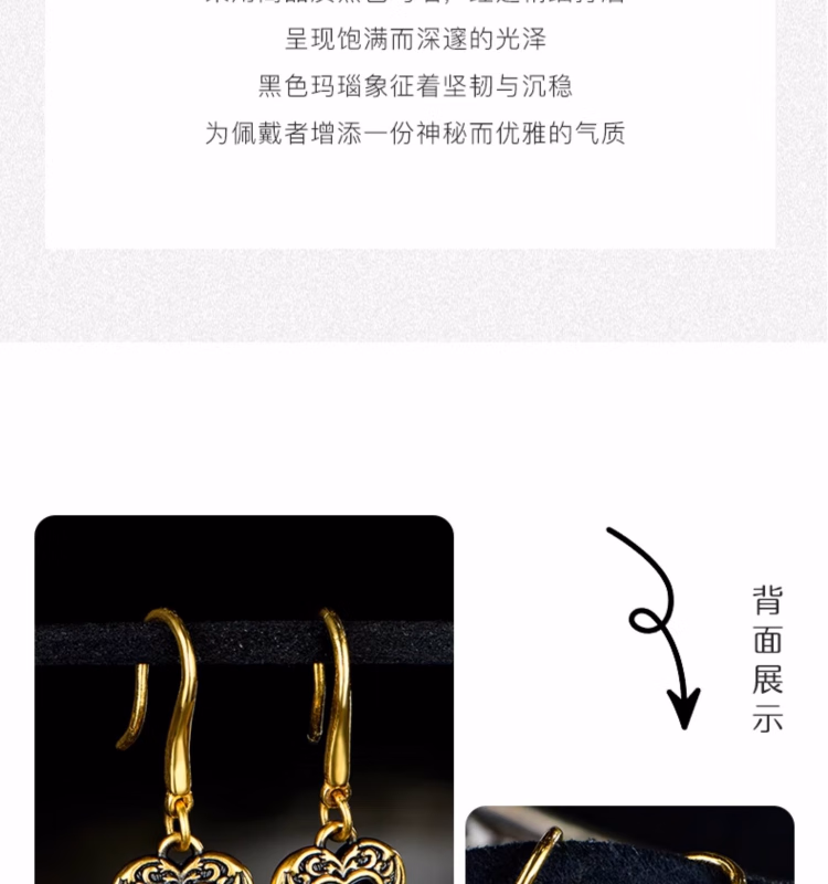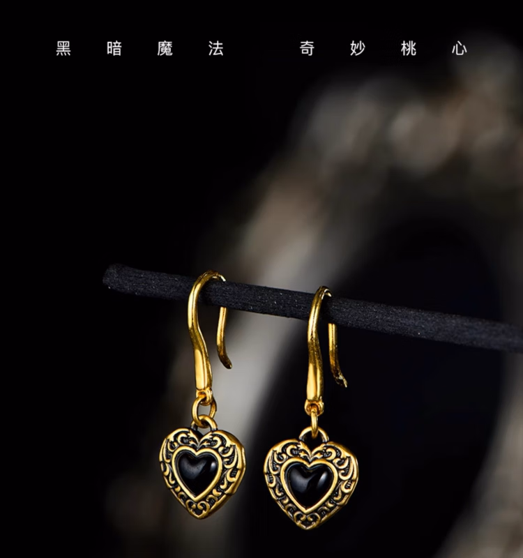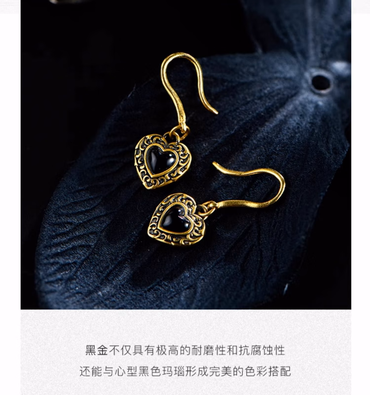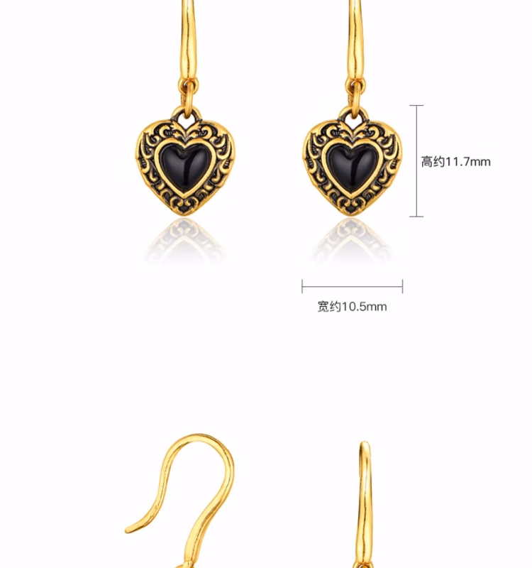 PINKBOXPINKBOX/娉饰珠宝黑金耳饰魔力桃心电黑黄金5D硬金黑玛瑙心型耳钩 预定金(回货约30天详情咨询客服) 收藏