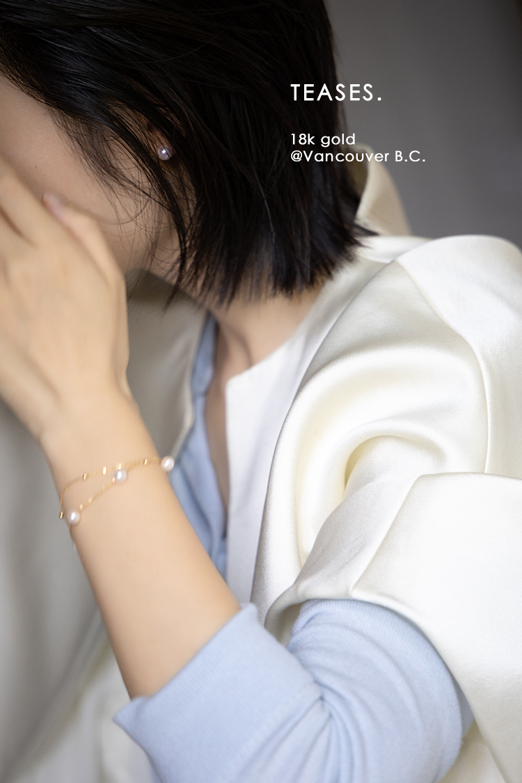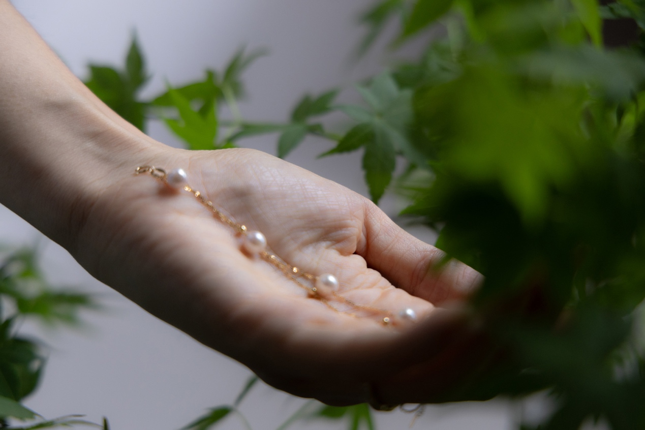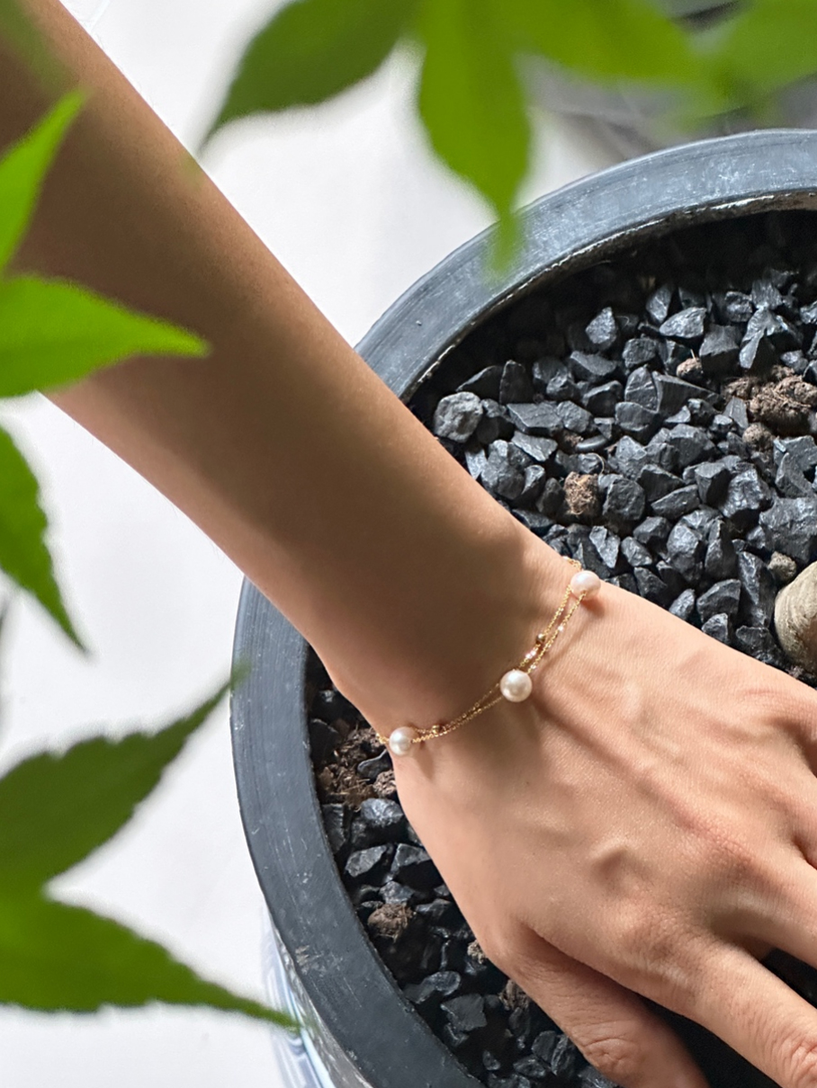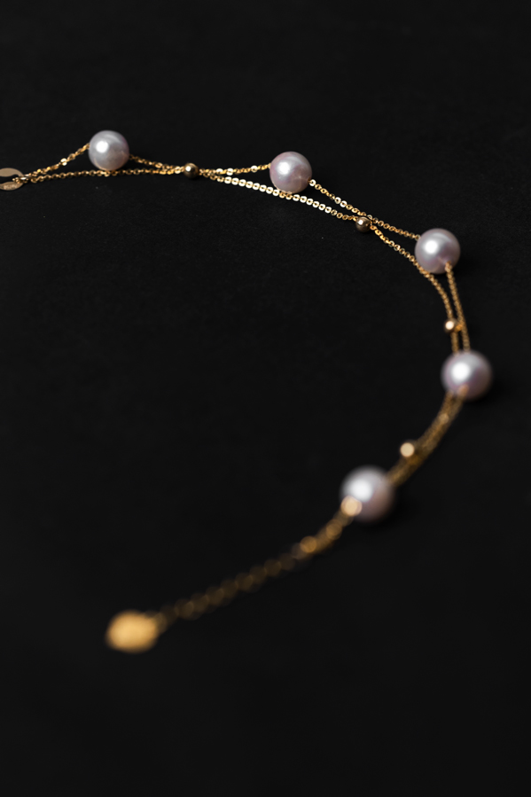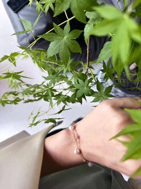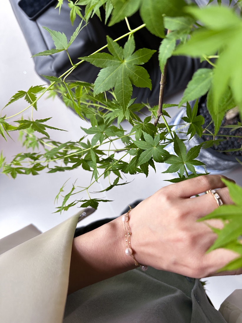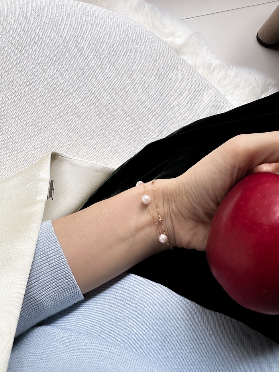 若奈珠宝“戏玲珑”18K金双层珍珠加小黄金珠系列Akoya珍珠手链