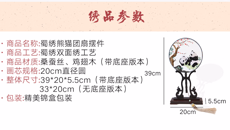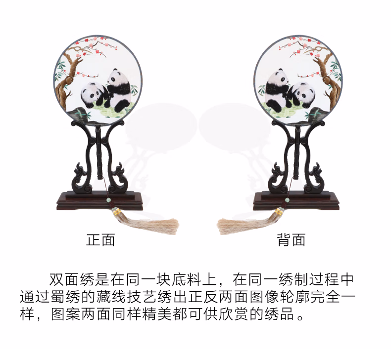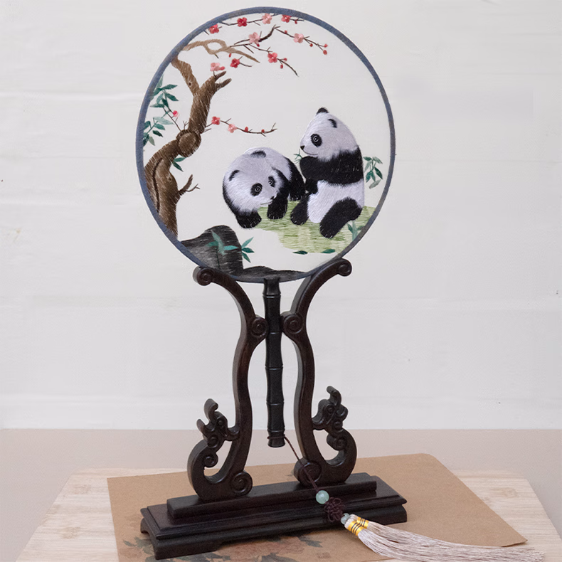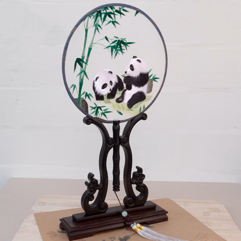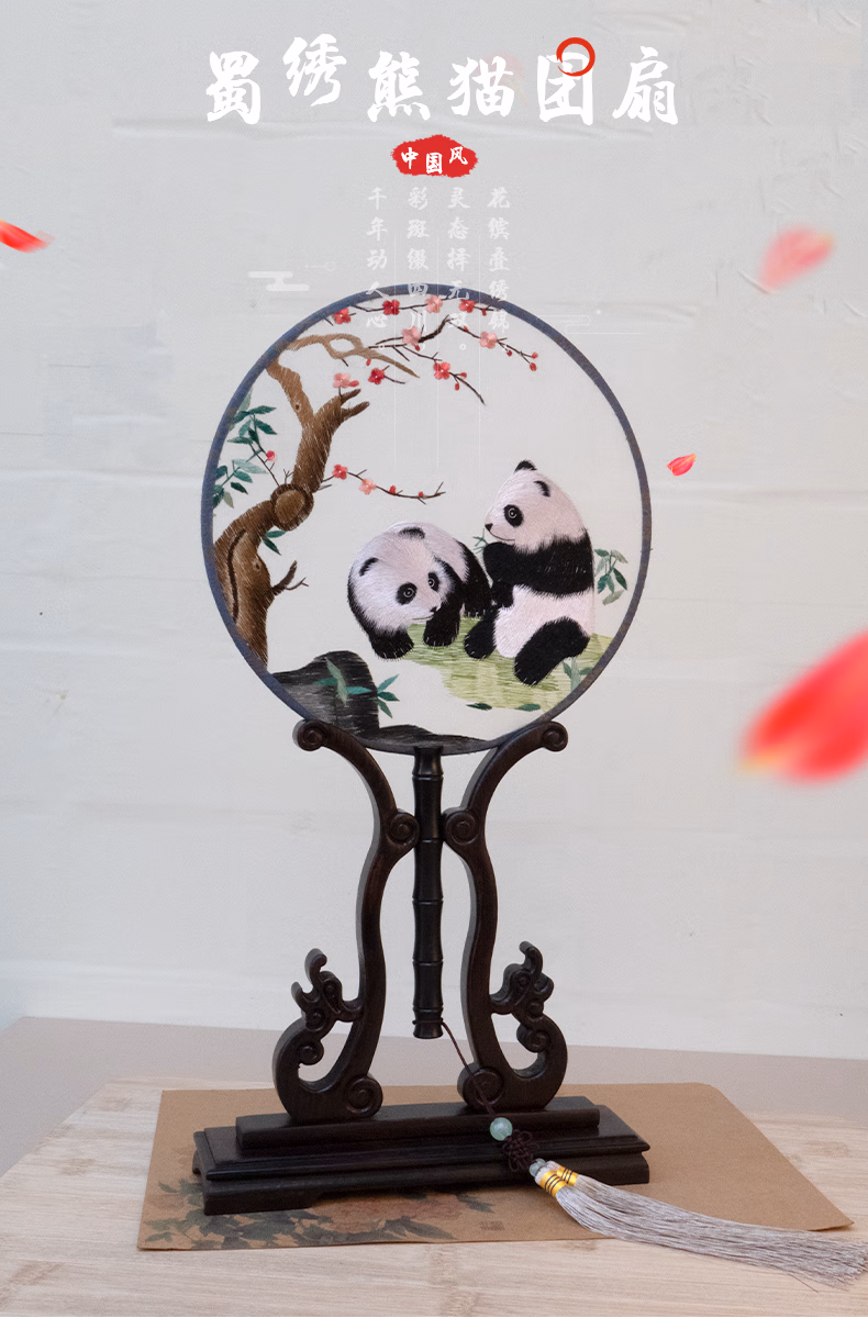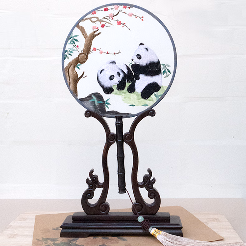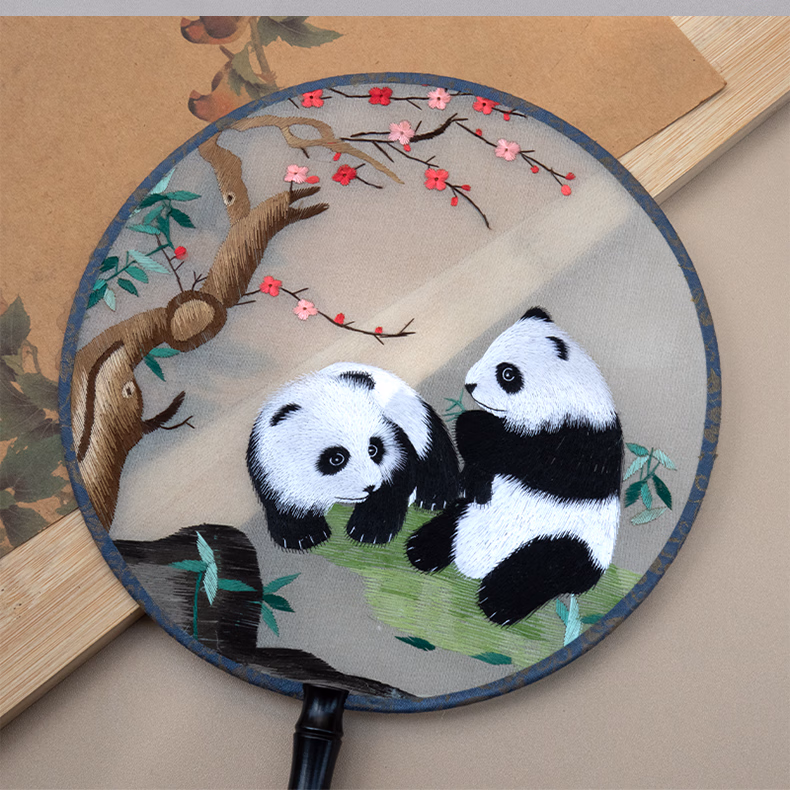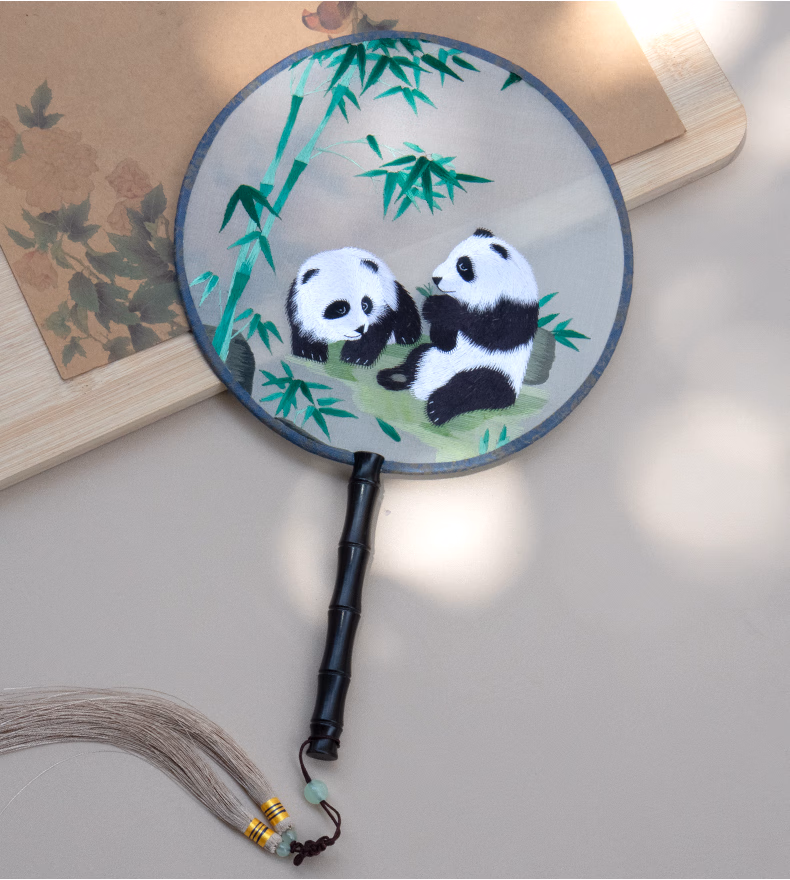 Yuyu intangible cultural heritage Sichuan embroidery panda fan ornament, a Chinese-style traditional embroidery craft