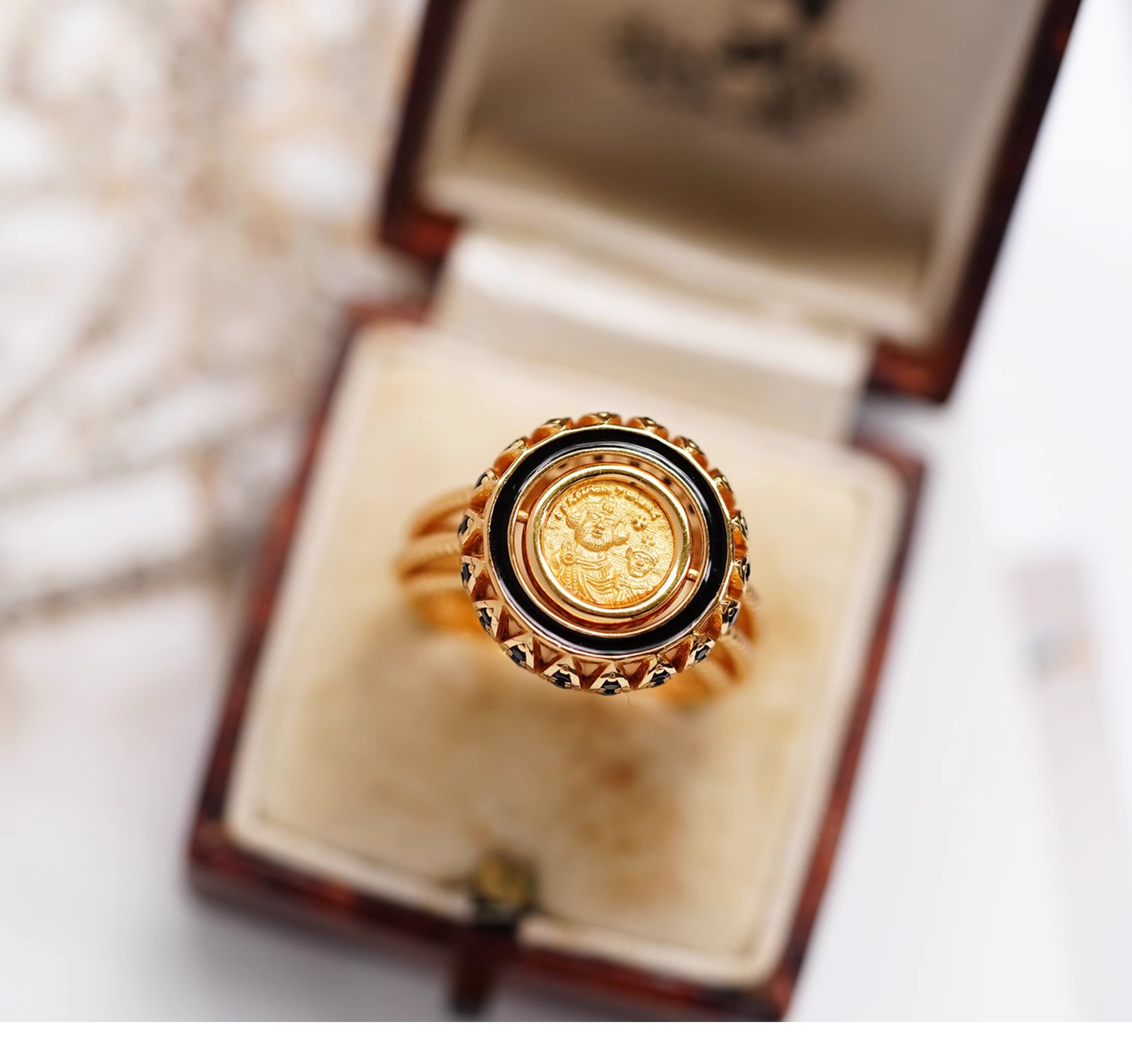 喻棠italks|拜占庭之辉|925银镀金复刻古币戒指翻转双面可戴