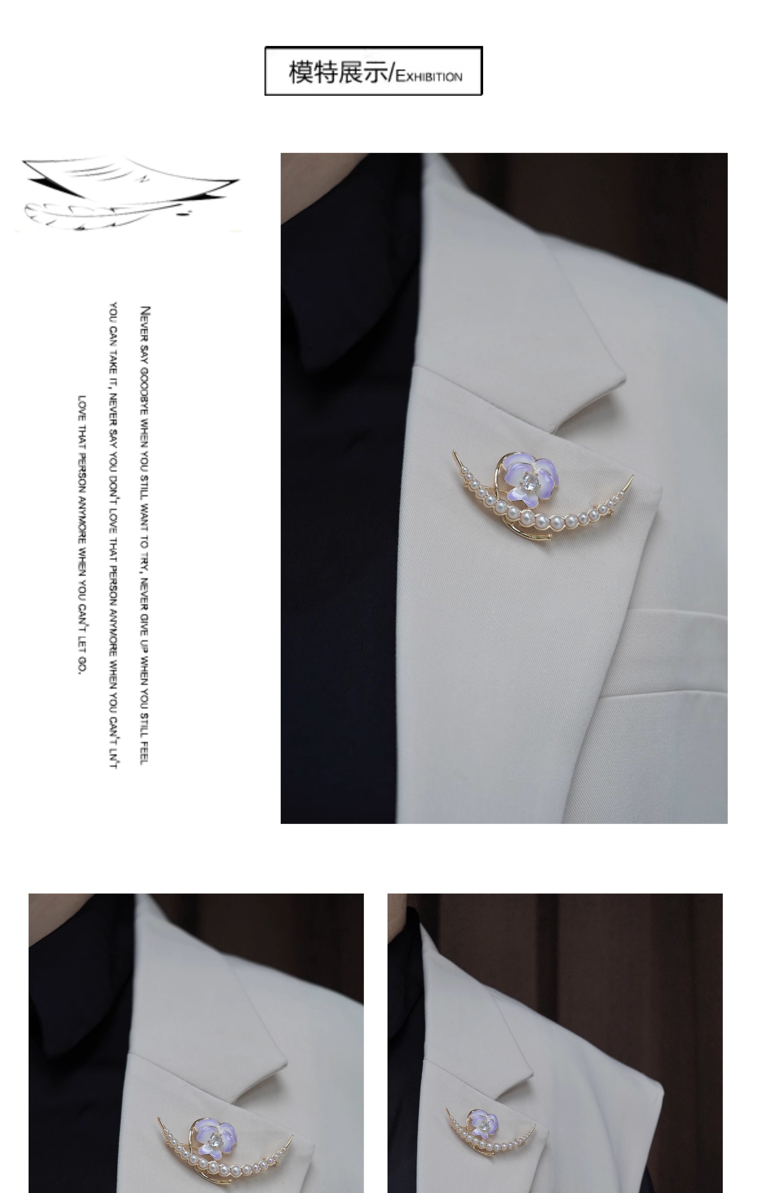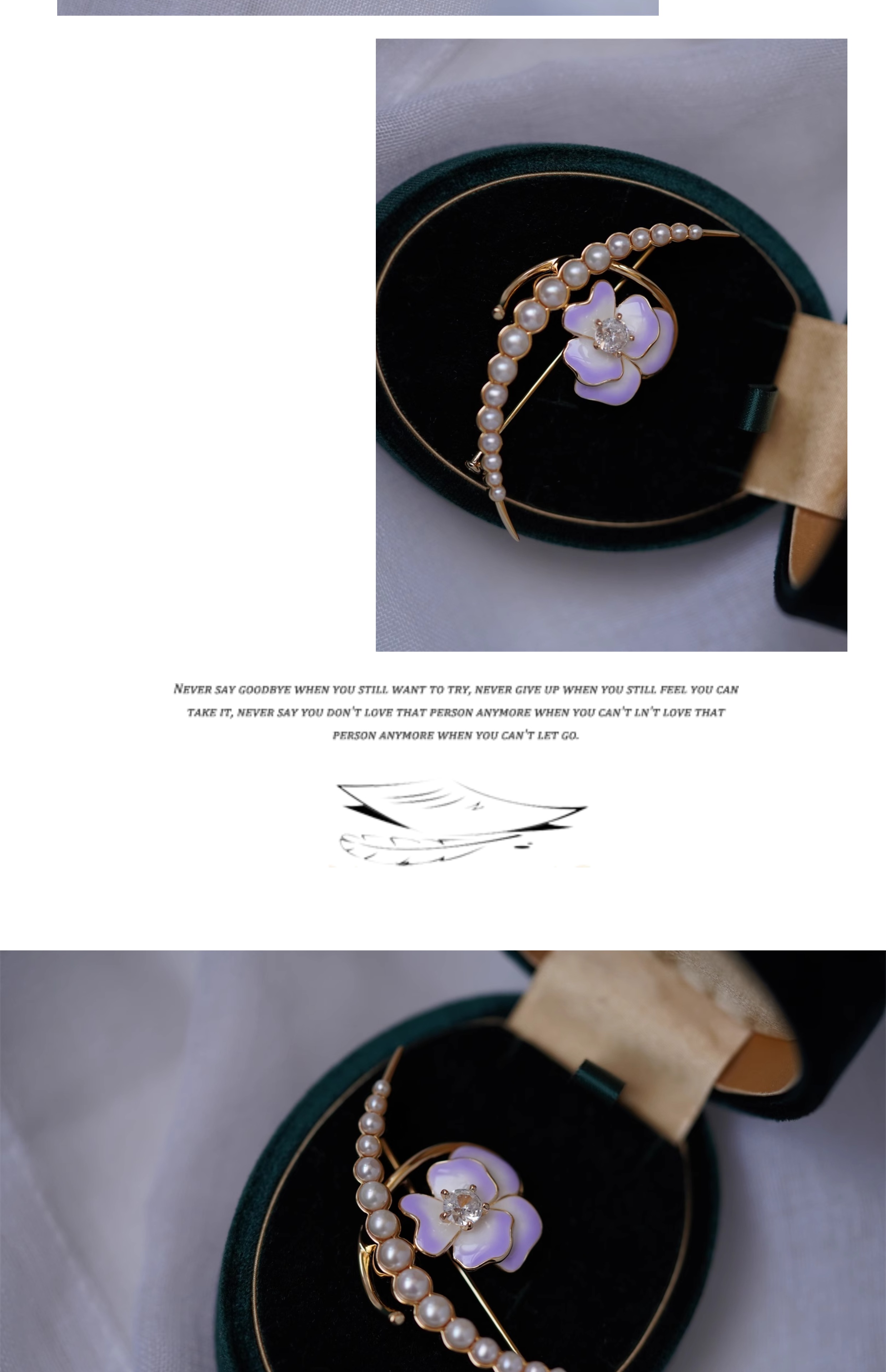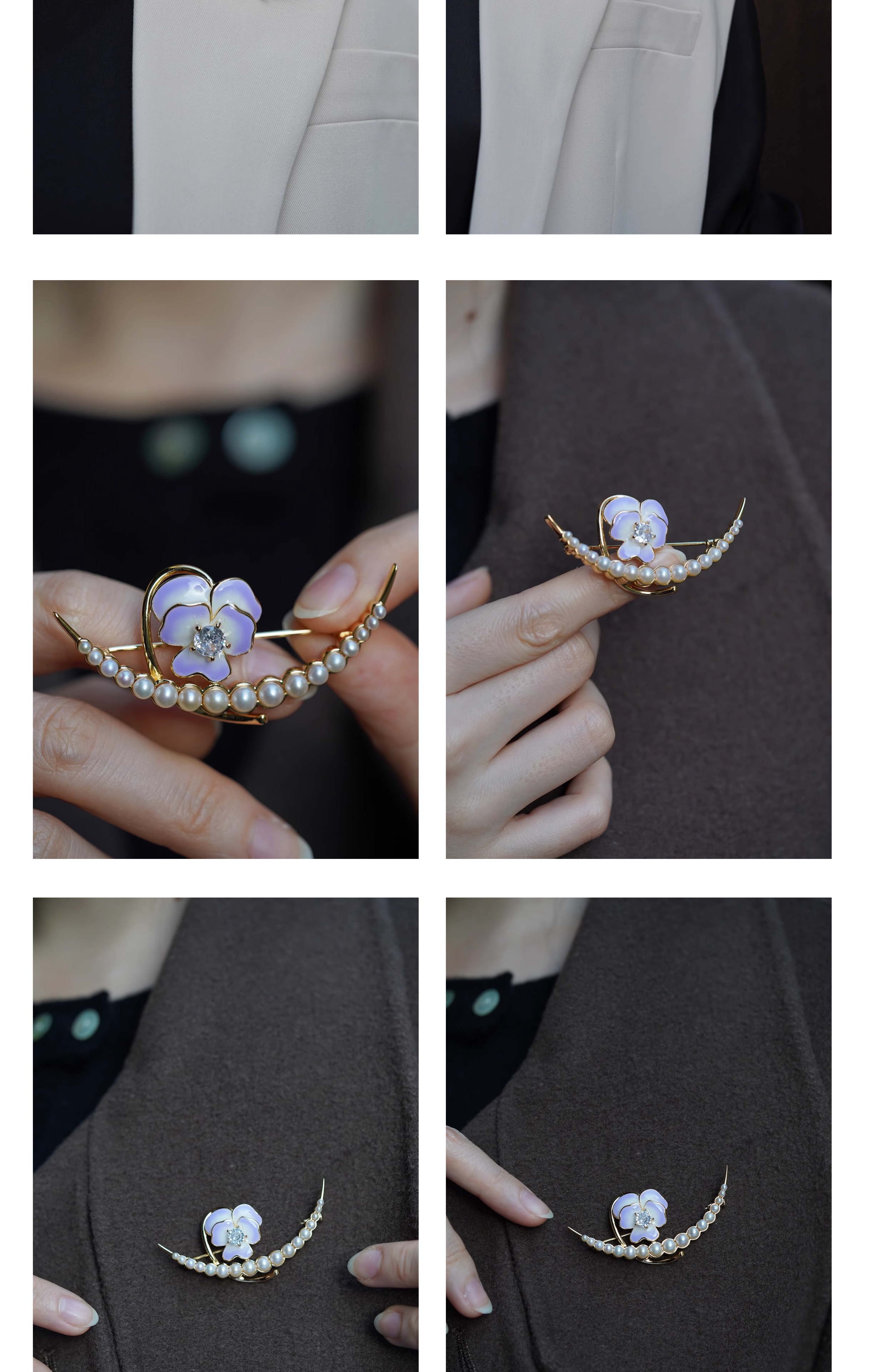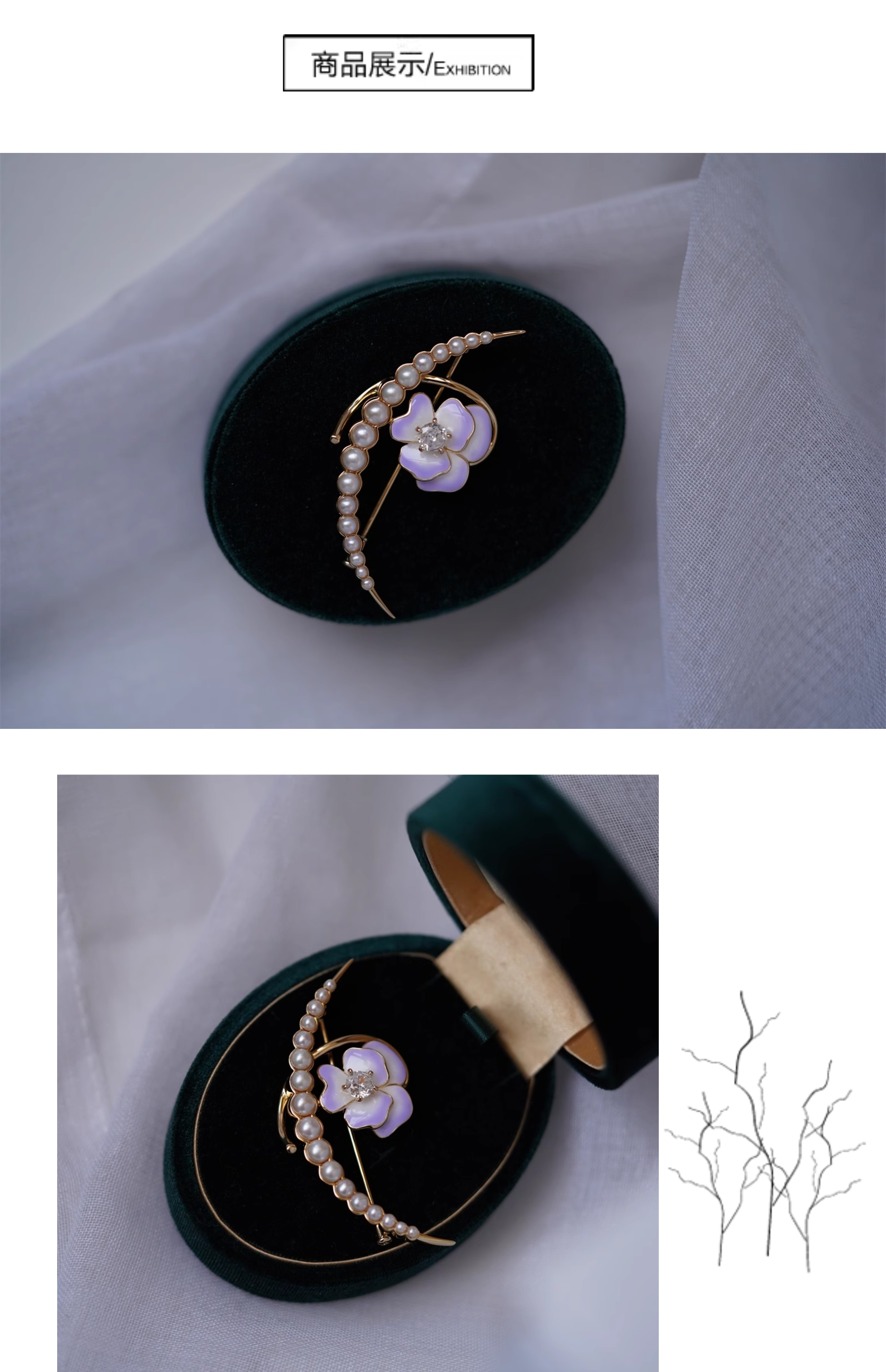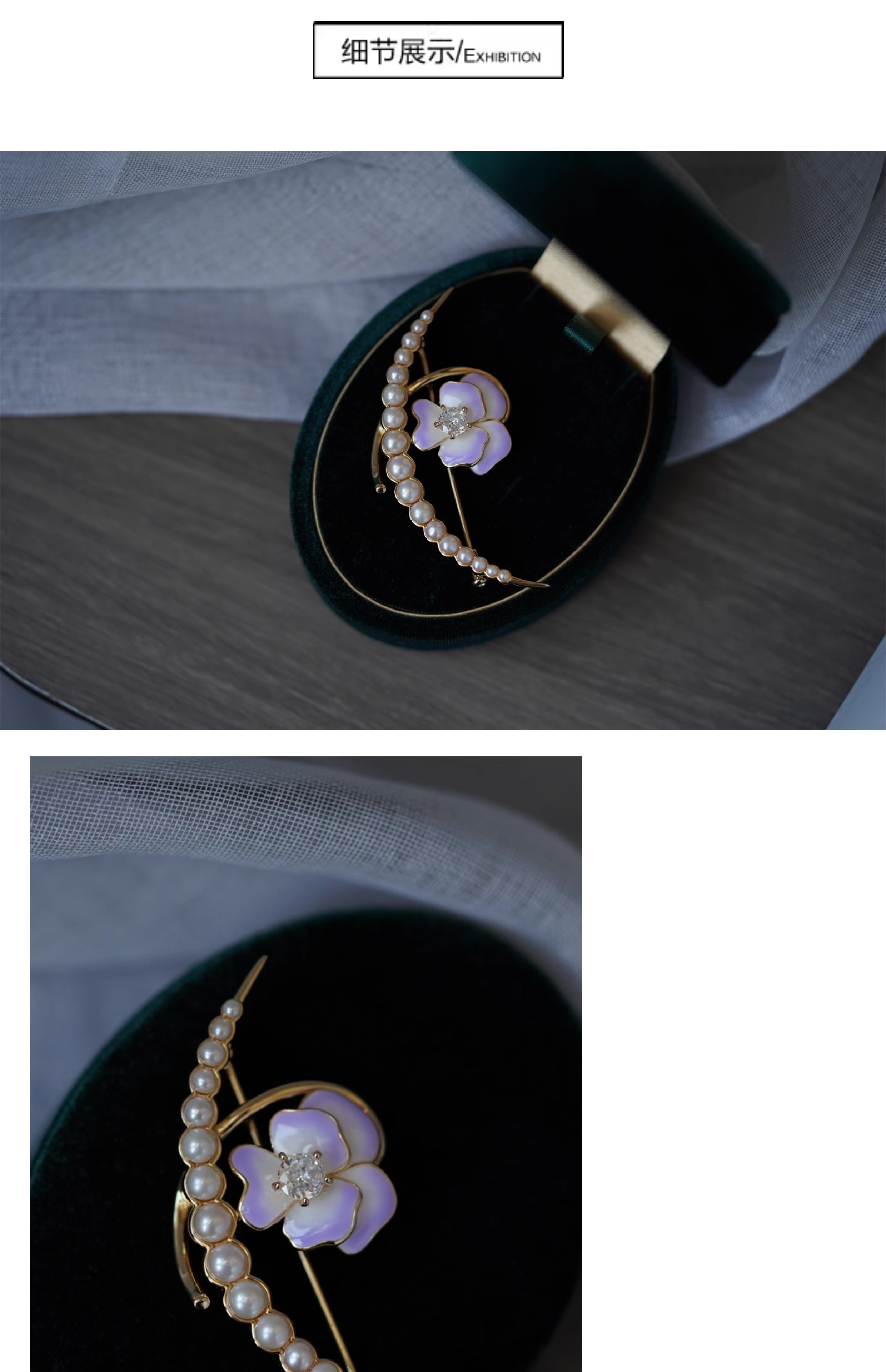 喻棠italks|月半弯|925银镀金花朵淡水珍珠胸针珐琅渐变