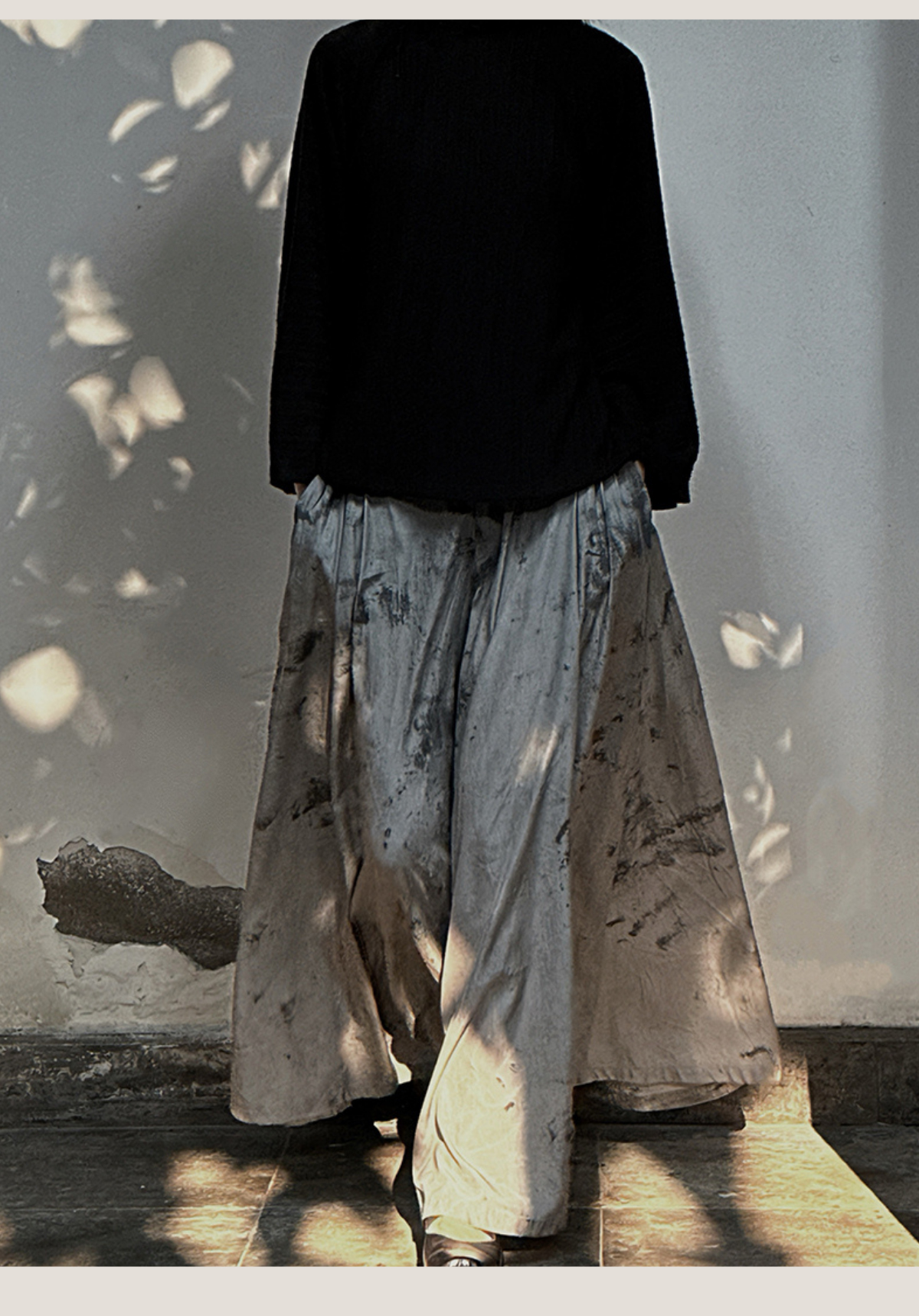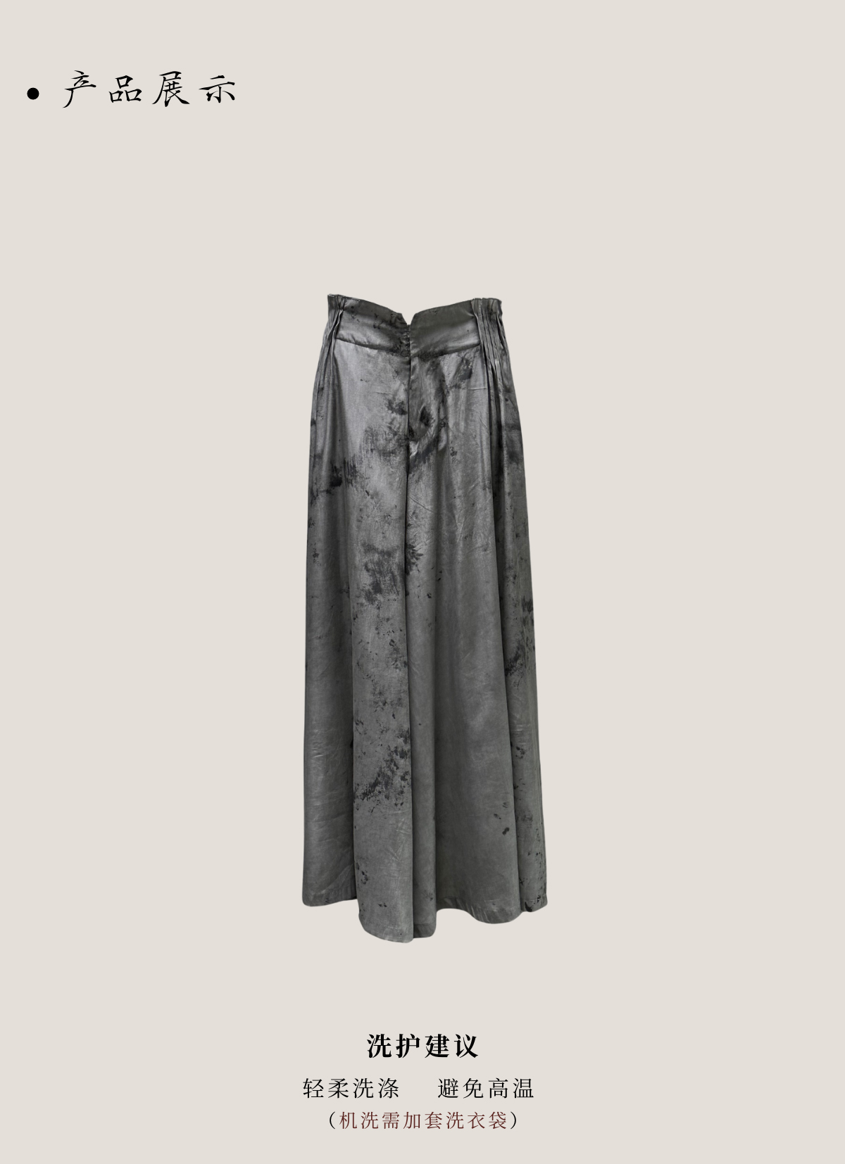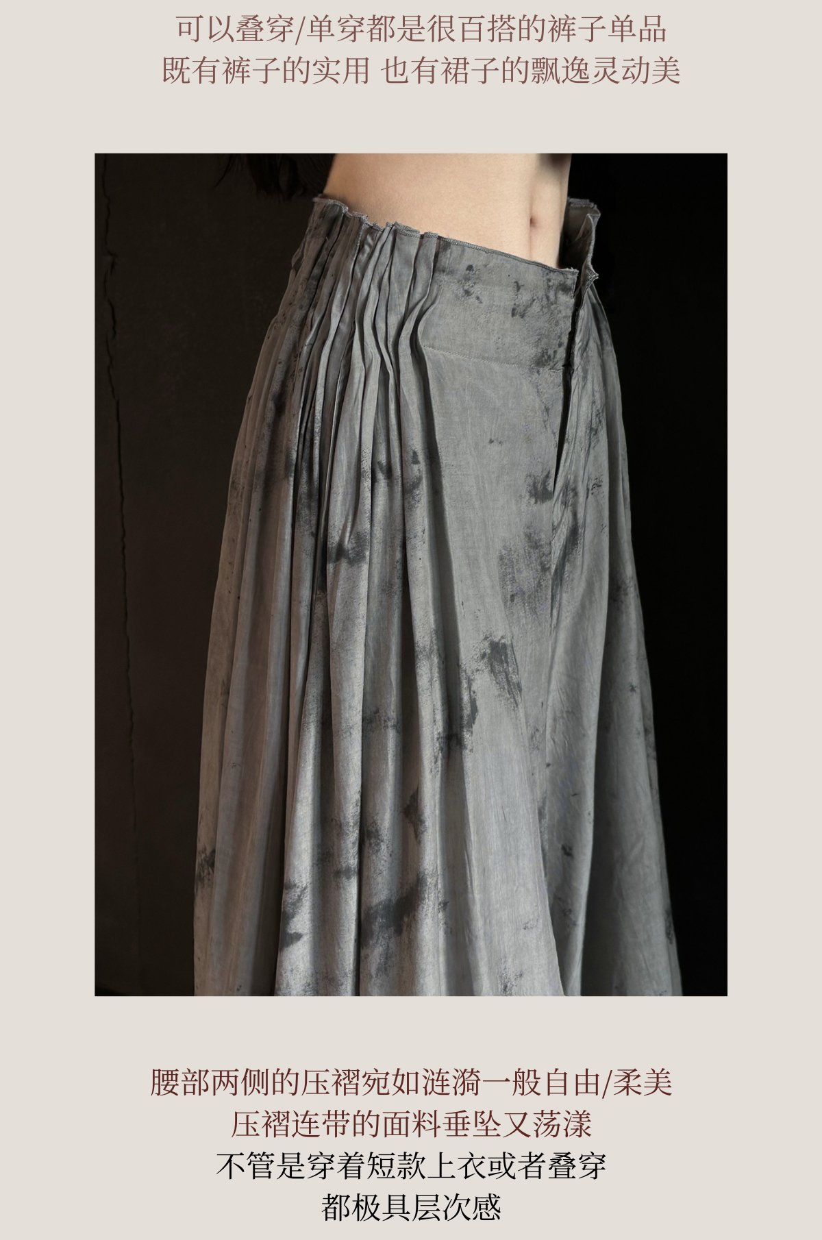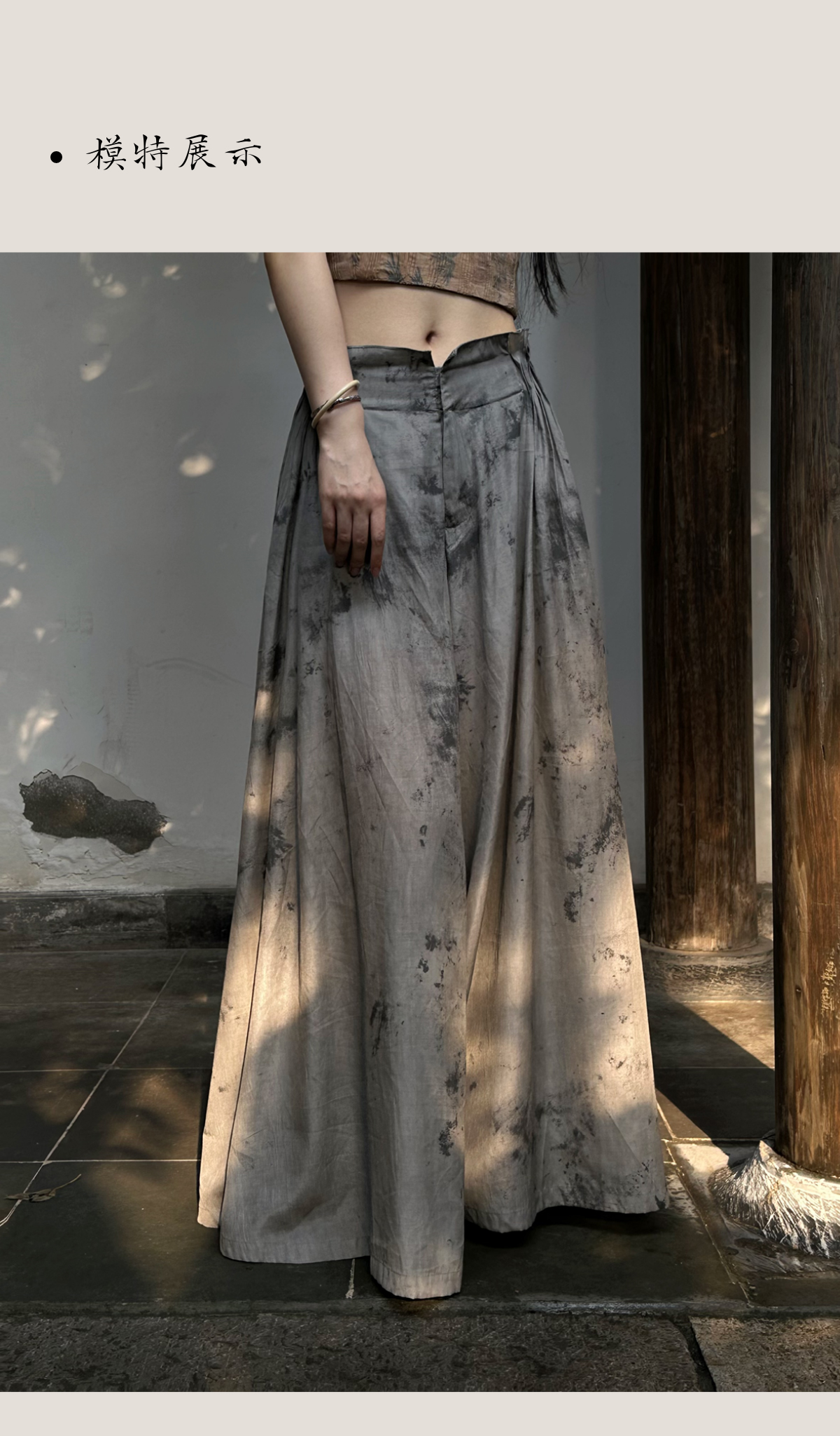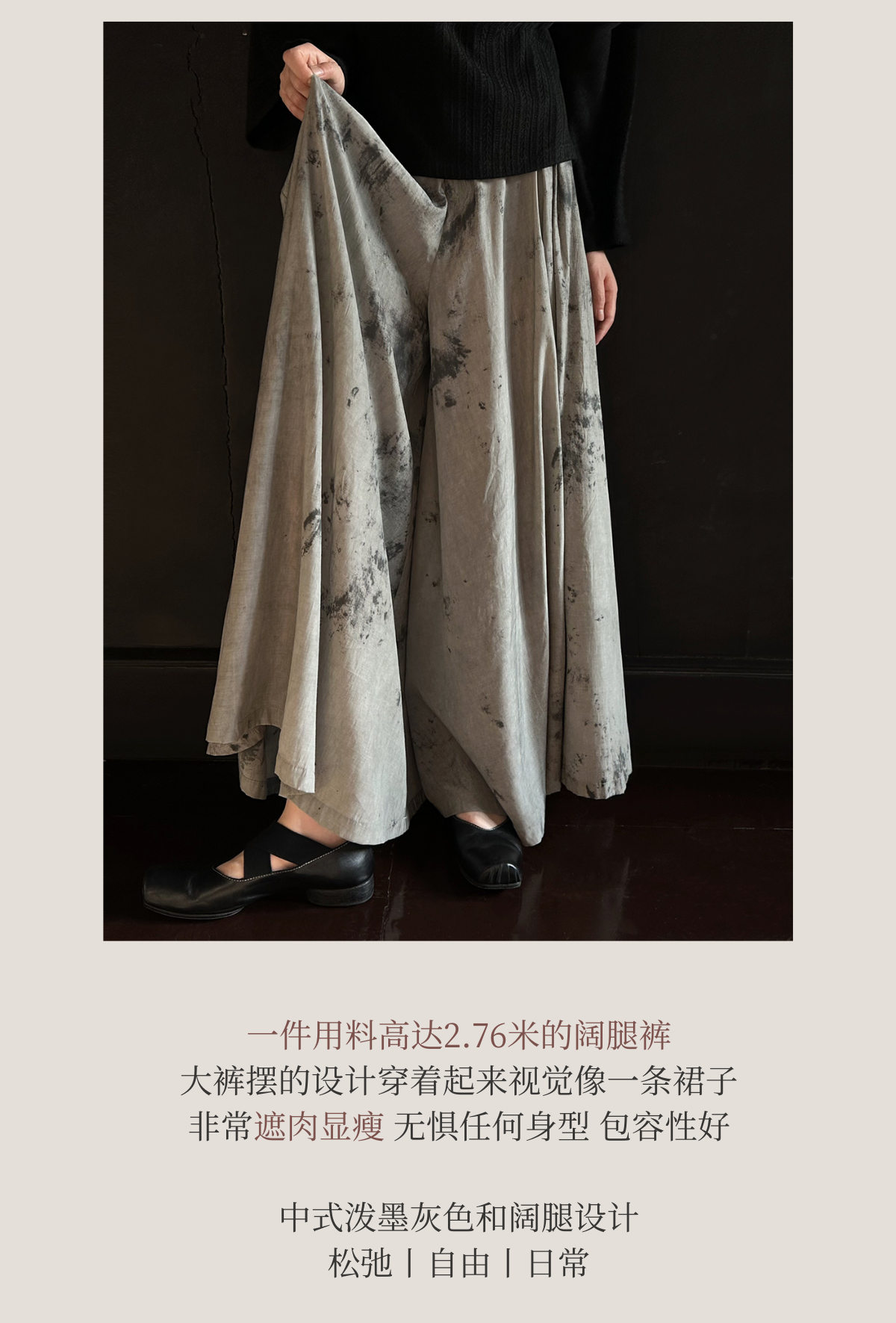 八井octsui【以墨】中式泼墨松紧腰遮肉宽松显瘦大摆阔腿长款裙裤