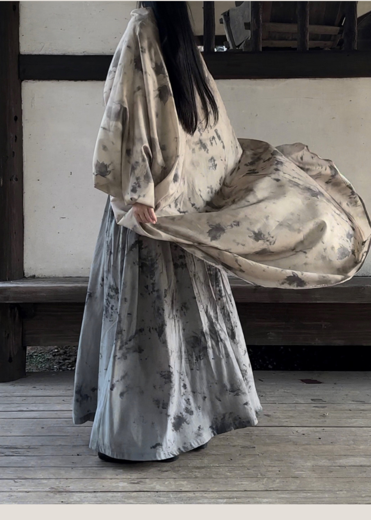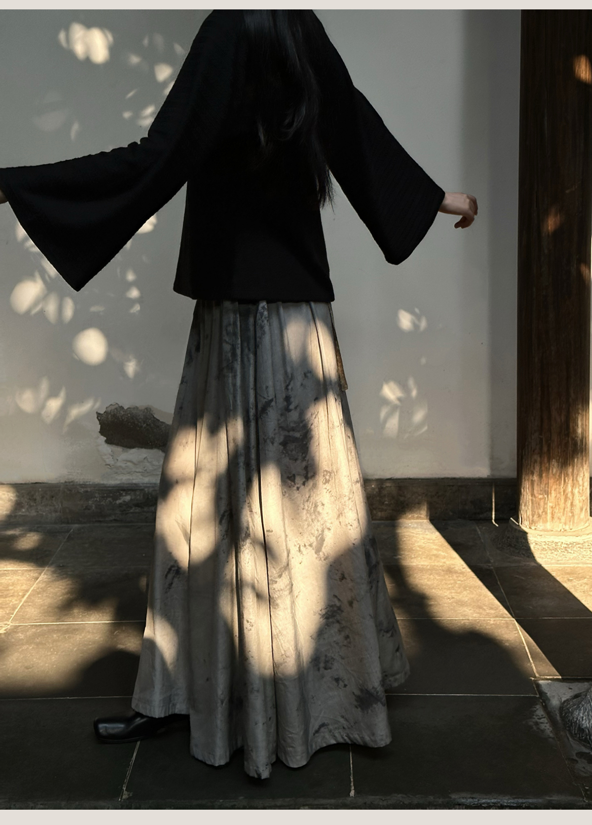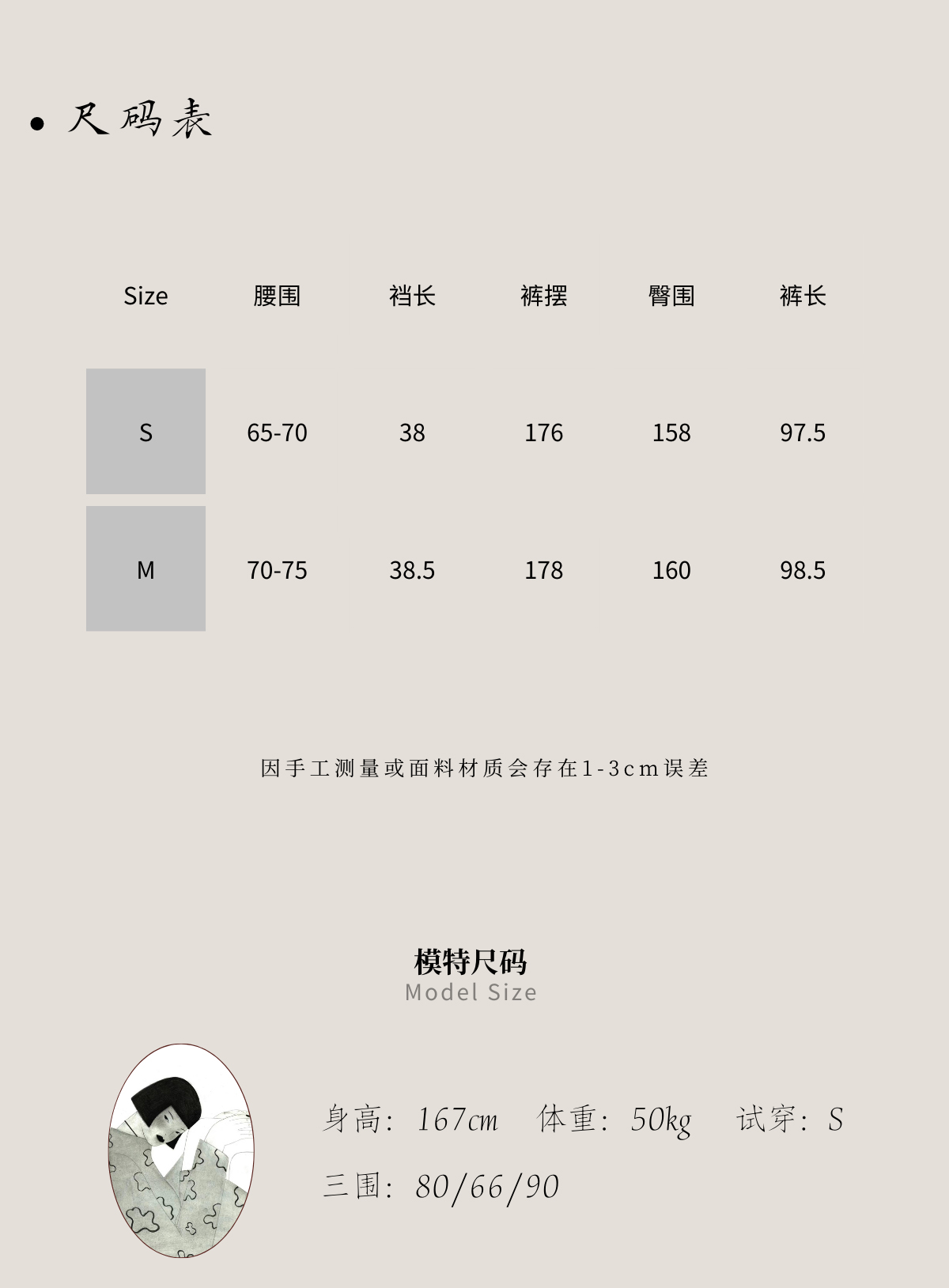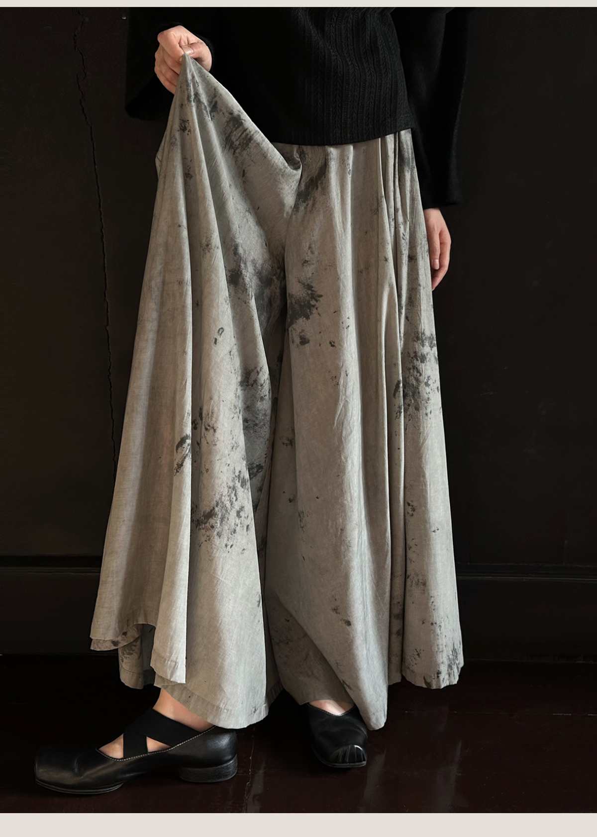 八井octsui【以墨】中式泼墨松紧腰遮肉宽松显瘦大摆阔腿长款裙裤