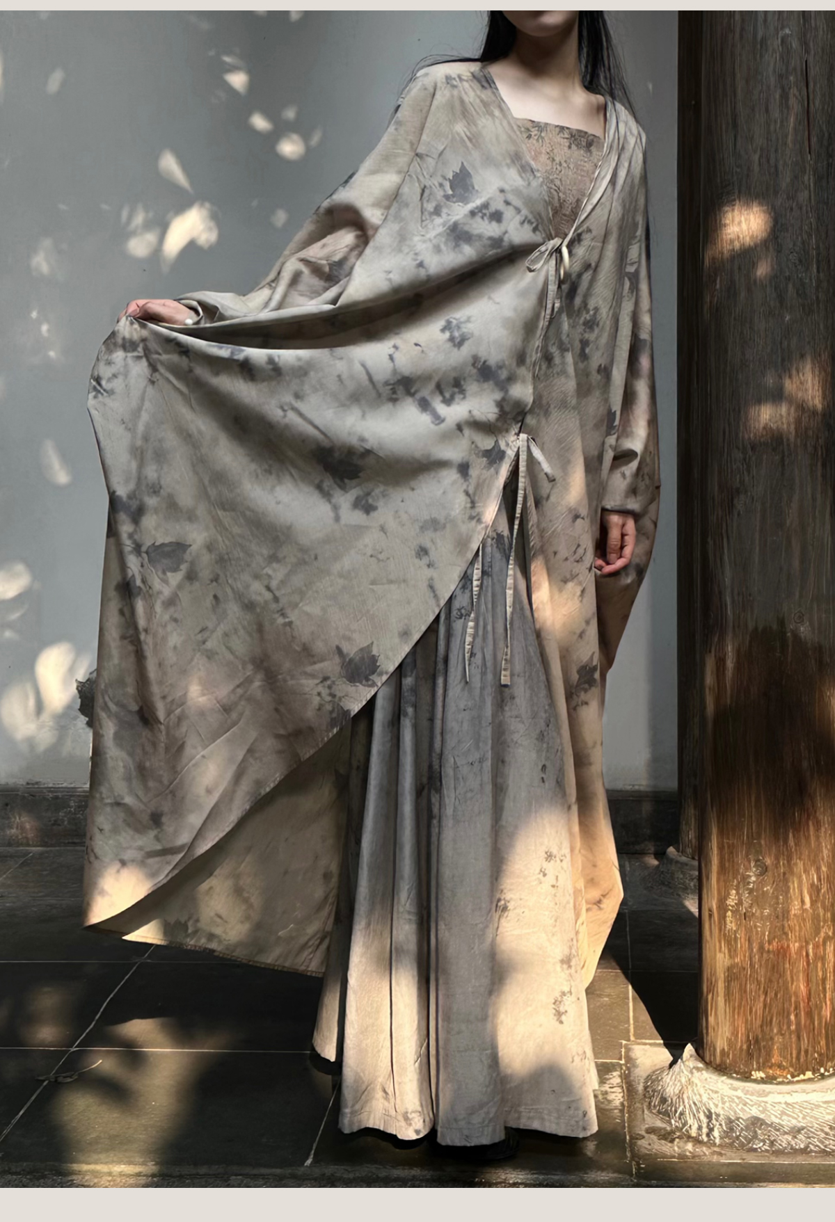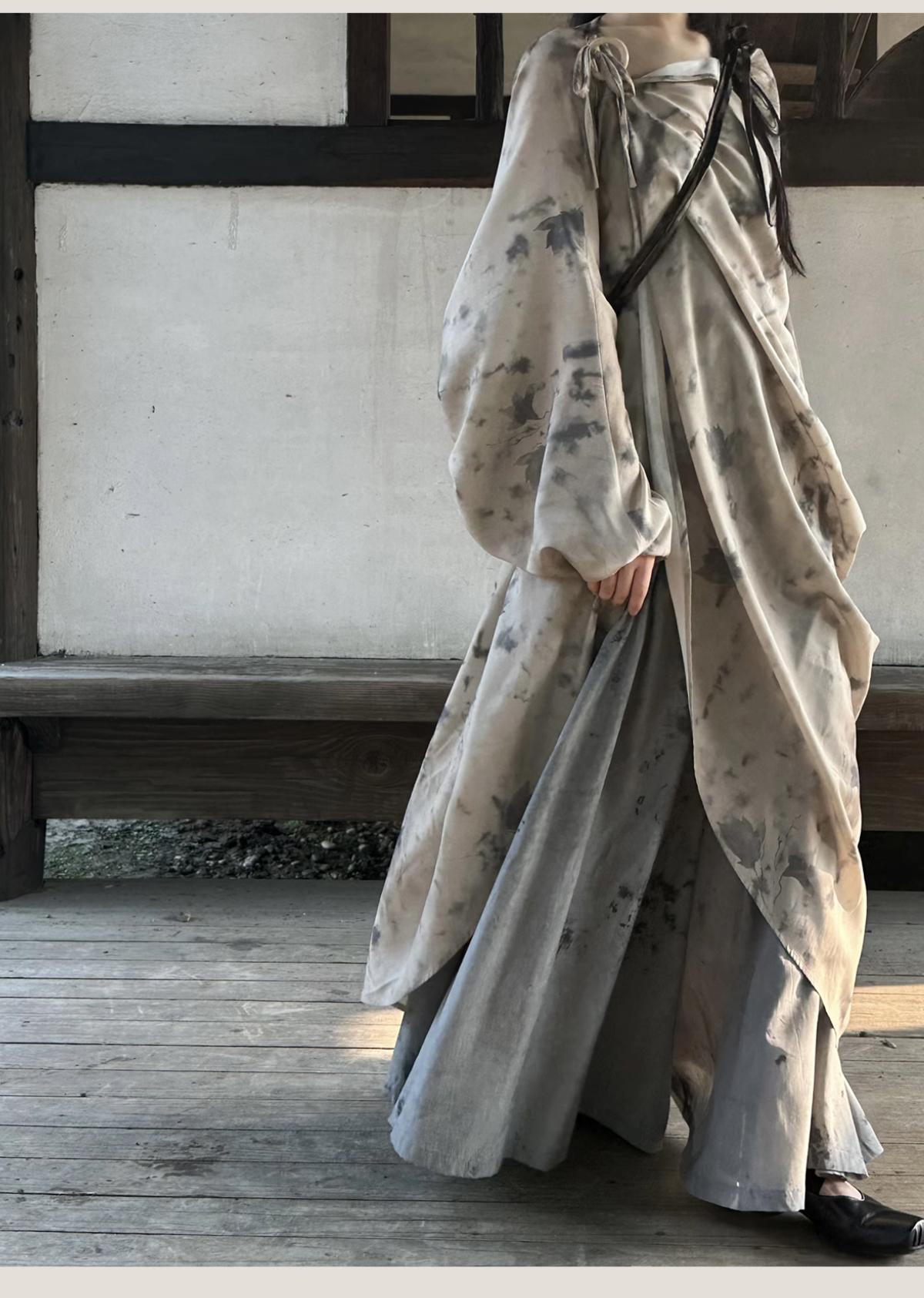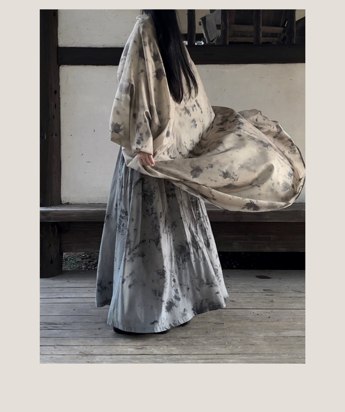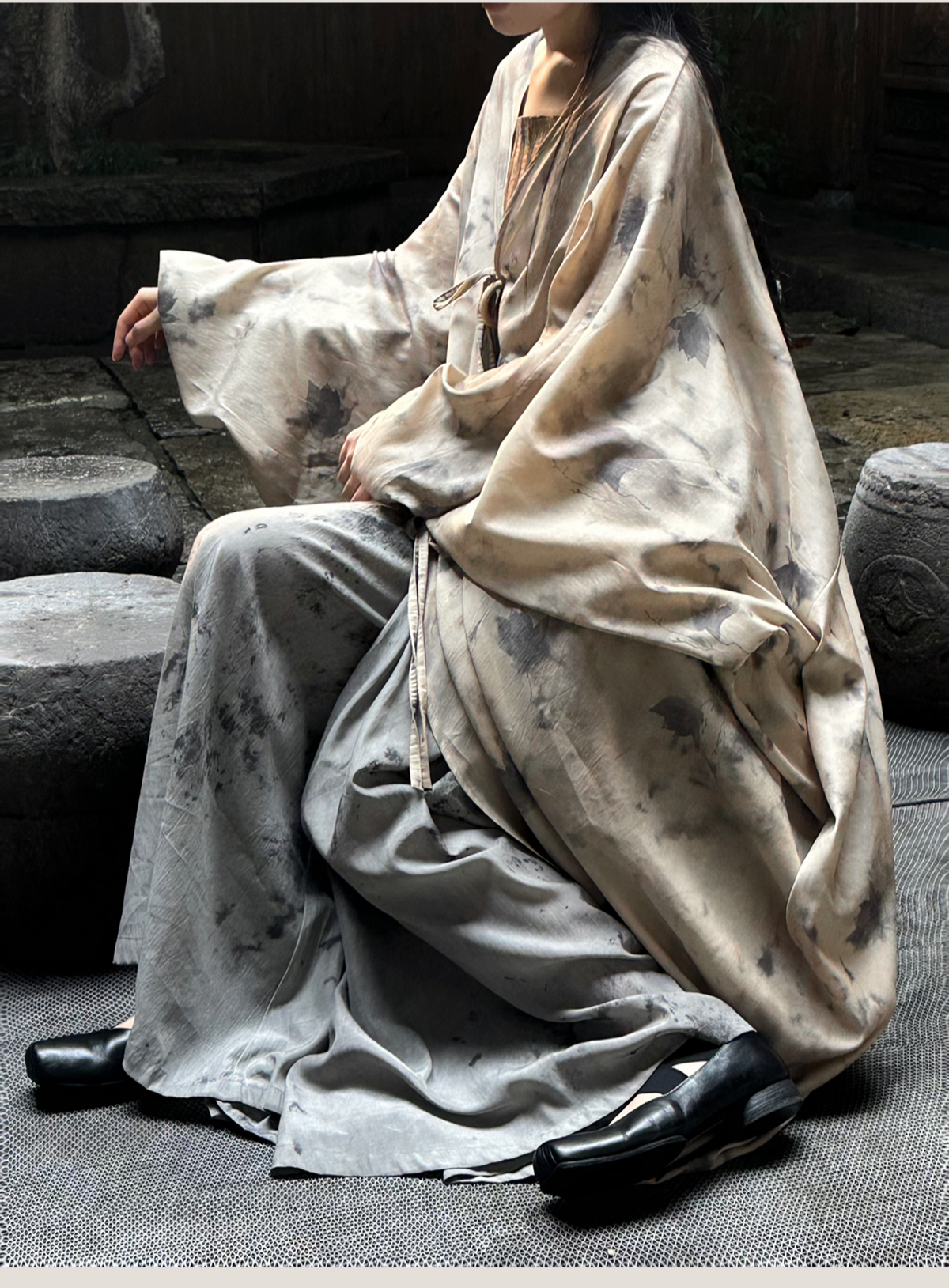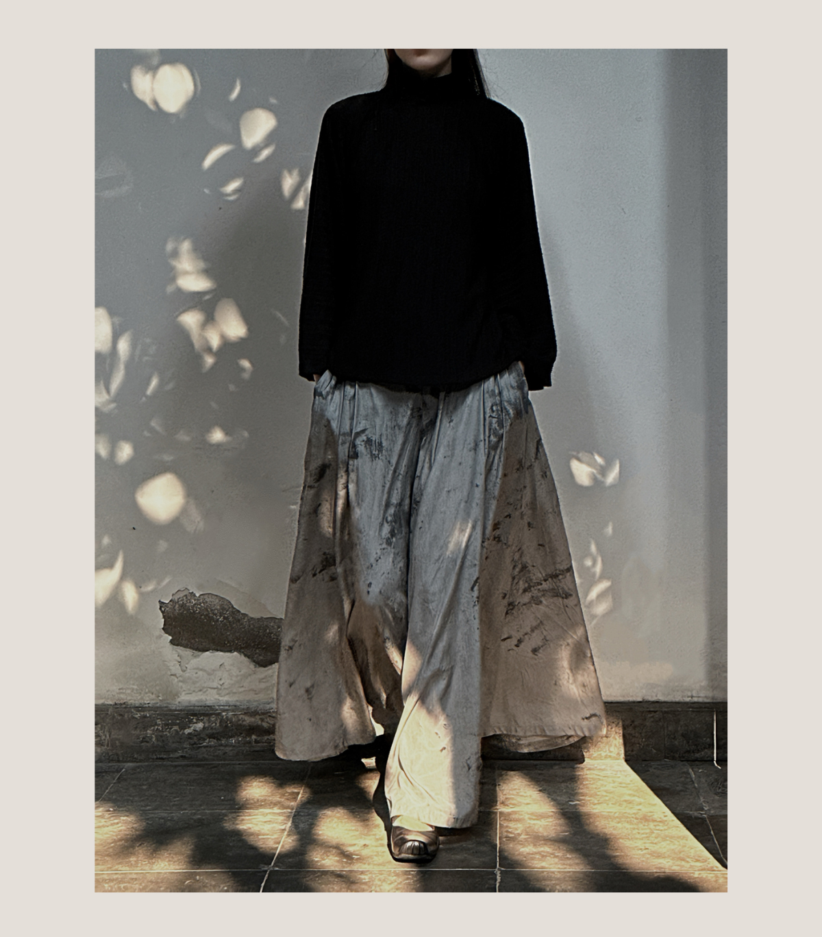 八井octsui【以墨】中式泼墨松紧腰遮肉宽松显瘦大摆阔腿长款裙裤