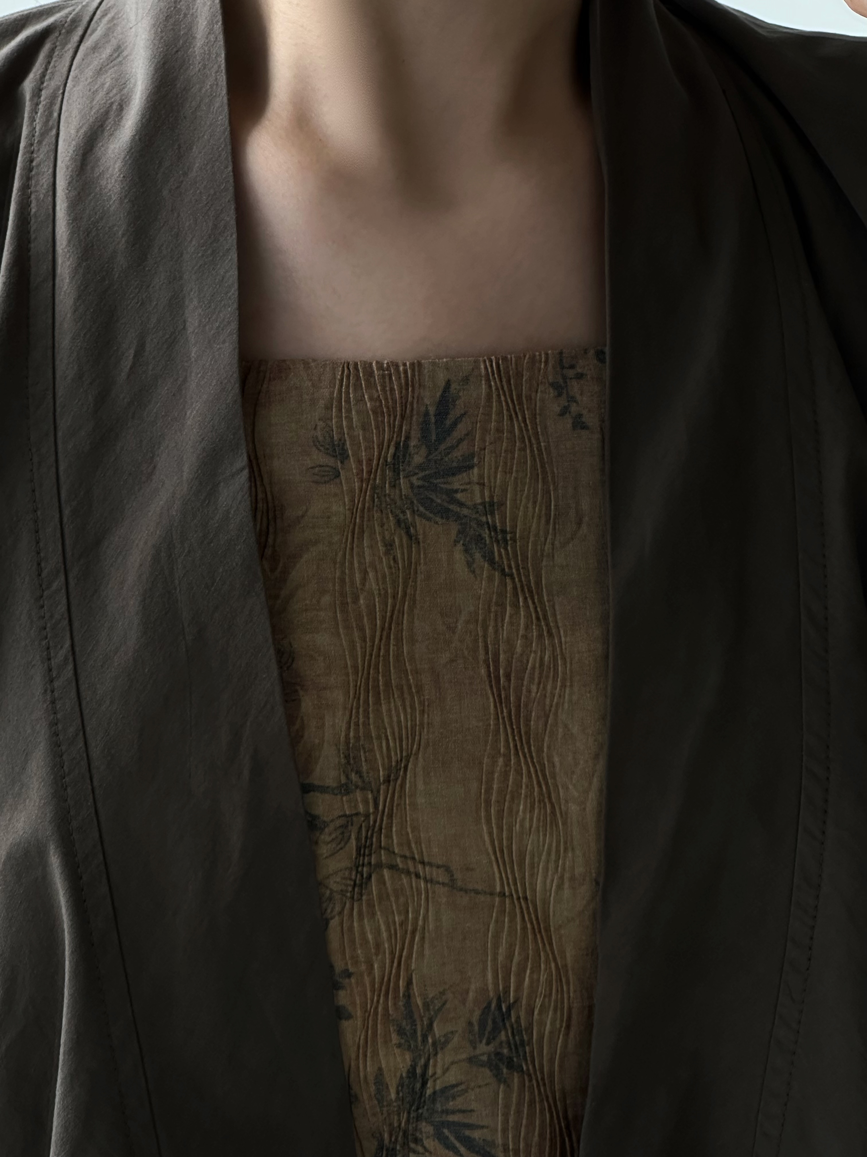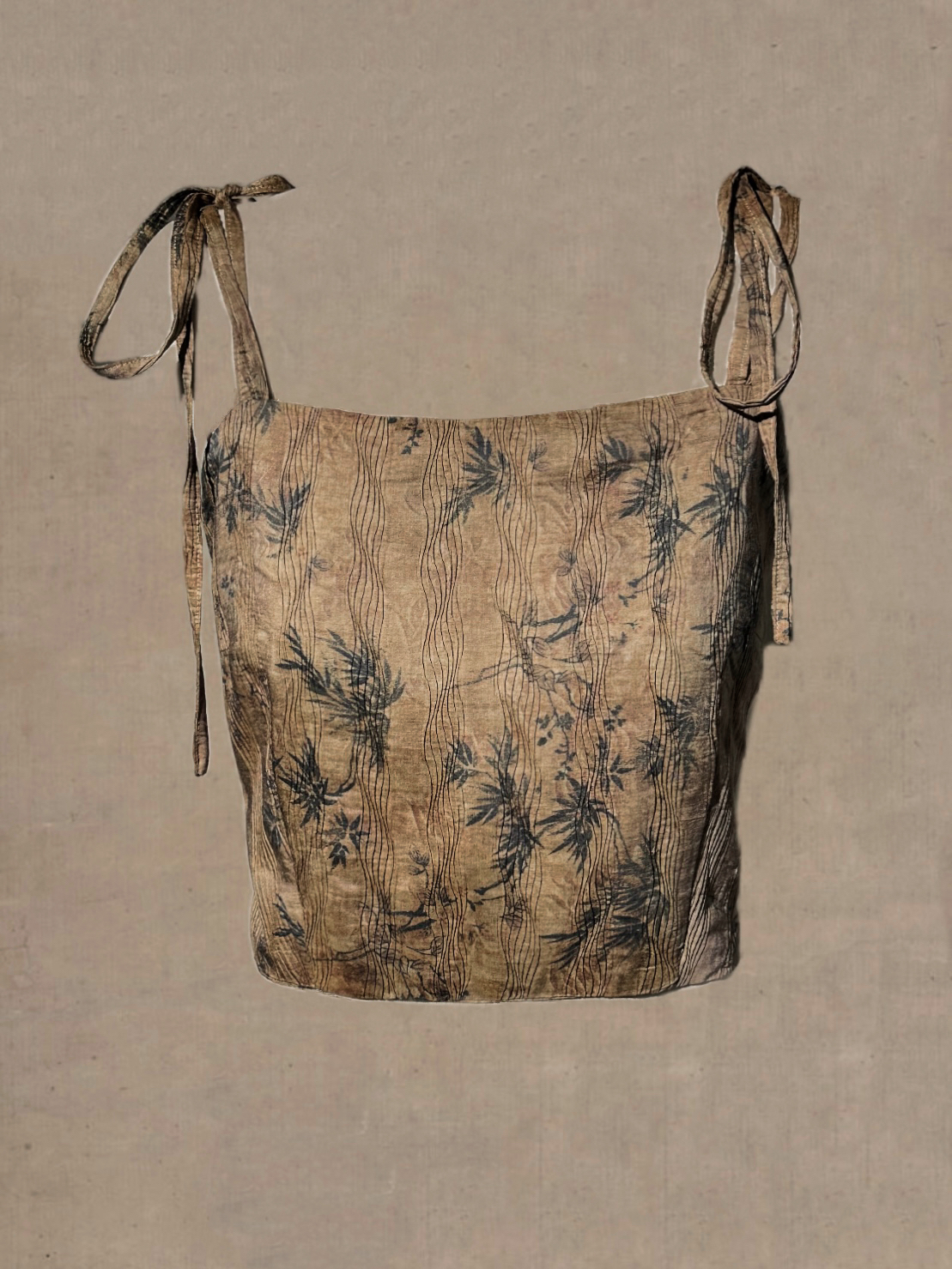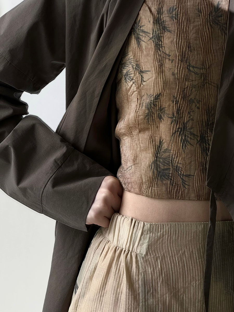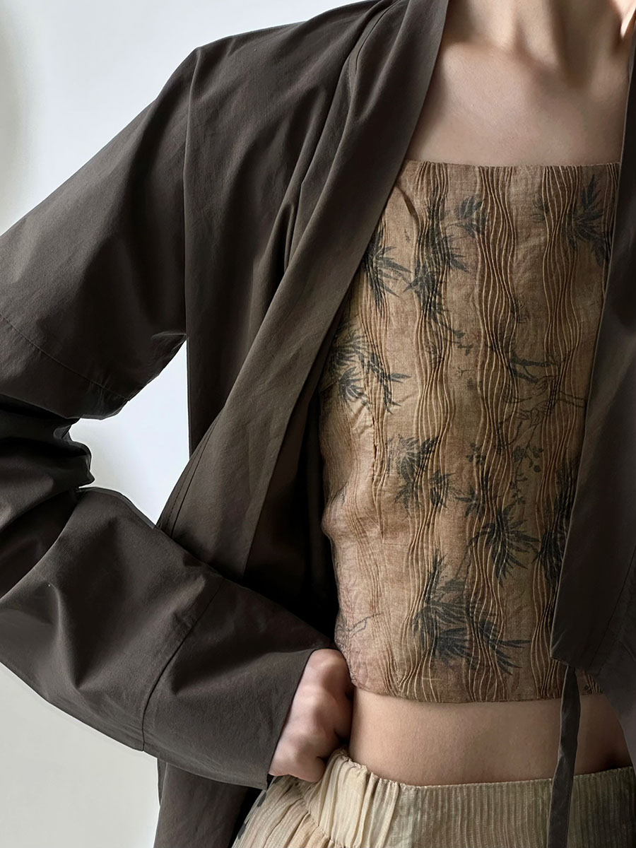 八井octsui丨水中竹 原创新中式水波纹肌理竹叶复古温柔吊带小衫