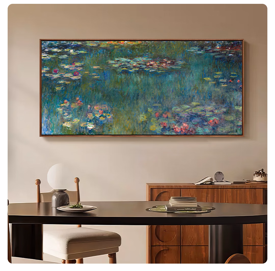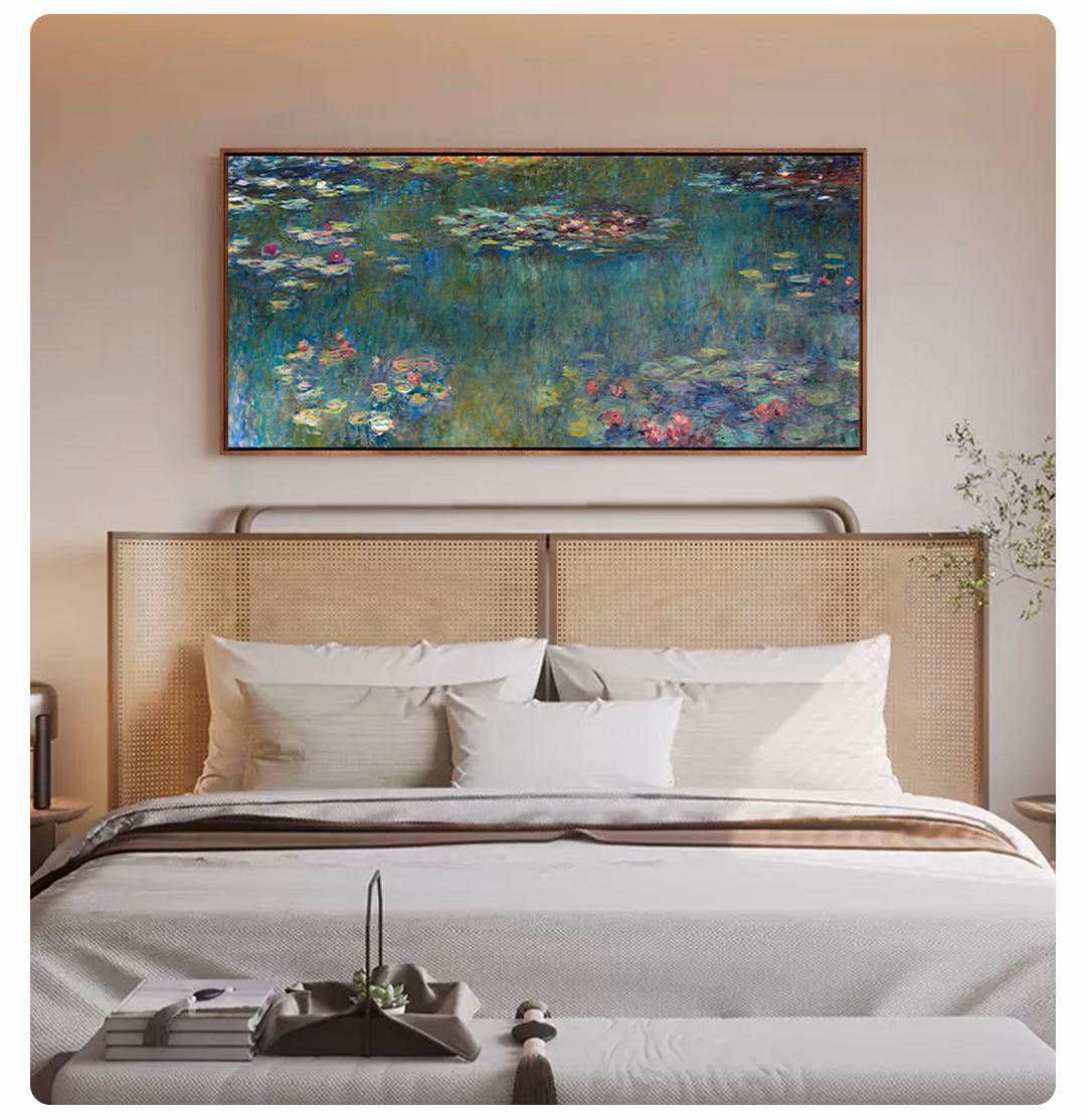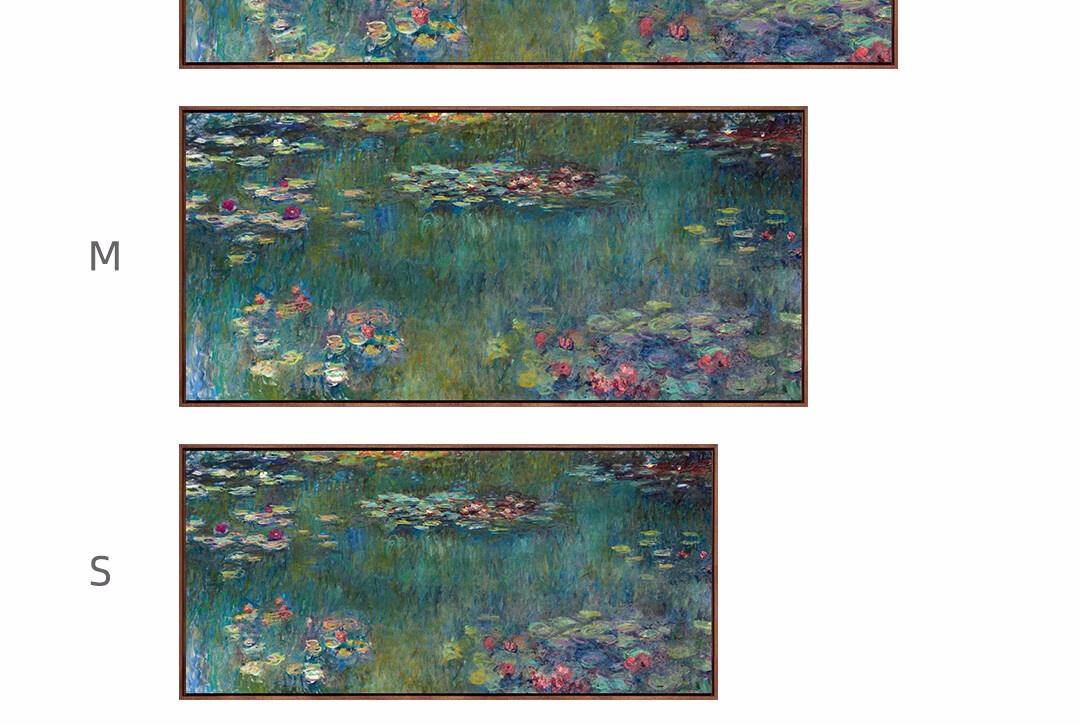 艺术家的礼物新品 莫奈《睡莲-绿色倒影》版画 现代客厅玄关沙发背景墙装饰画 睡莲-绿色倒影-S号:57*120cm 沙比利木L框08/35mm 收藏