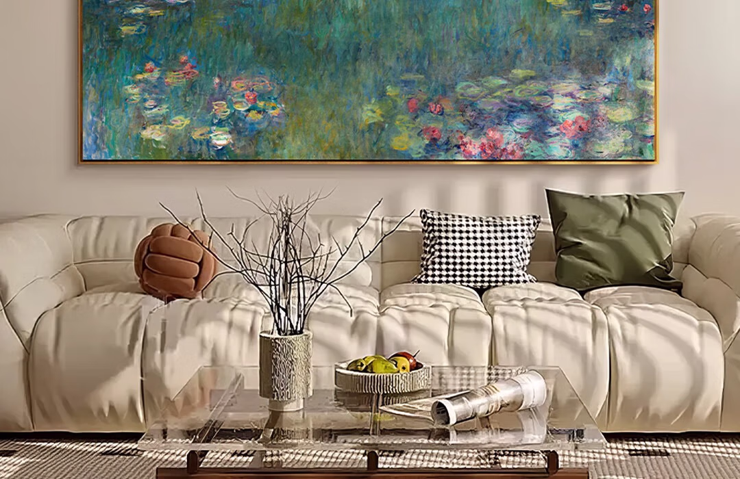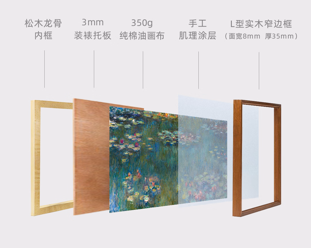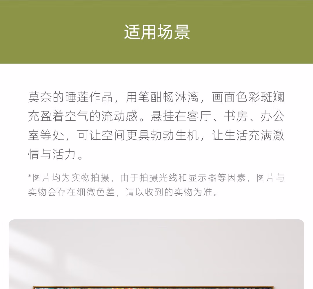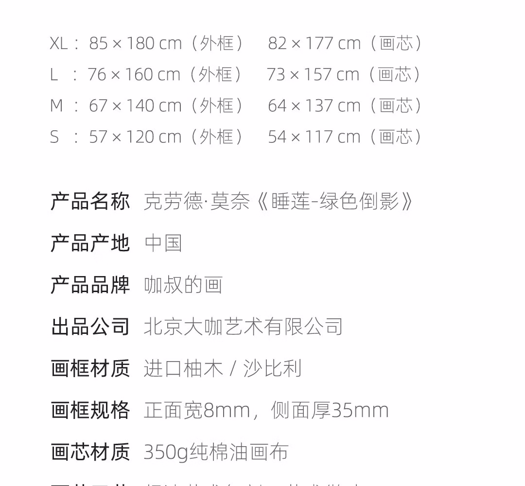 艺术家的礼物新品 莫奈《睡莲-绿色倒影》版画 现代客厅玄关沙发背景墙装饰画 睡莲-绿色倒影-S号:57*120cm 沙比利木L框08/35mm 收藏
