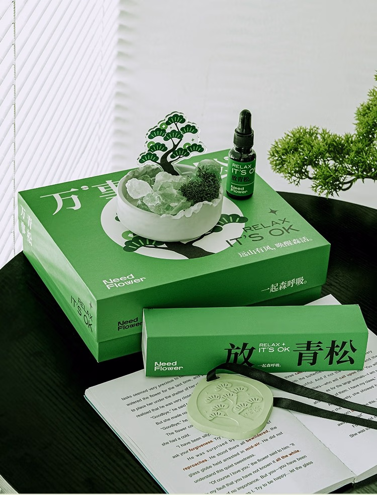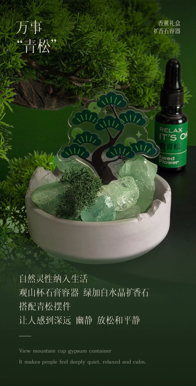 包装好看,里面东西很丰富开箱好开心~ 就像桌面小绿植一样很可爱,香薰味道清新不腻,很好闻!