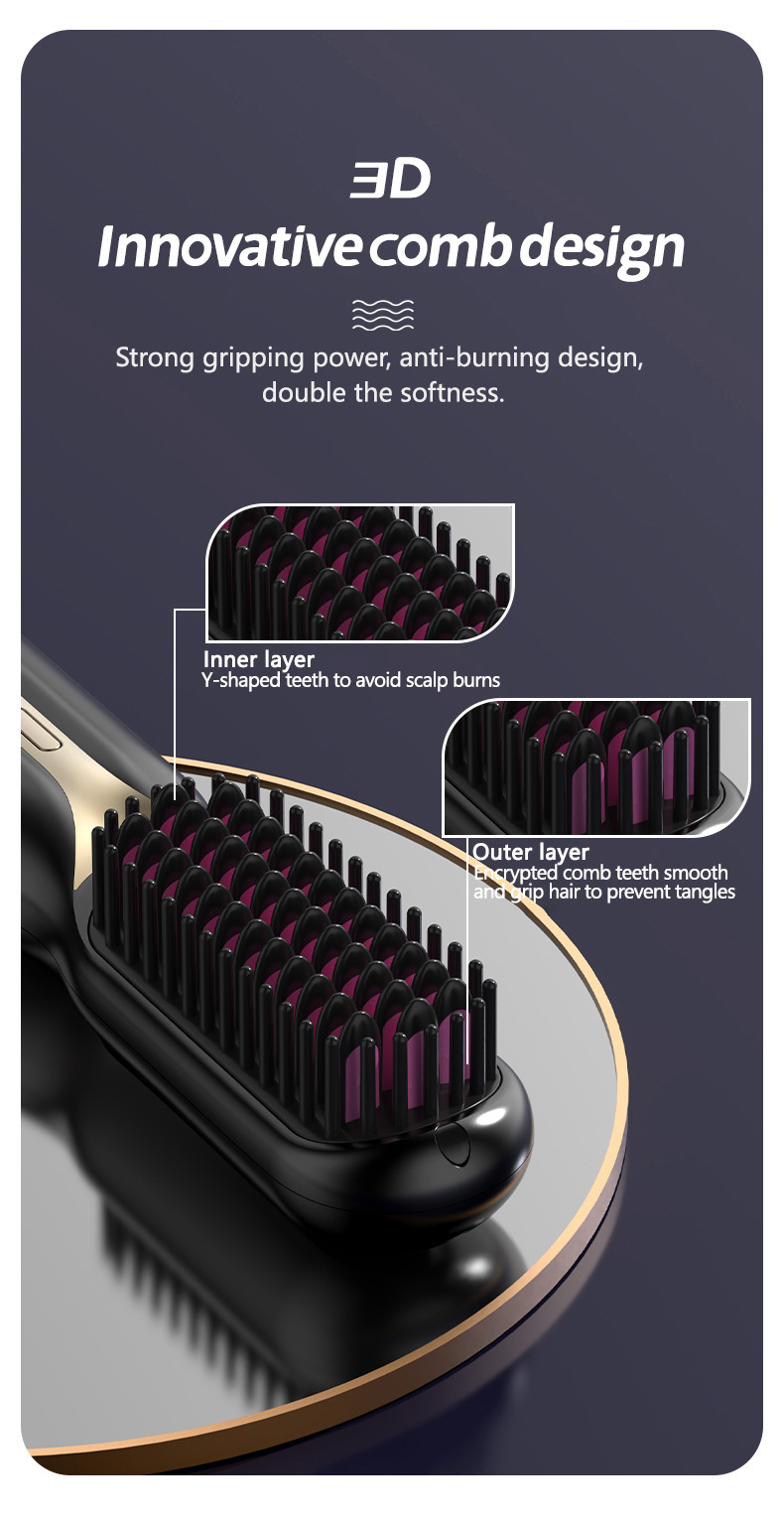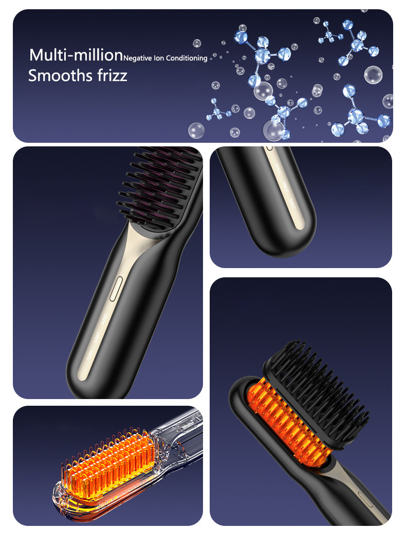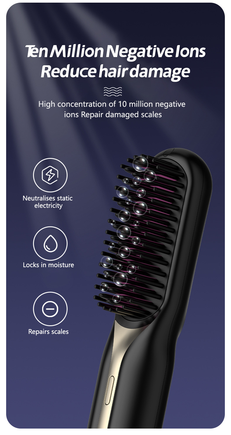 Portable negative ion hair - care and straightening comb for charging, wireless, and making hair smooth
