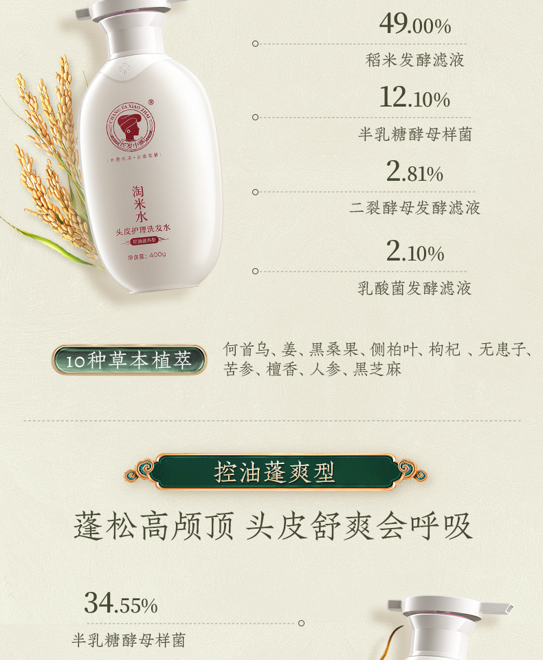 长发小寨淘米水洗发水控油蓬松去屑柔顺修护洗发露膏官方旗舰正品