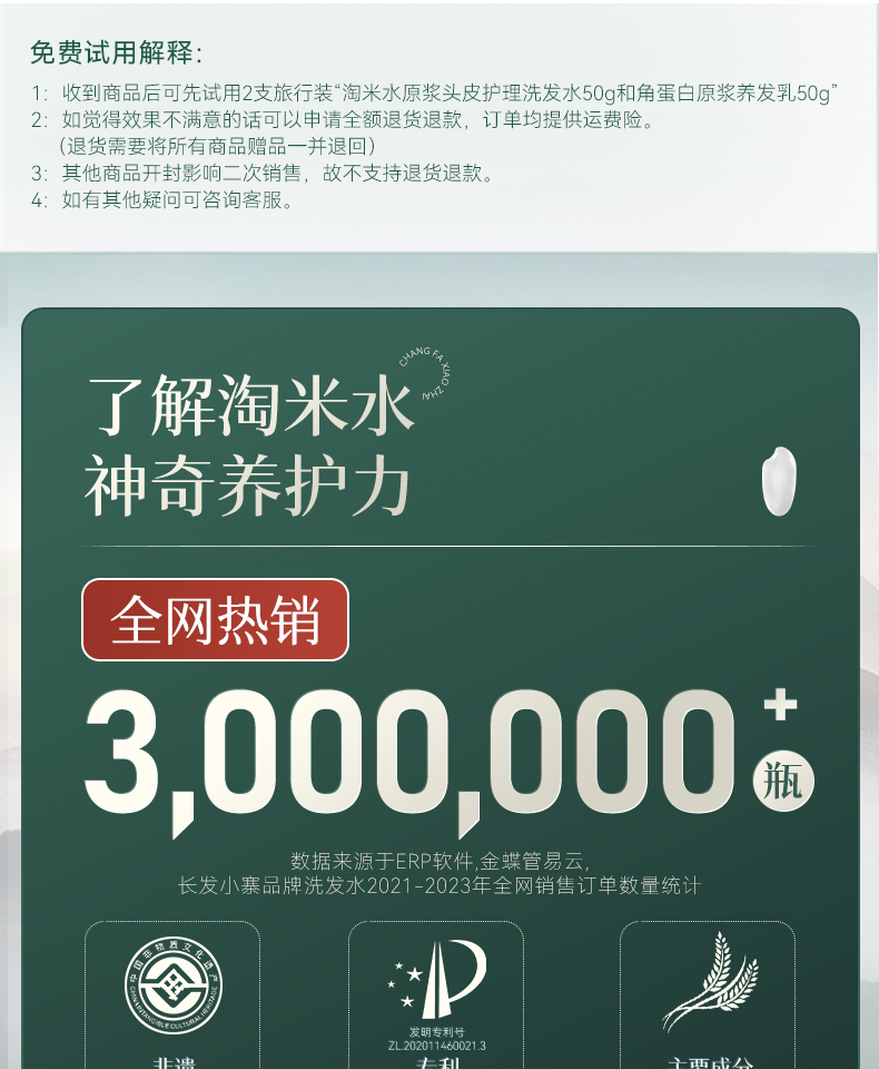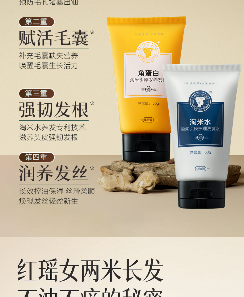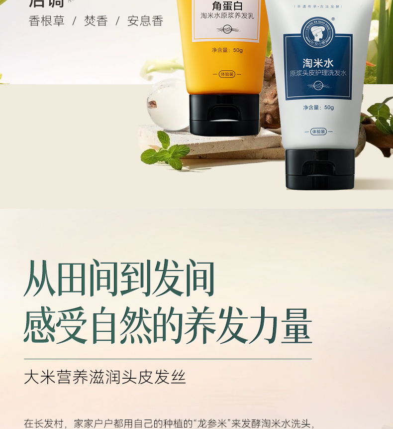 长发小寨淘米水洗发水旅行洗护套装去屑止痒控油蓬松洗发露男女士