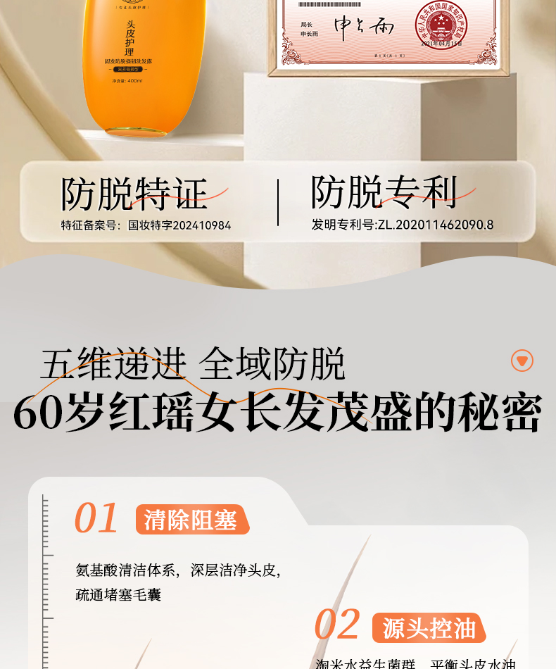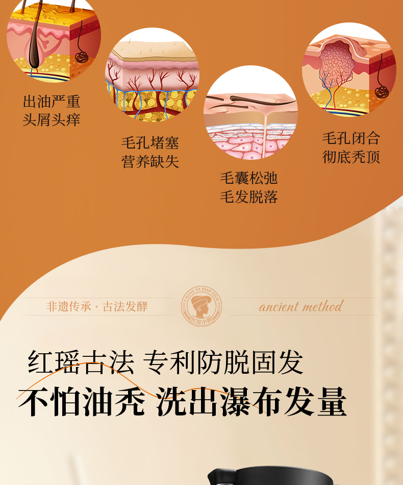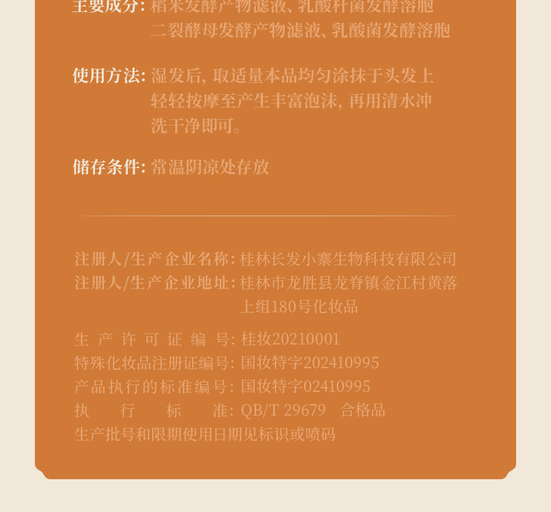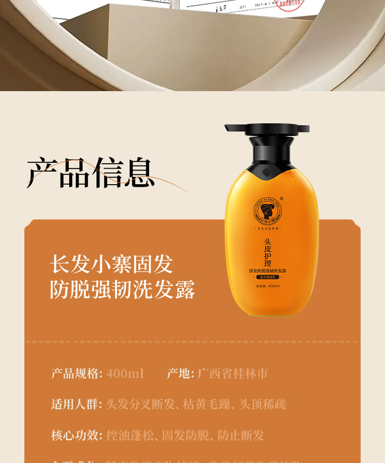长发小寨淘米水生姜固发防脱强韧洗发水控油去屑蓬松洗发露洗头膏