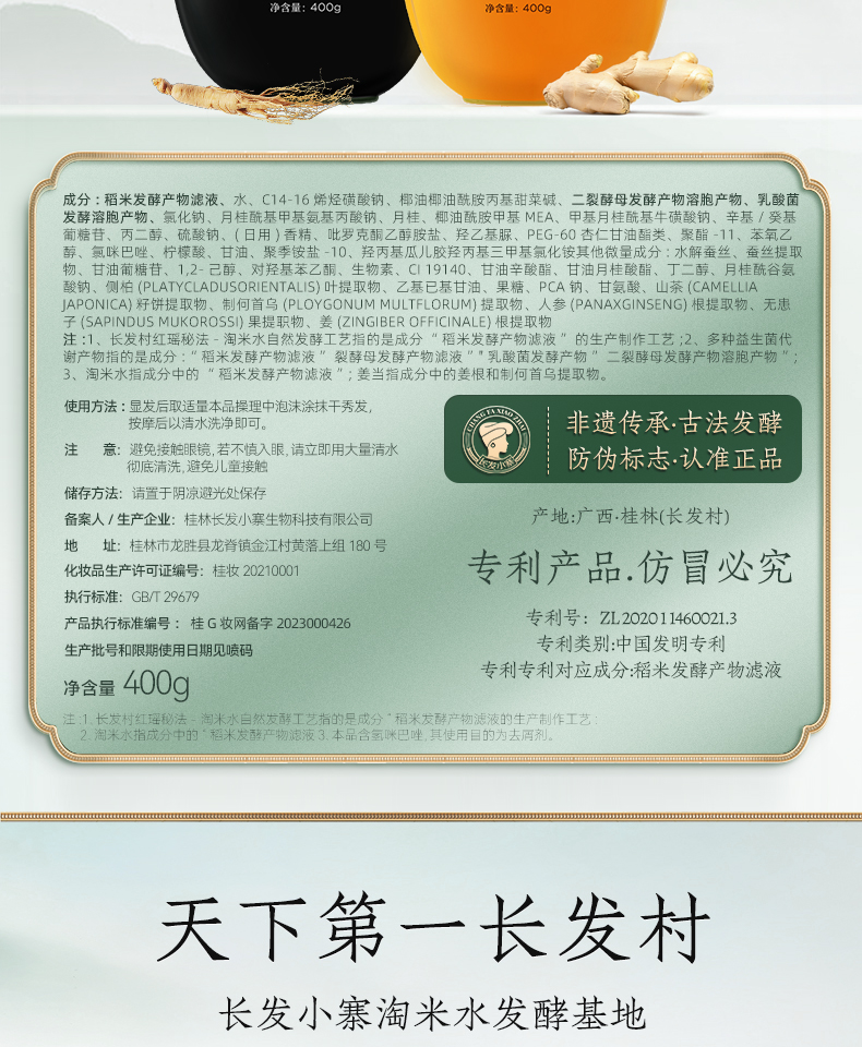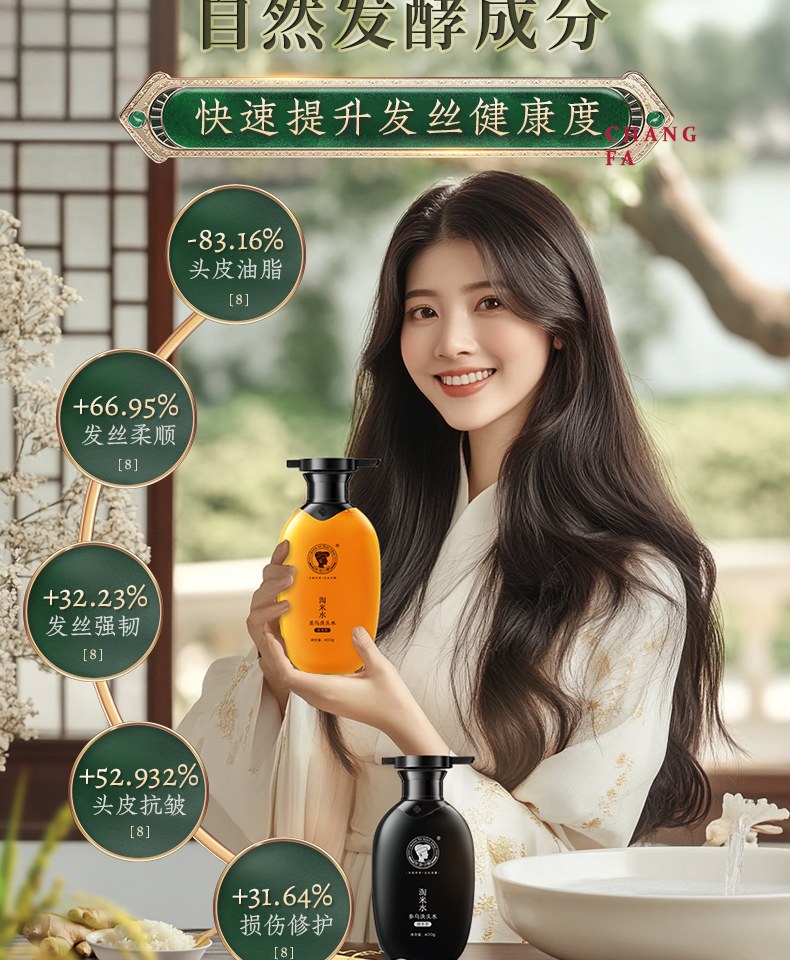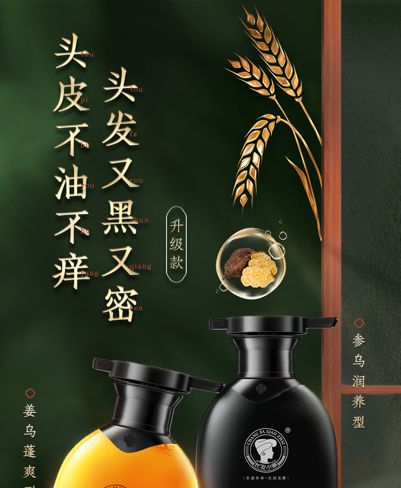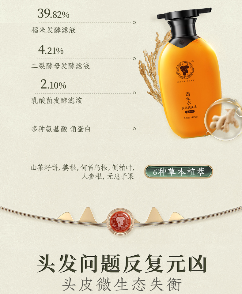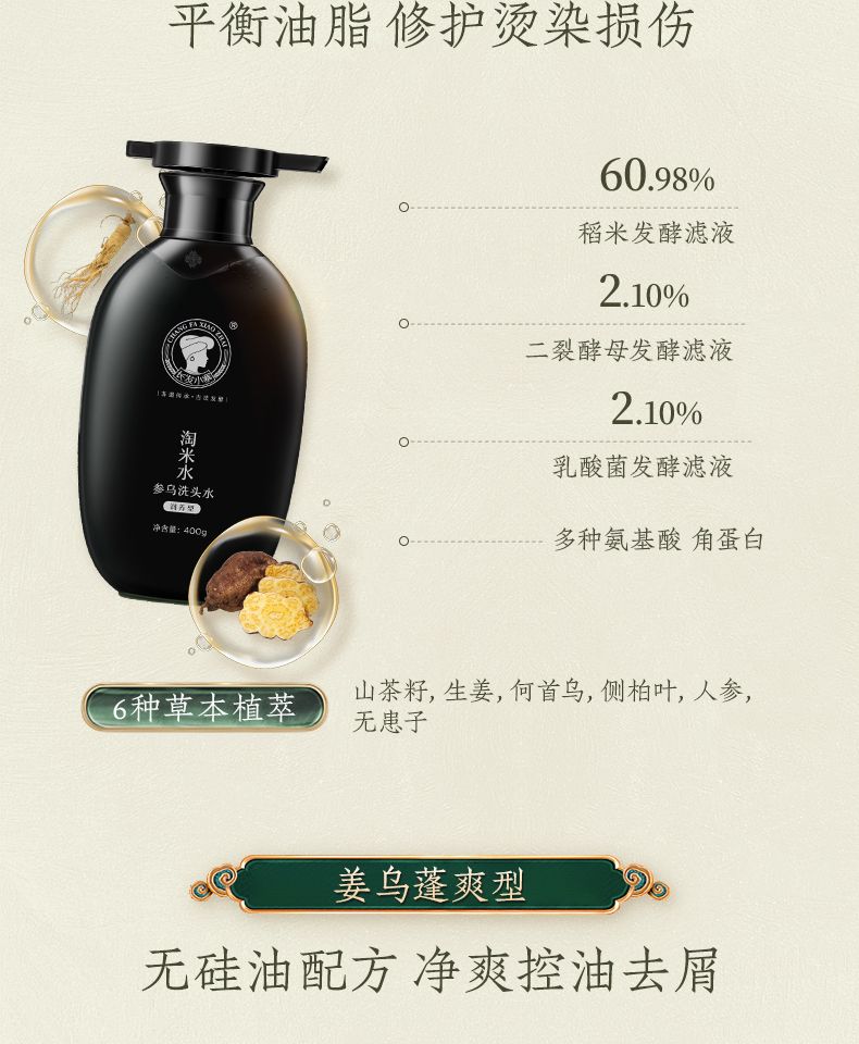 长发小寨淘米水洗发水露生姜首乌控油蓬松洗头膏去屑止痒柔顺修护