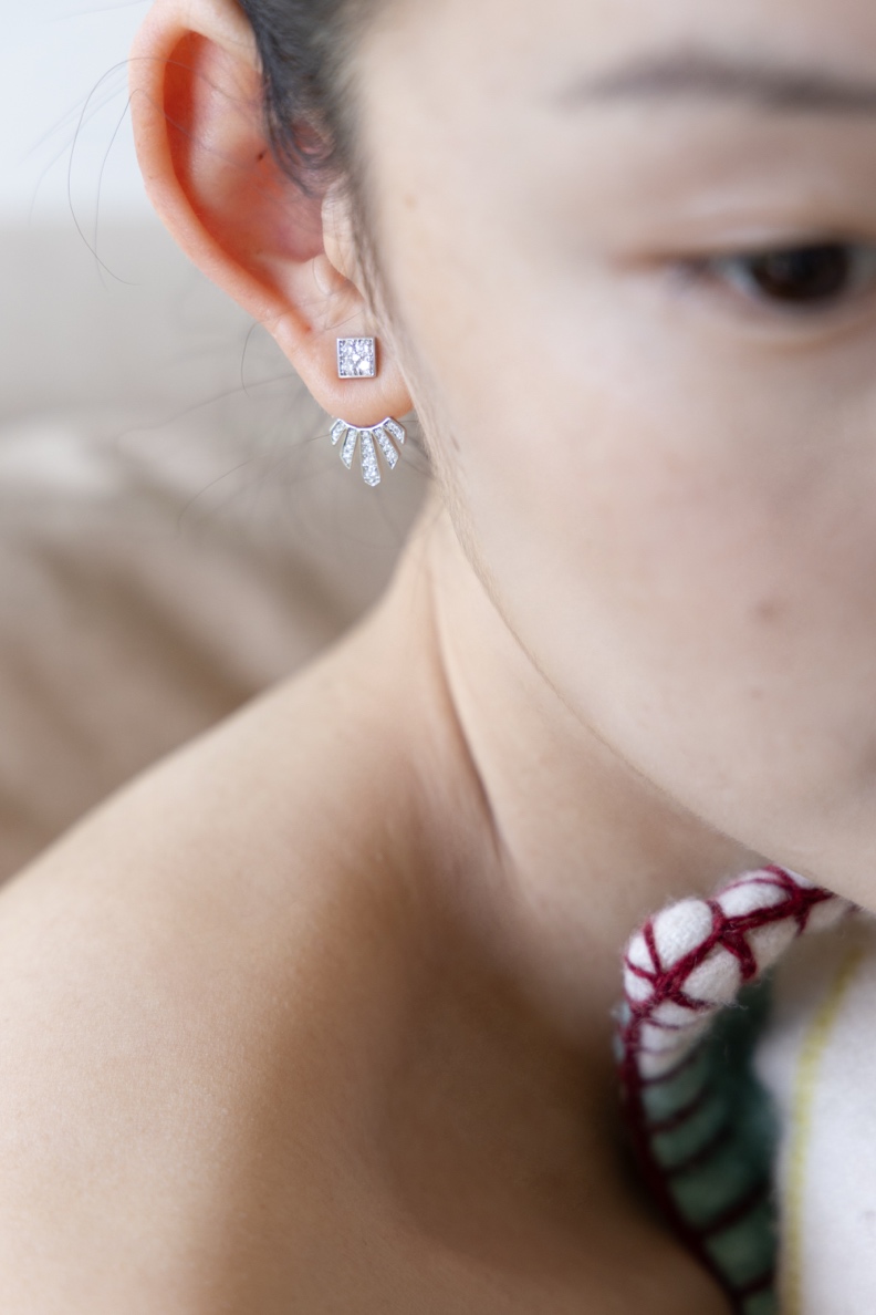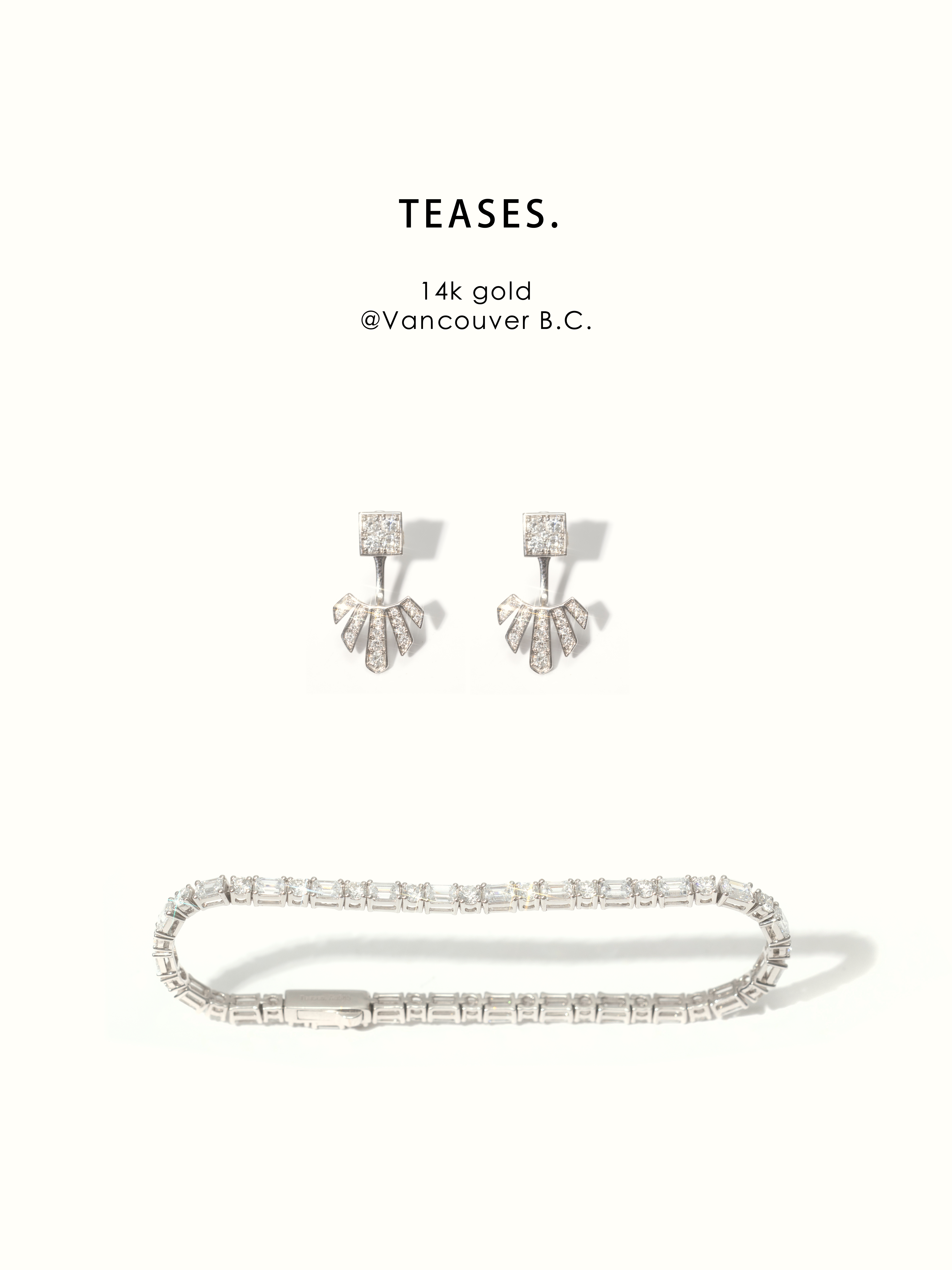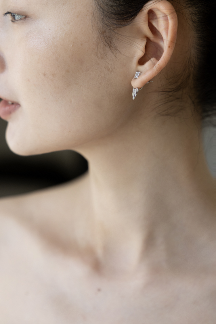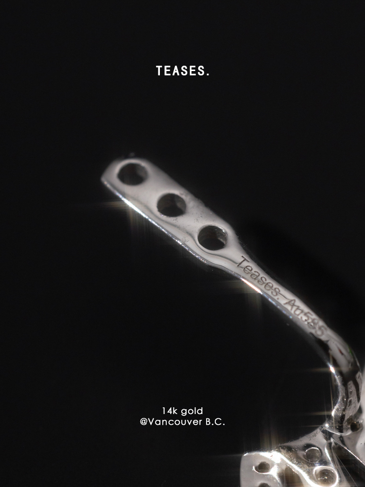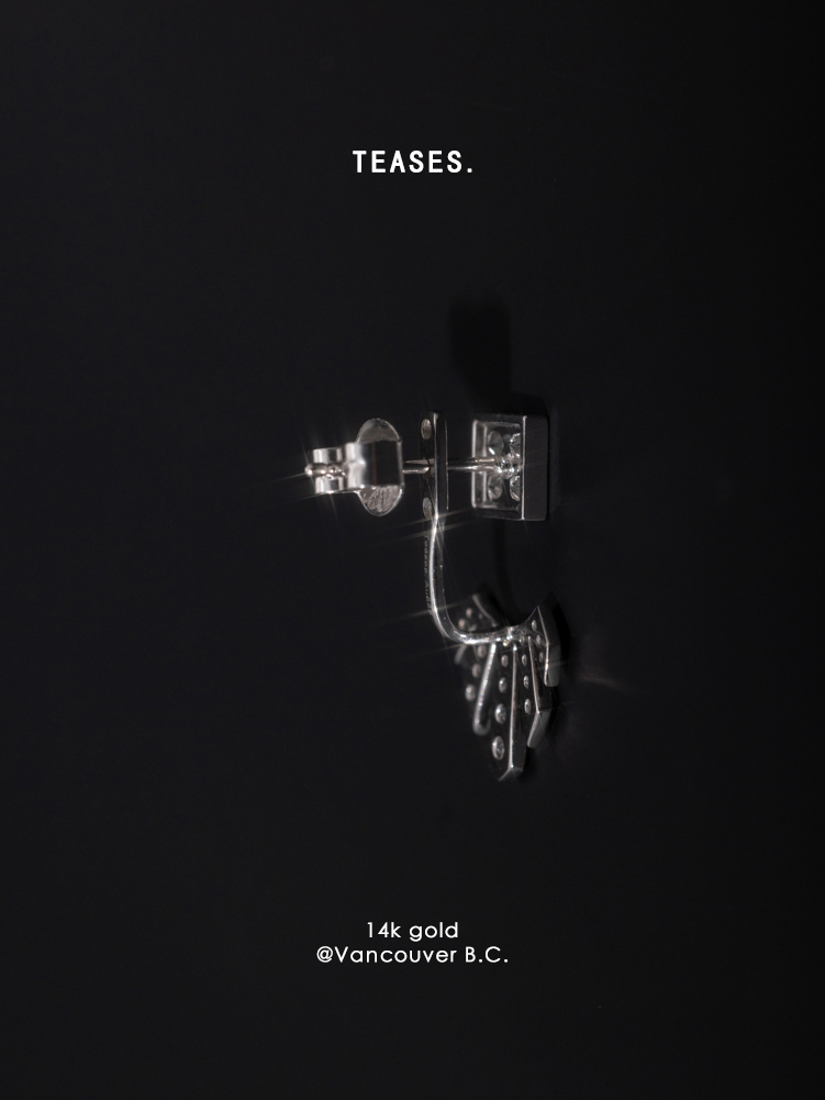 14K实心白金耳骨夹 / 白金靴子项链 亦均来自品牌TEASES. )