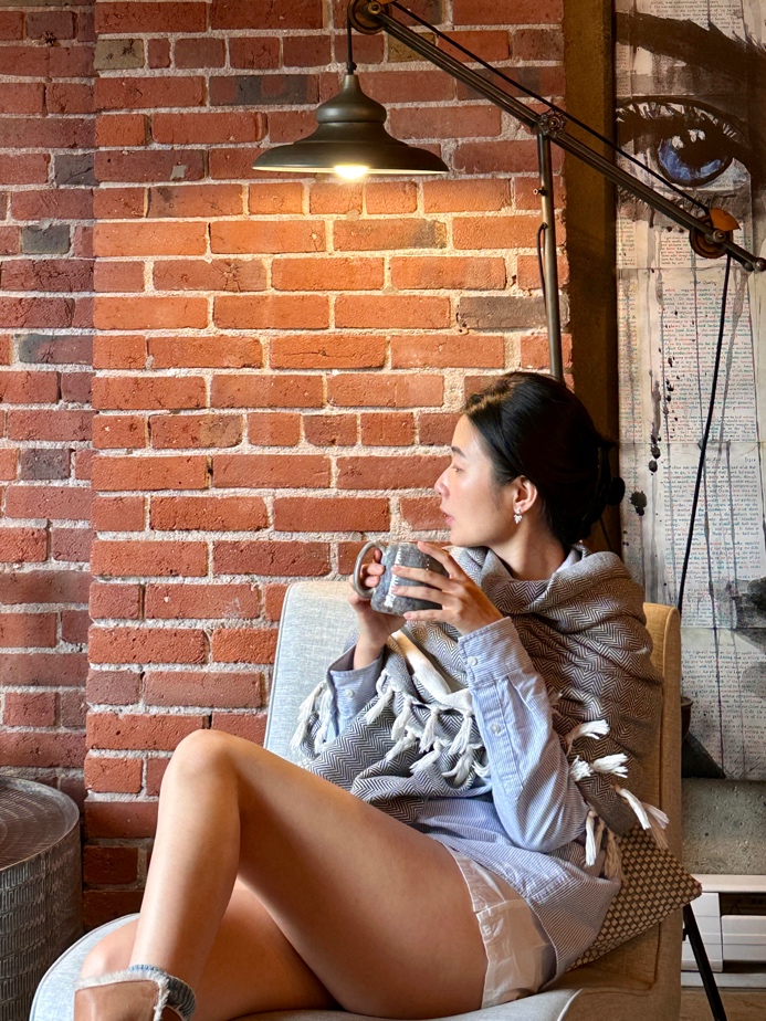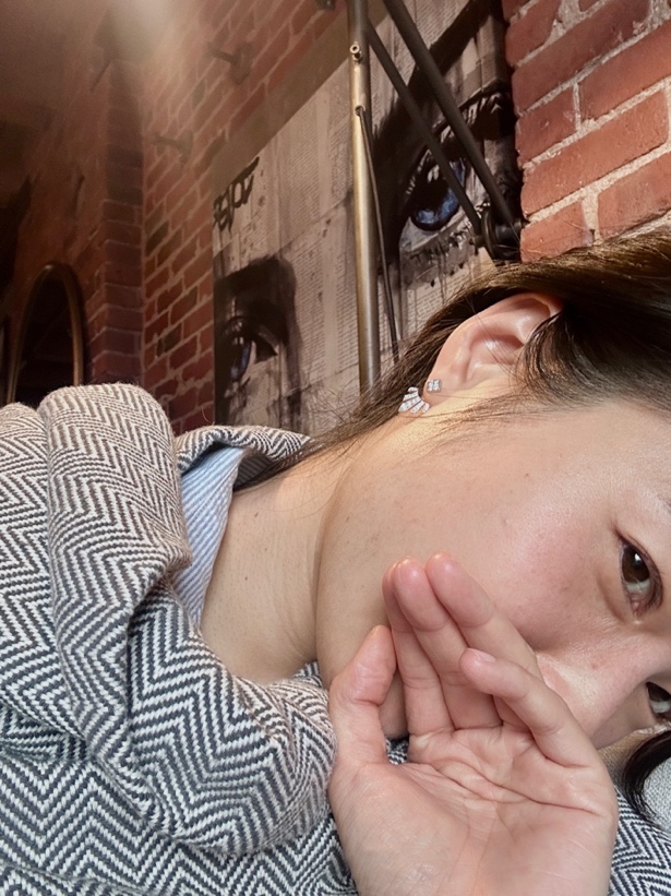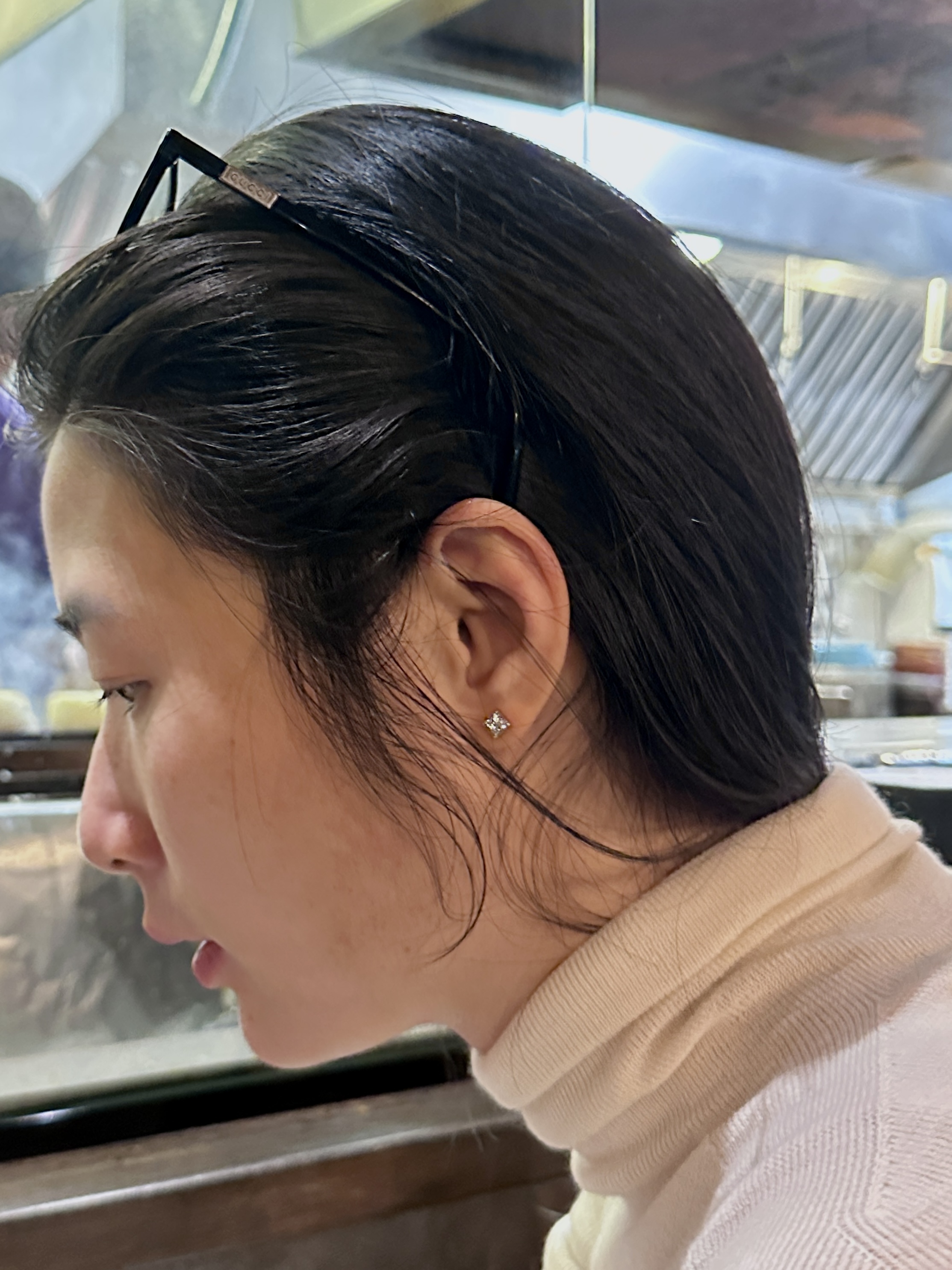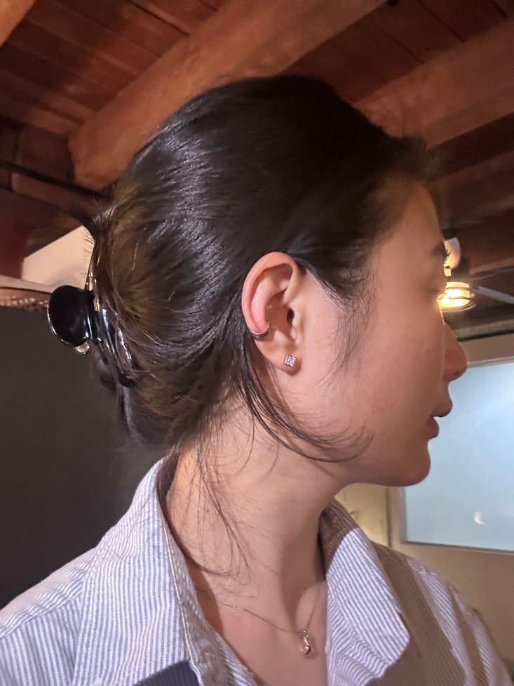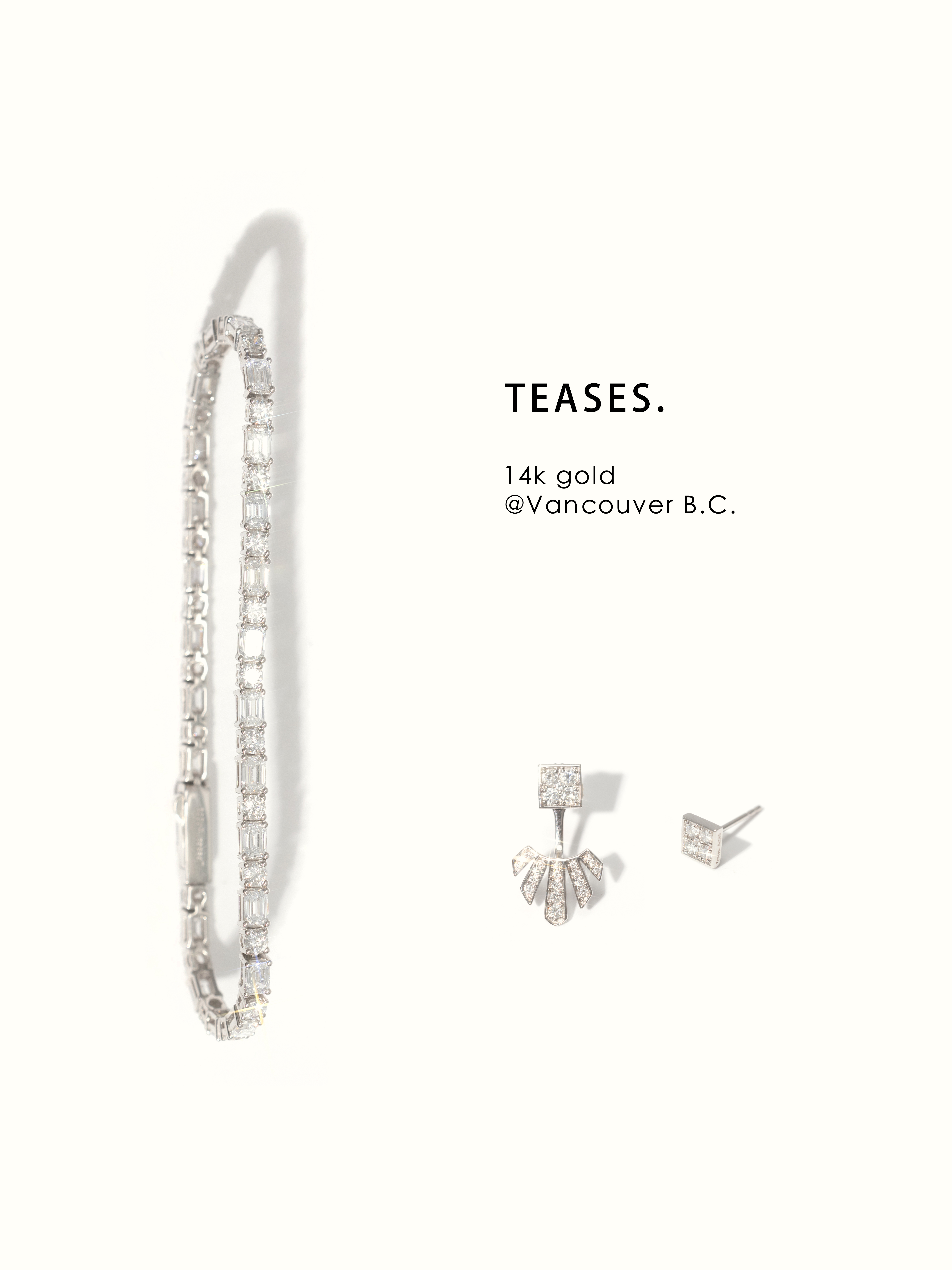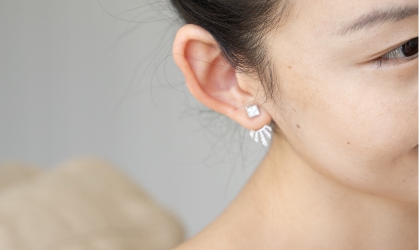 14K实心白金耳骨夹 / 白金靴子项链 亦均来自品牌TEASES. )