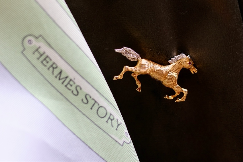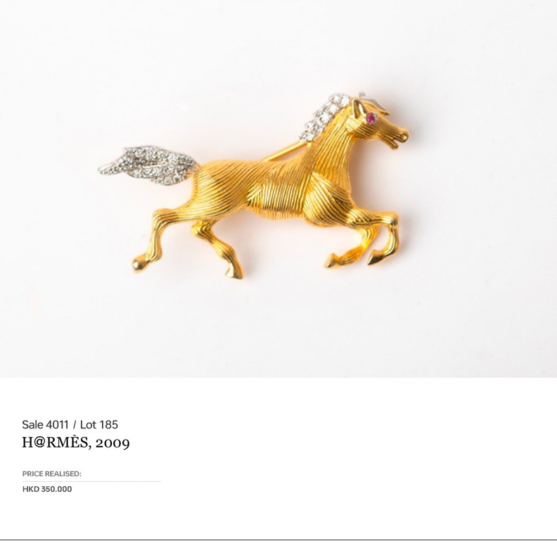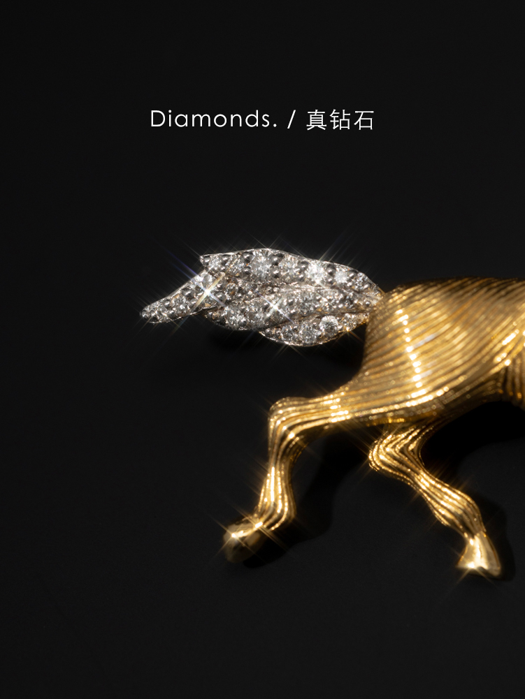 若奈珠宝 古董H@MRES绝版!黄金钻石鸽血红宝石飞马胸针吊坠两用