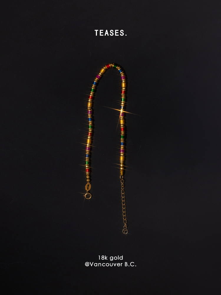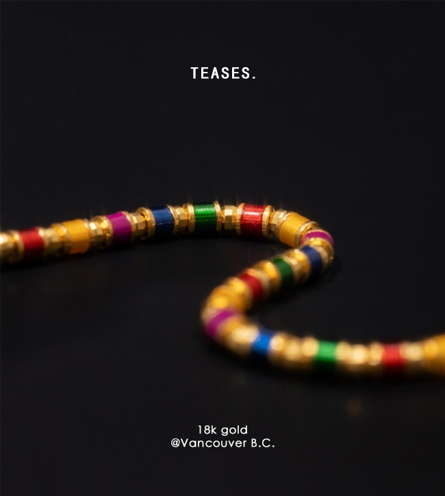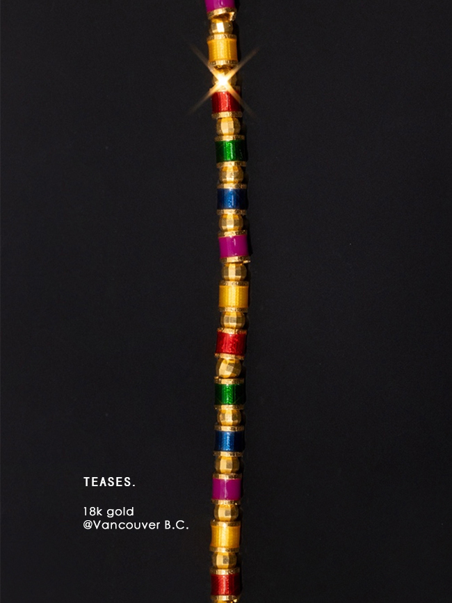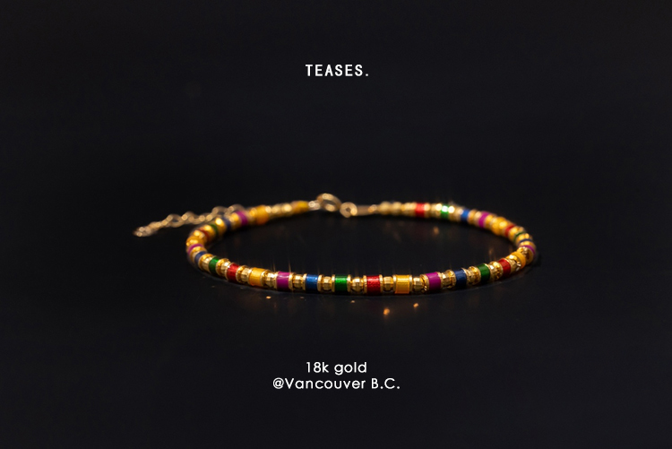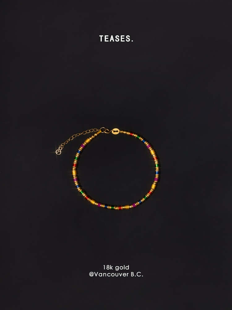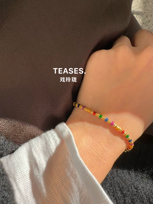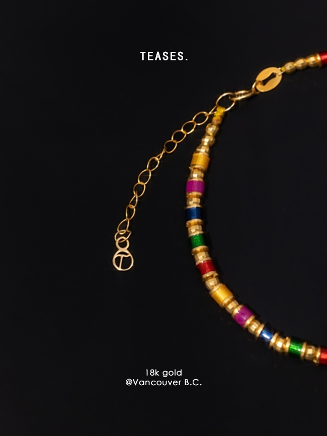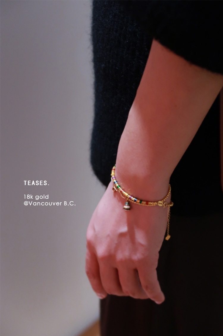( 叠戴搭配的 喜乐铃黄金手链 / 亦来自品牌TEASES.戏玲珑 )