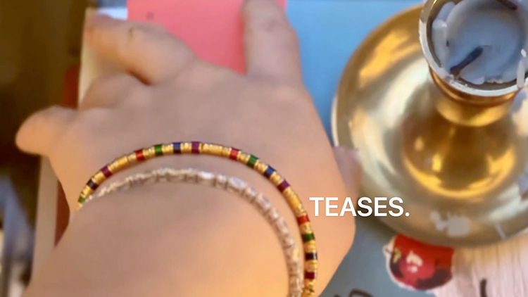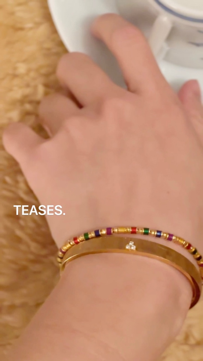 ( 叠戴的 黄金镶钻石手镯 亦来自品牌TEASES.戏玲珑 )