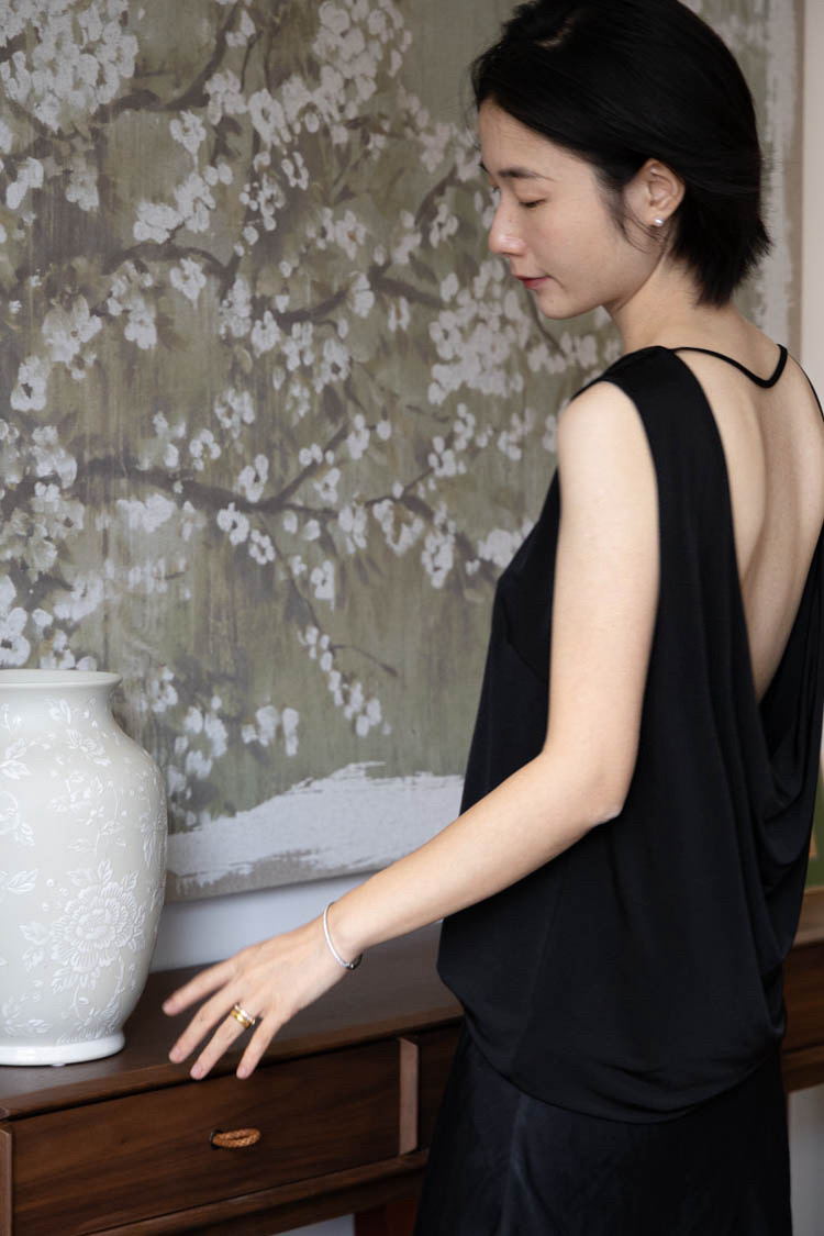 夏日白Tee / 黑色真丝 / 甚至亚麻