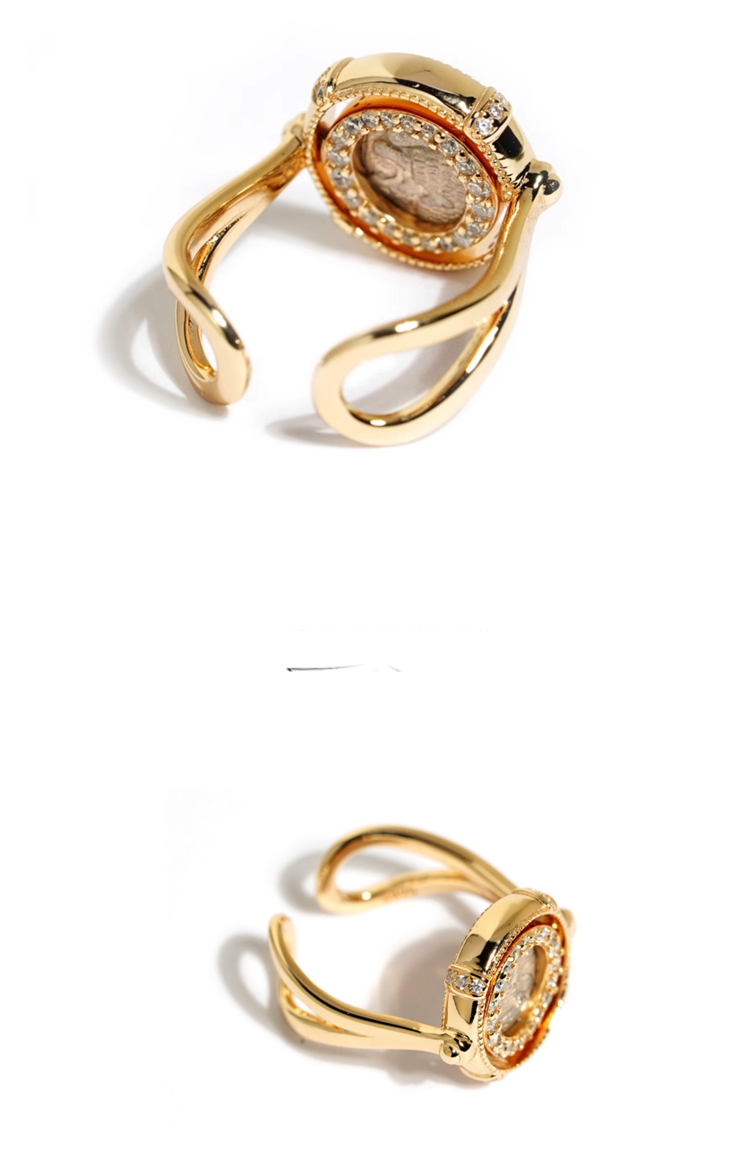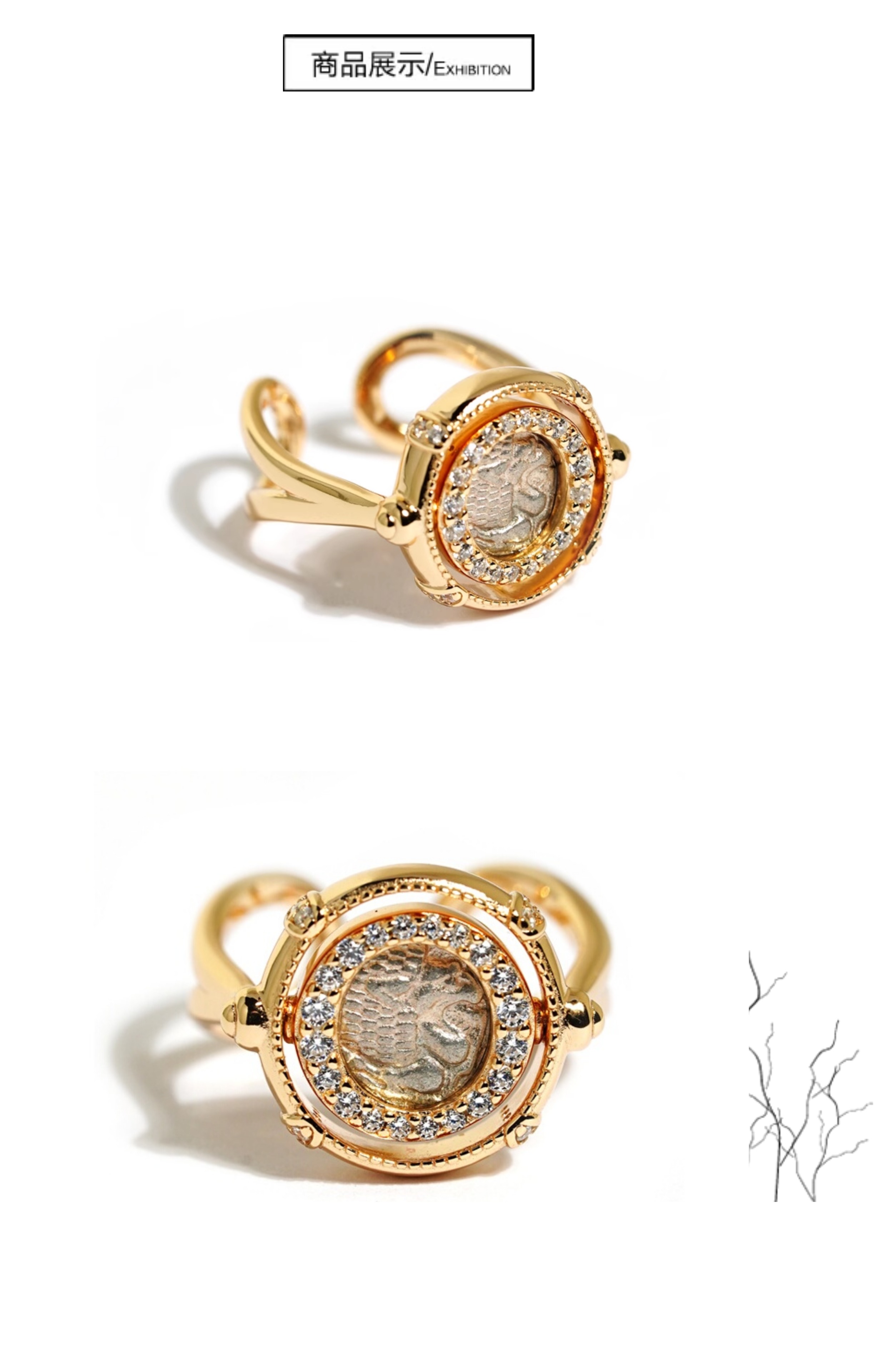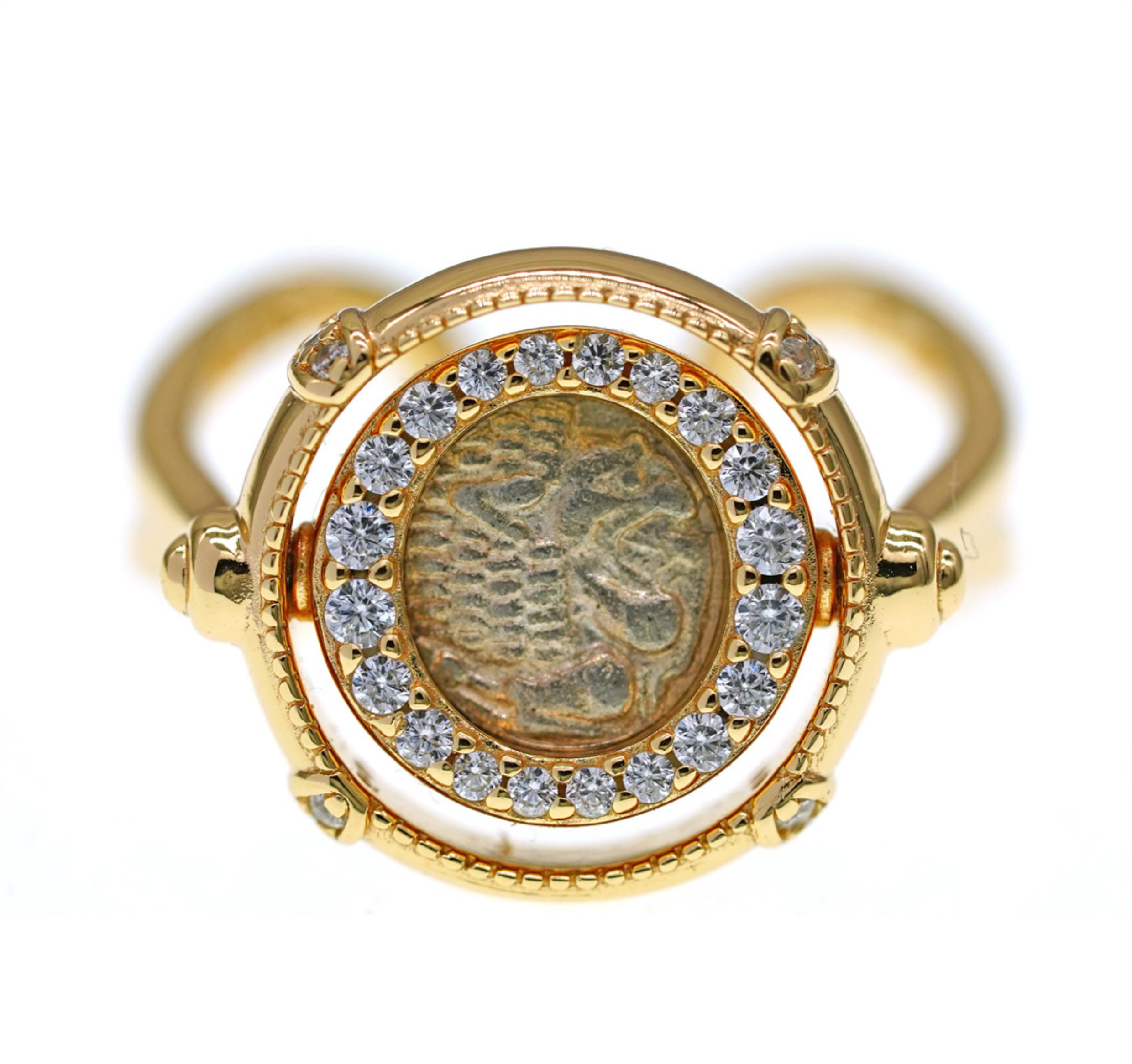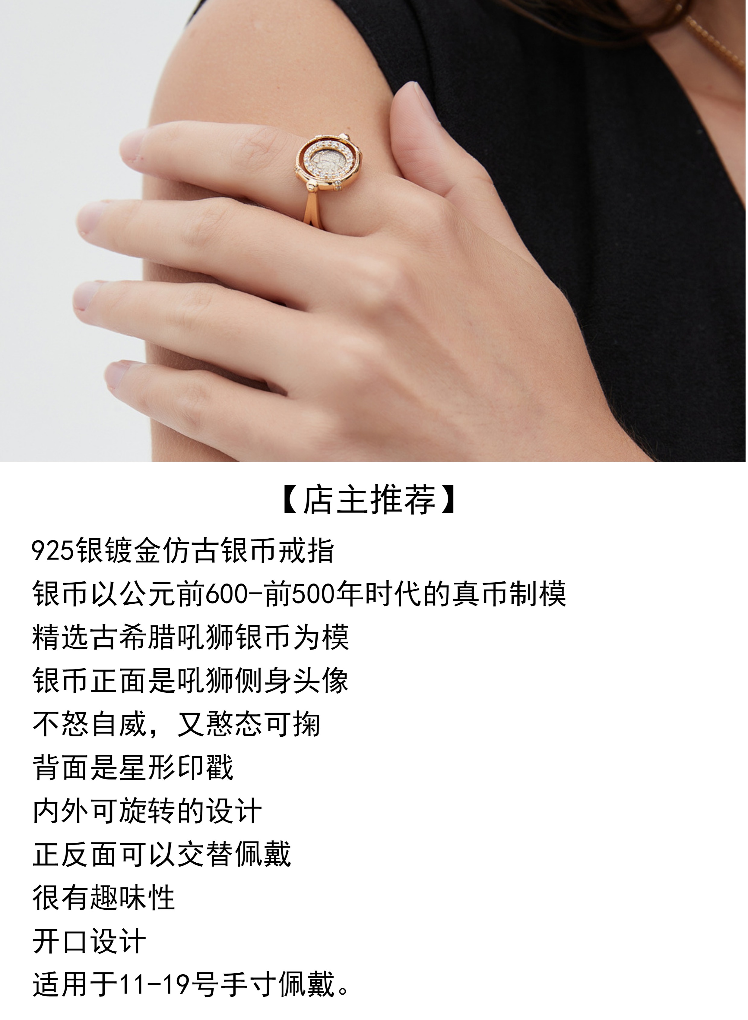 爱琴海余音|925银镀金仿古希腊银币狮子旋转戒指