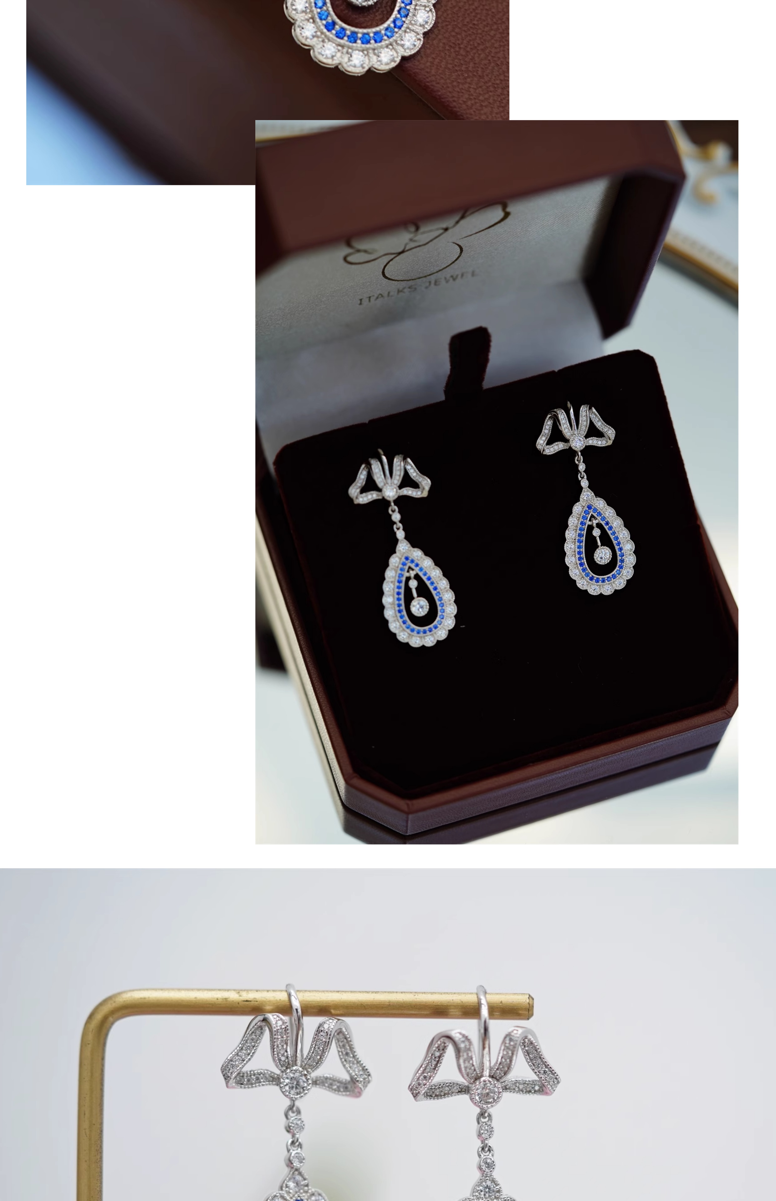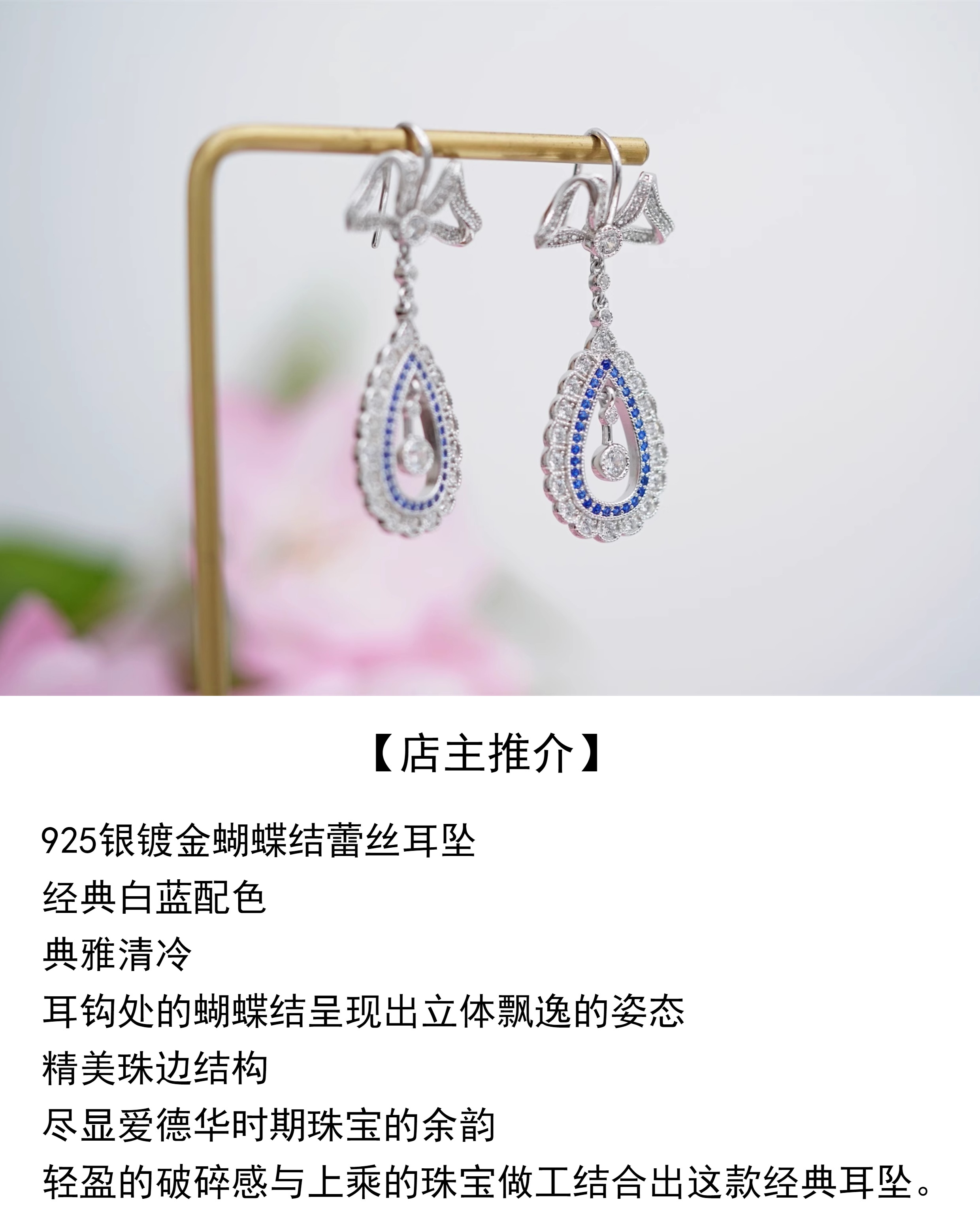 ITALKS喻棠|丽列达的琴音|925银镀金蝴蝶结蕾丝复古耳坠女
