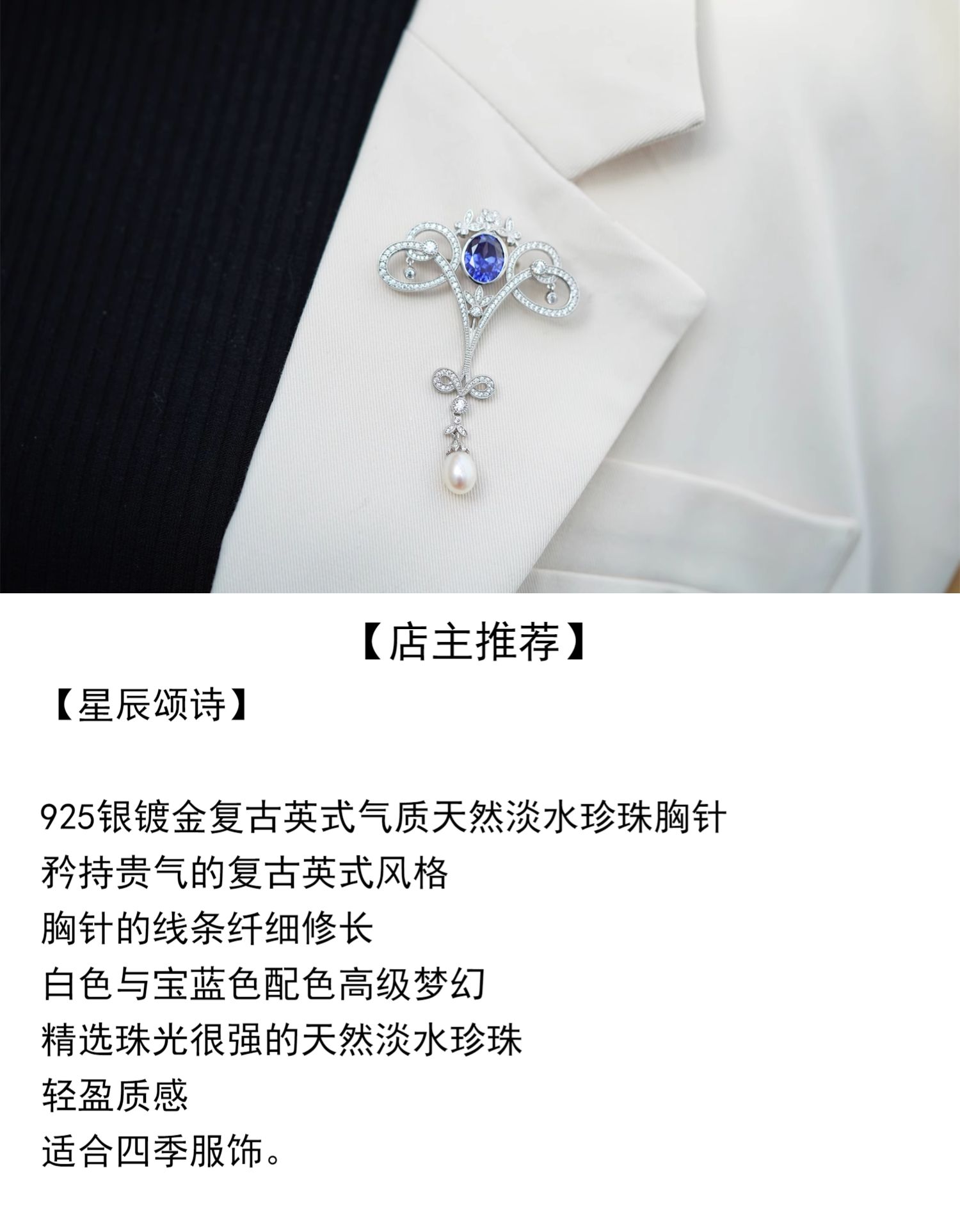 ITALKS喻棠|星辰颂诗|925银镀金复古英式气质天然淡水珍珠胸针