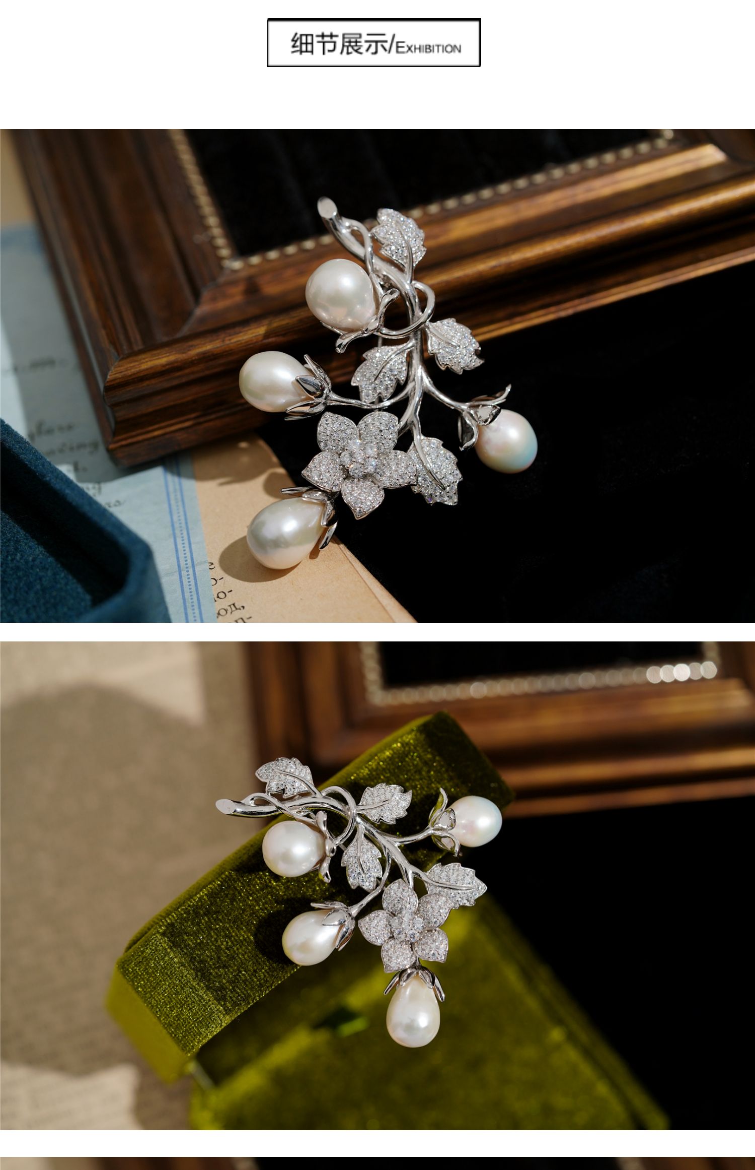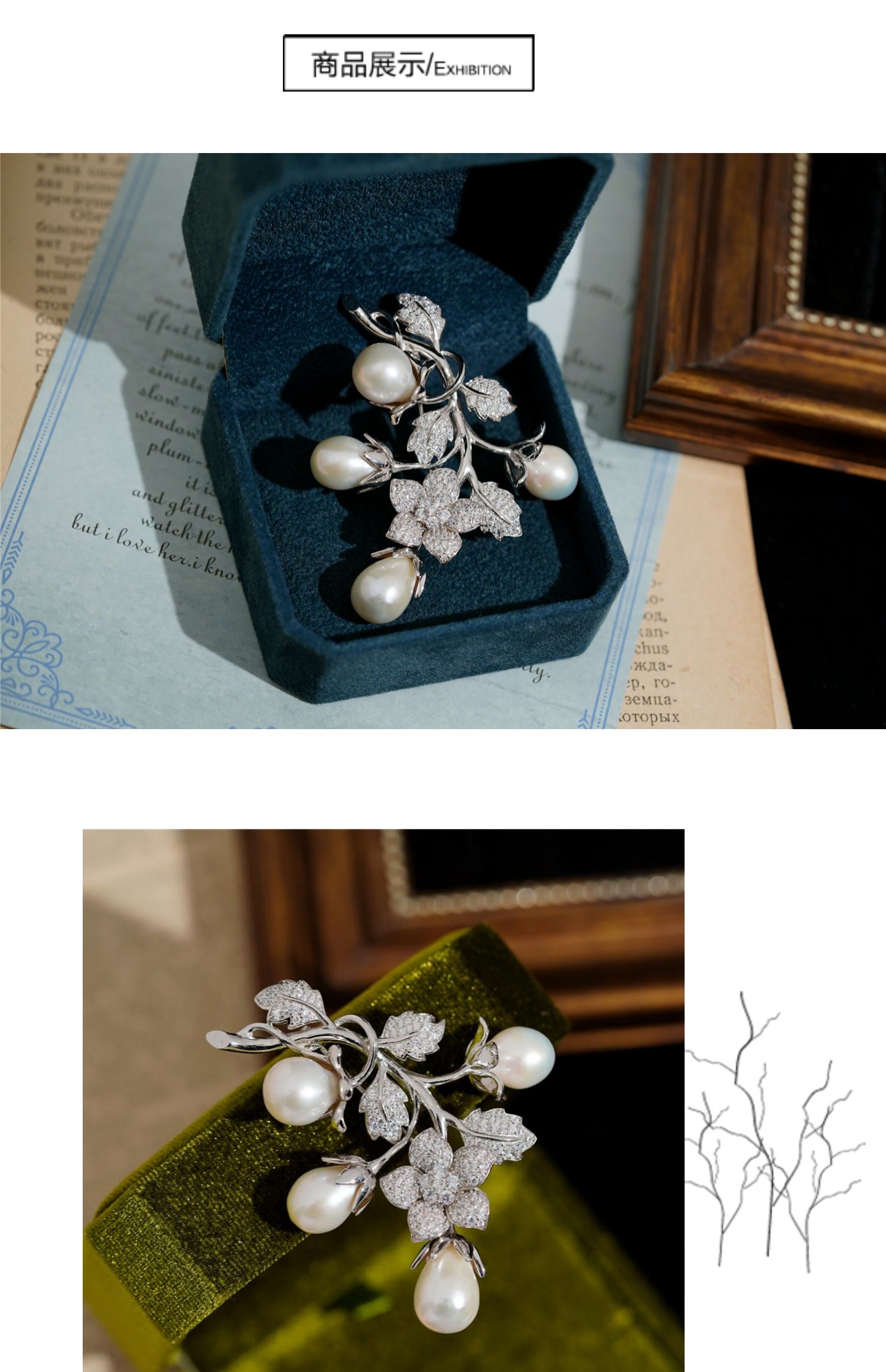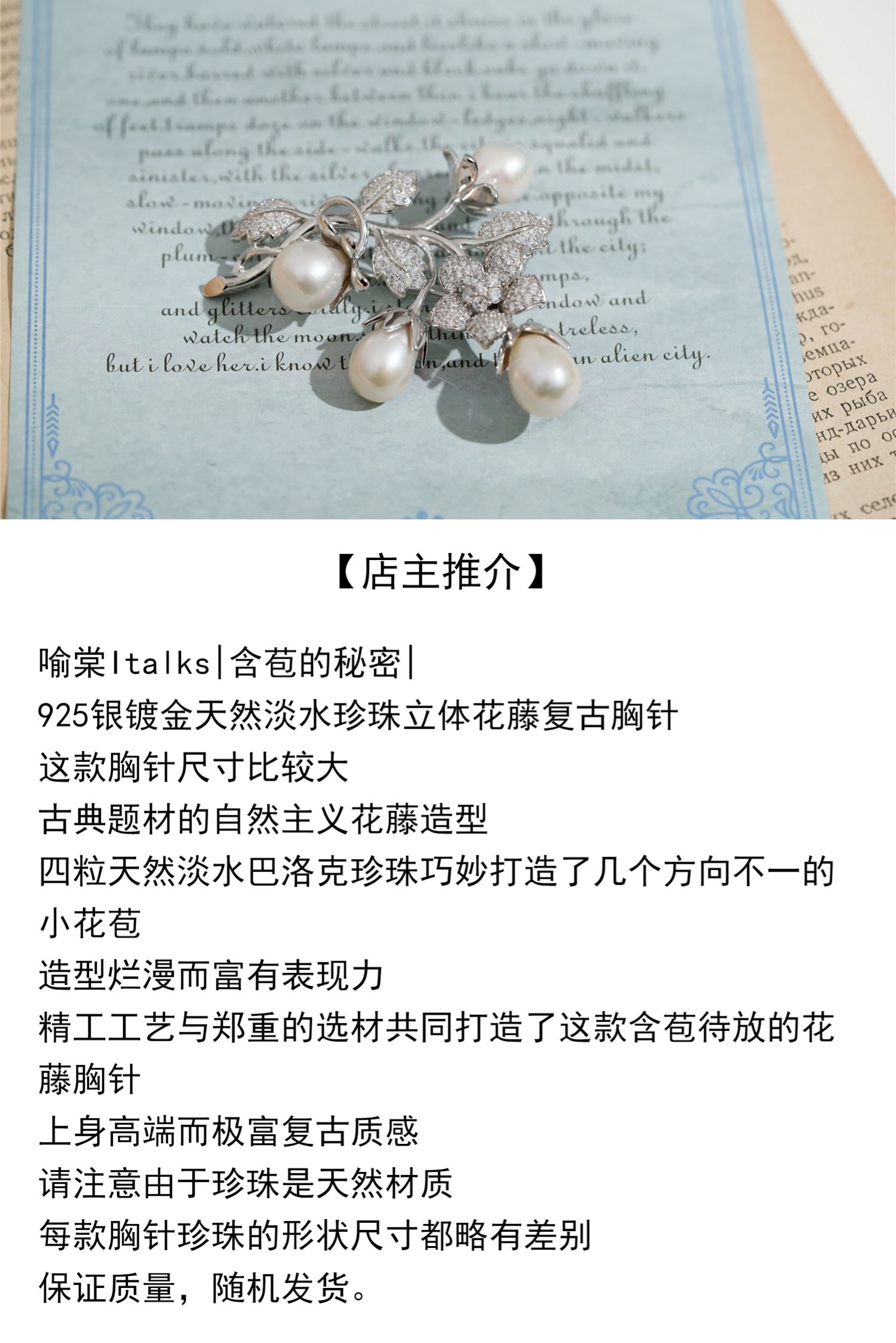 喻棠Italks|含苞的秘密|925银镀金天然淡水珍珠立体花藤复古胸针