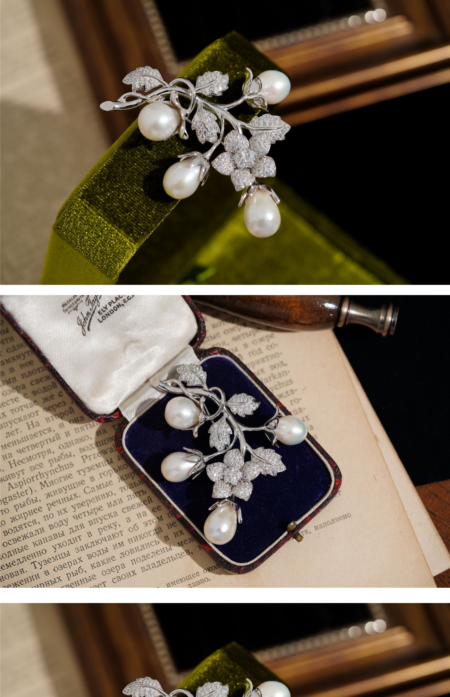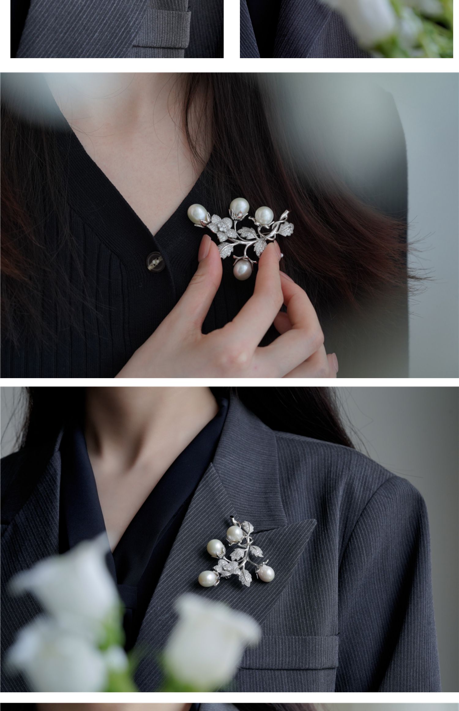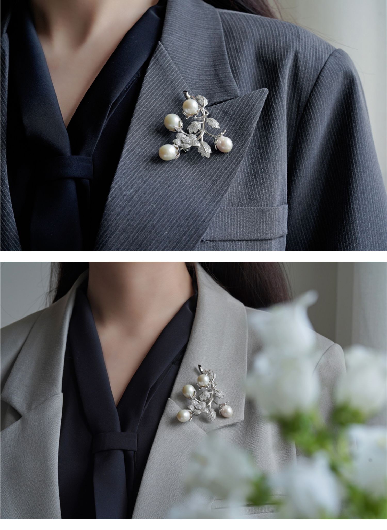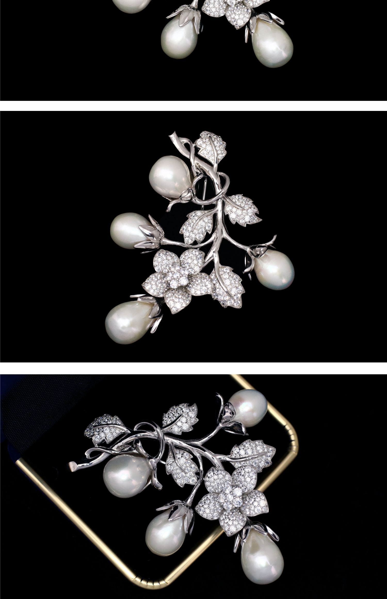 喻棠Italks|含苞的秘密|925银镀金天然淡水珍珠立体花藤复古胸针