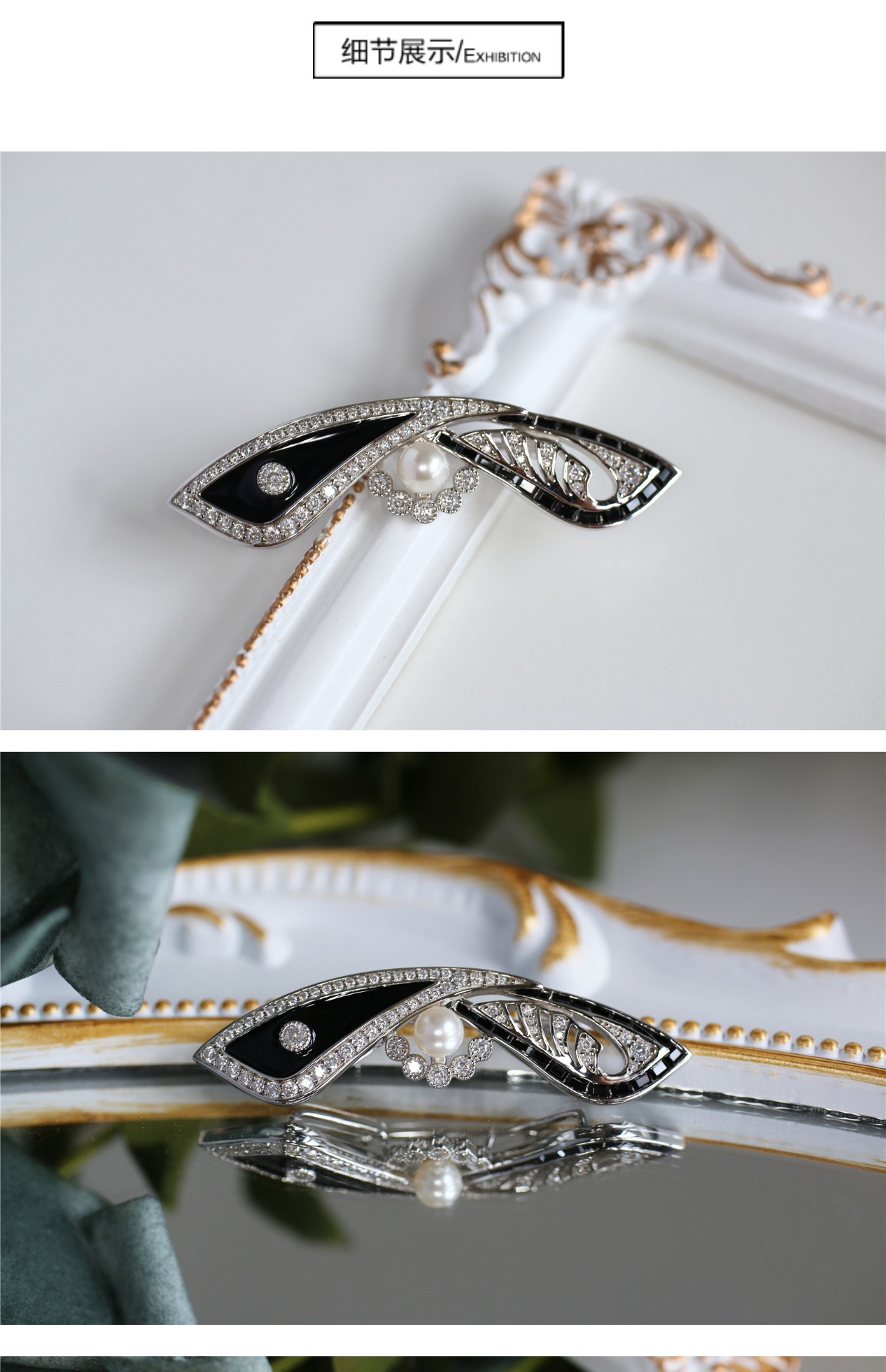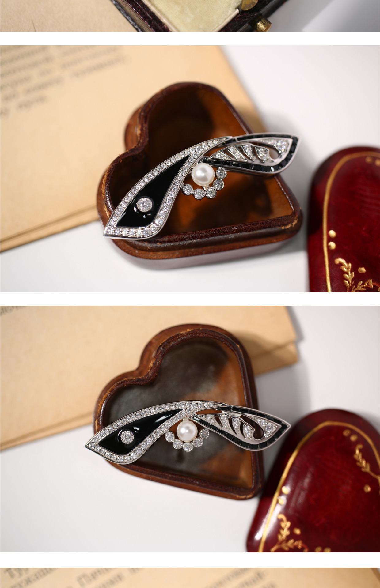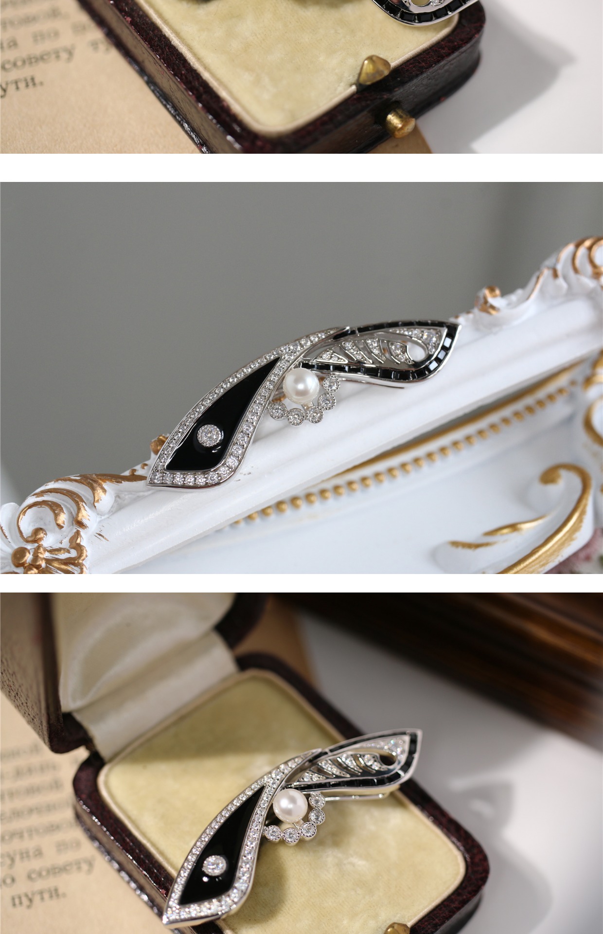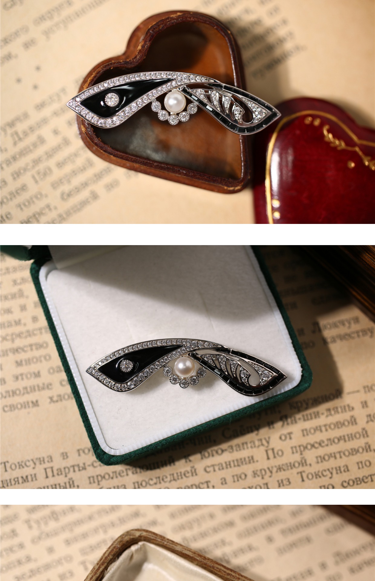 喻棠|黑白韵律|弧形珍珠胸针珐琅复古裙装西装不易撞款纯银厚镀金