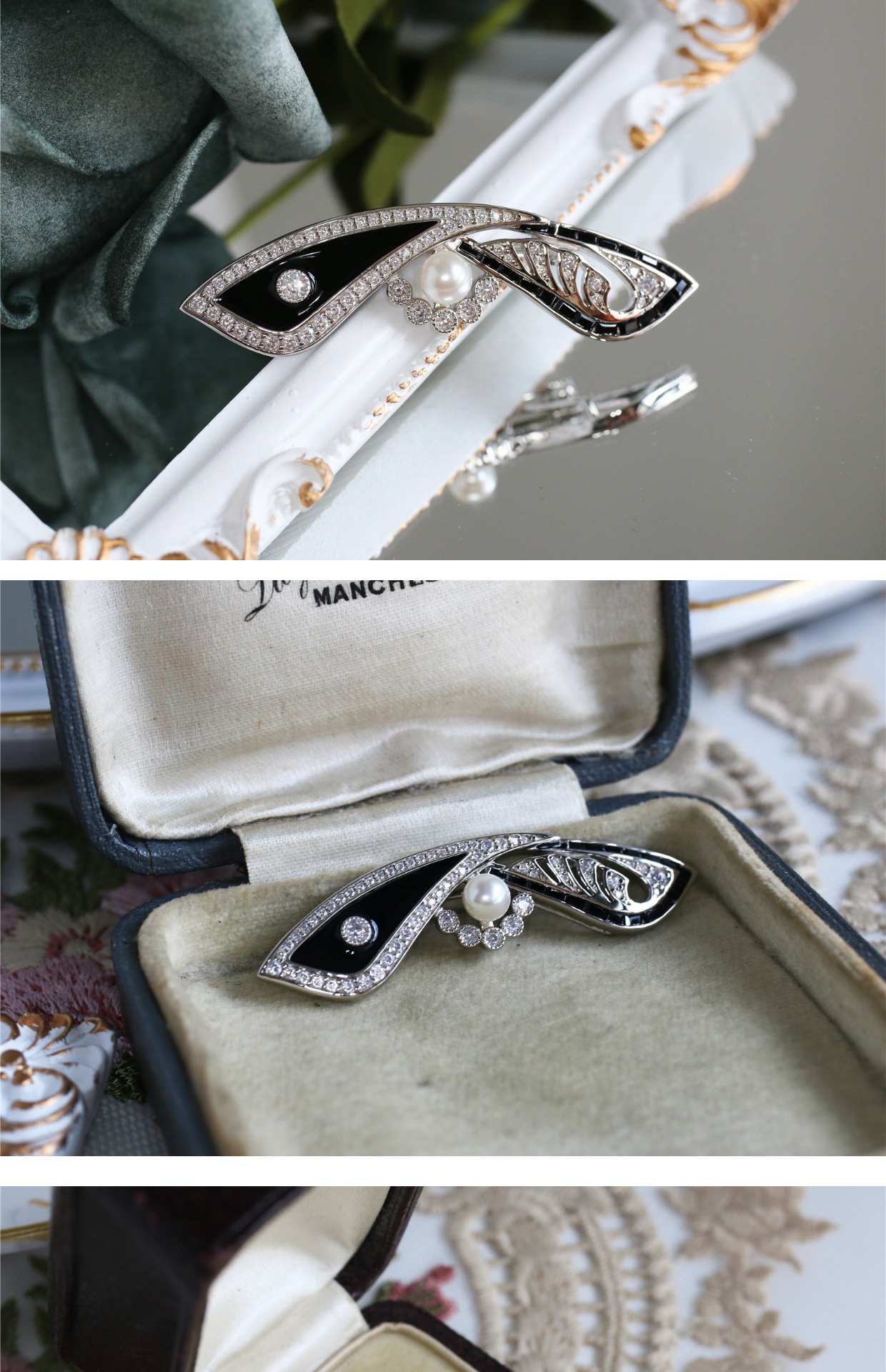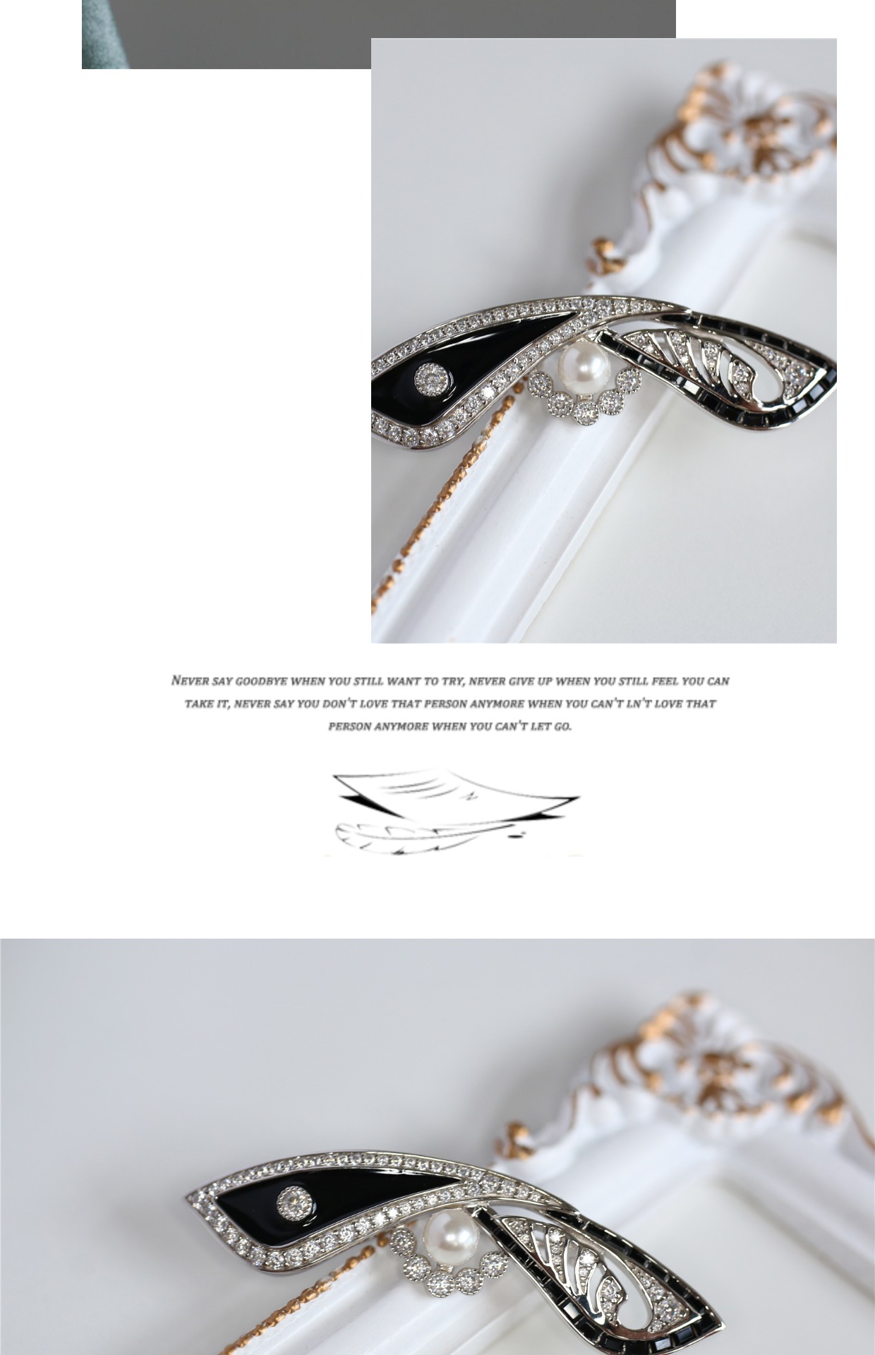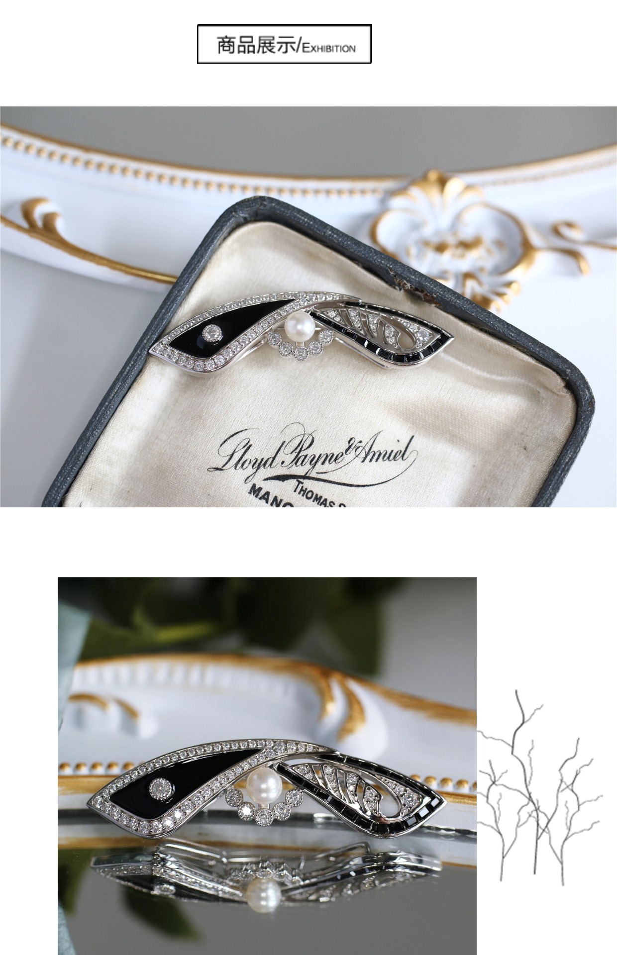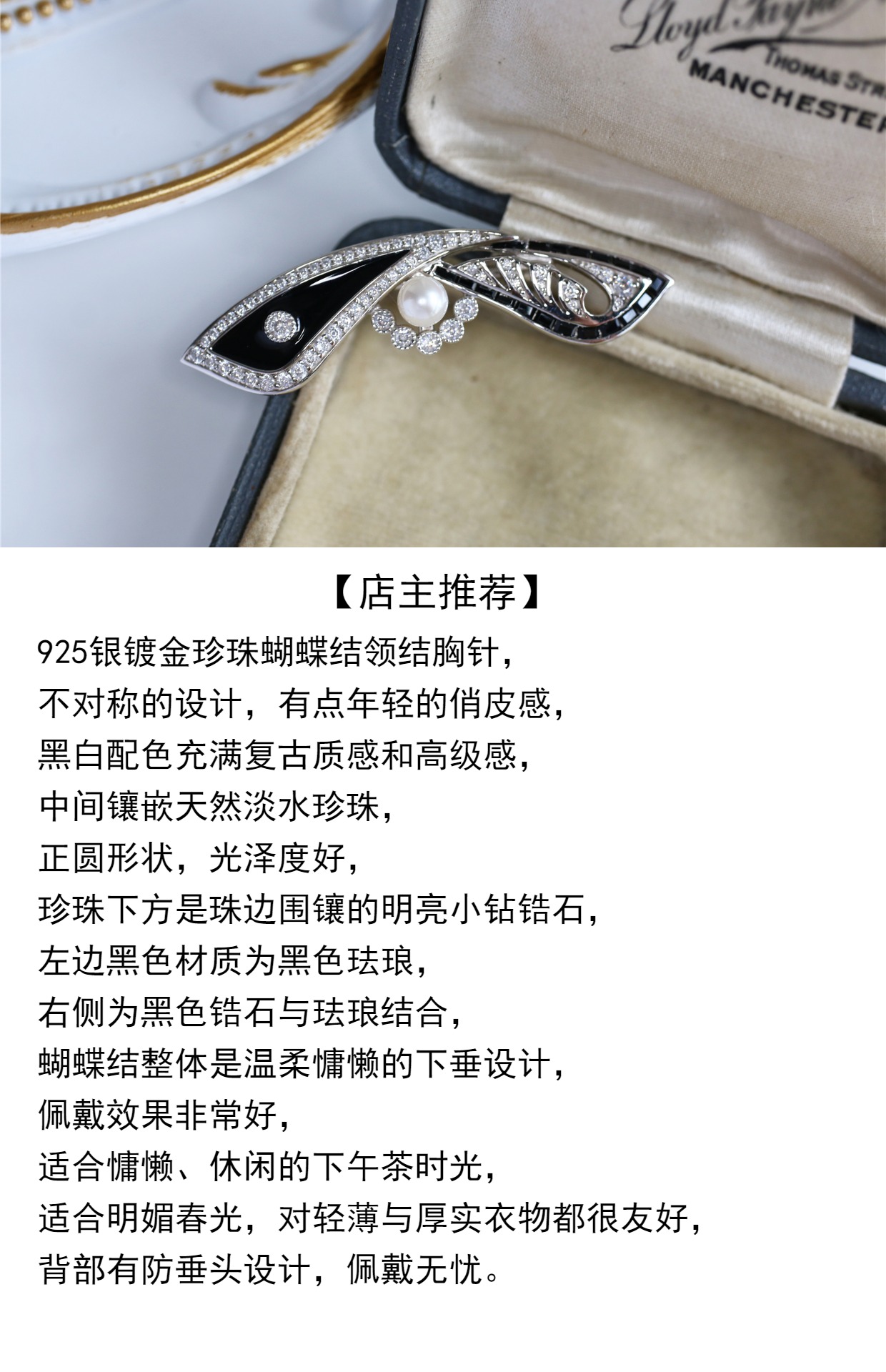 喻棠|黑白韵律|弧形珍珠胸针珐琅复古裙装西装不易撞款纯银厚镀金