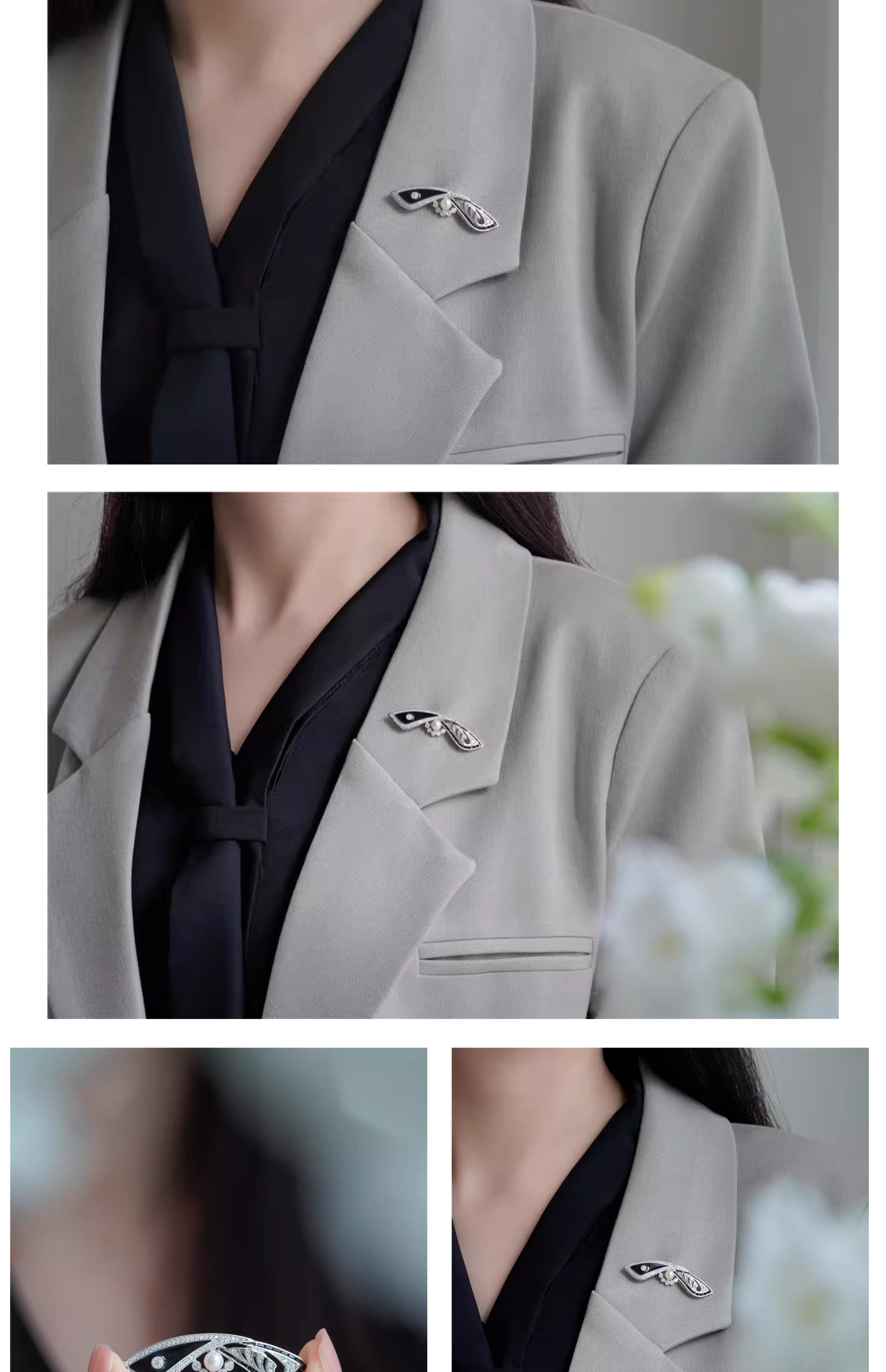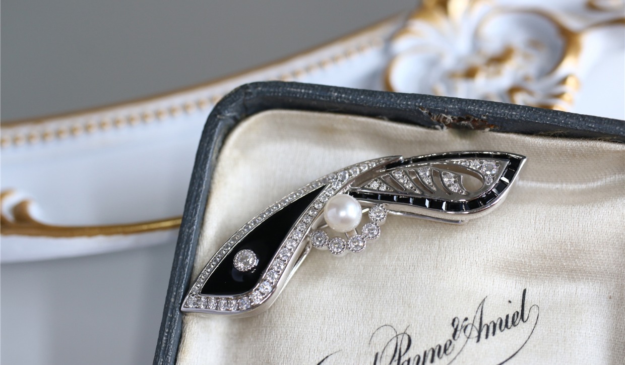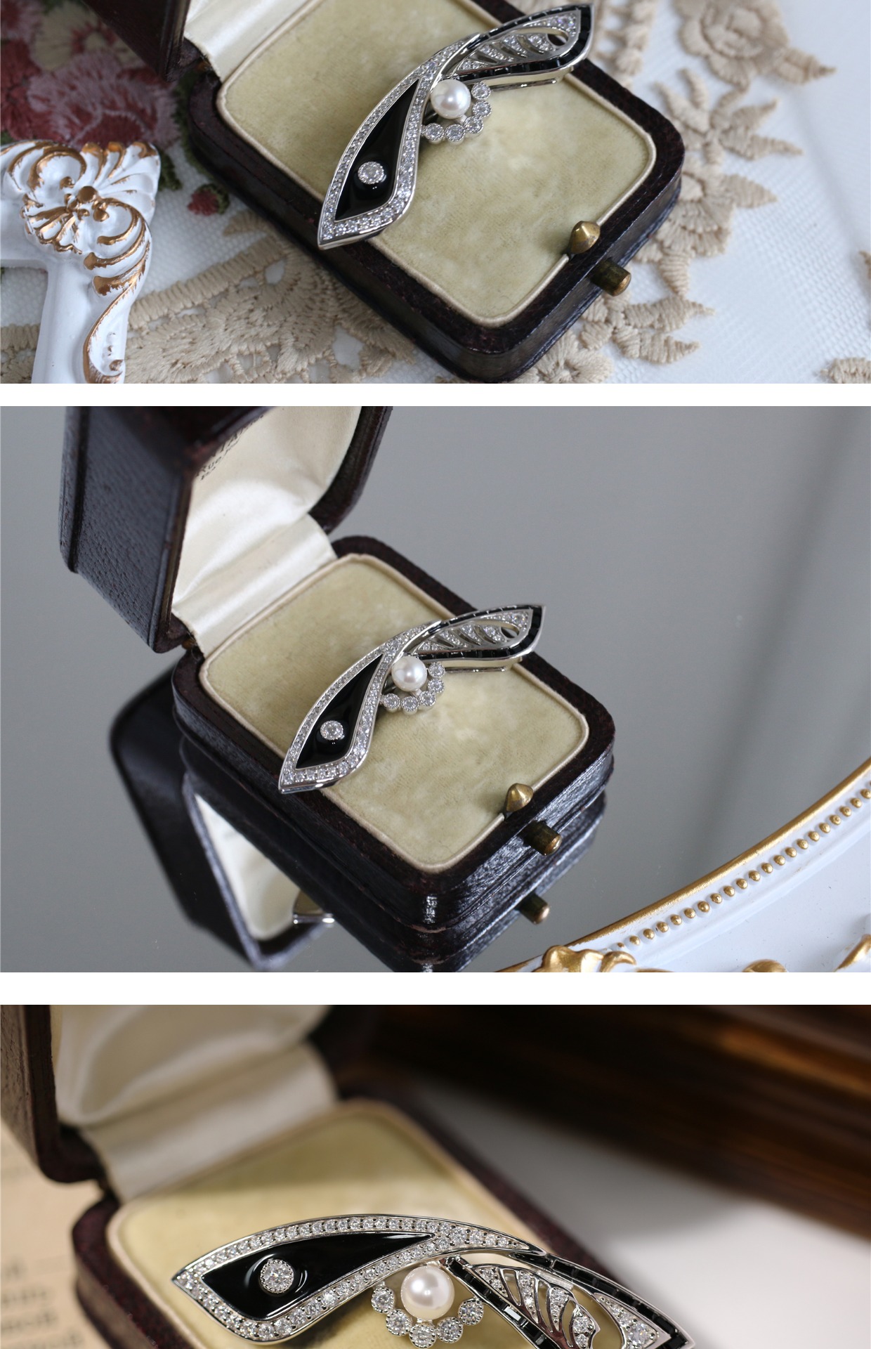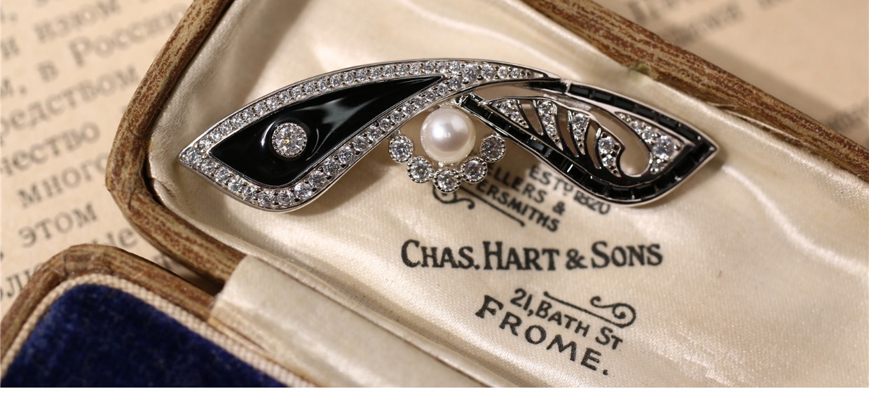 喻棠|黑白韵律|弧形珍珠胸针珐琅复古裙装西装不易撞款纯银厚镀金